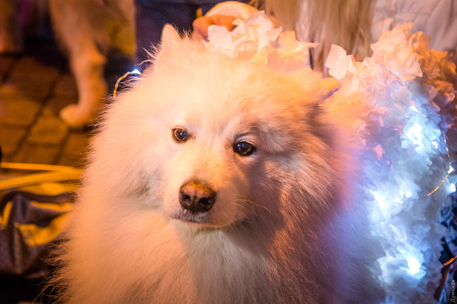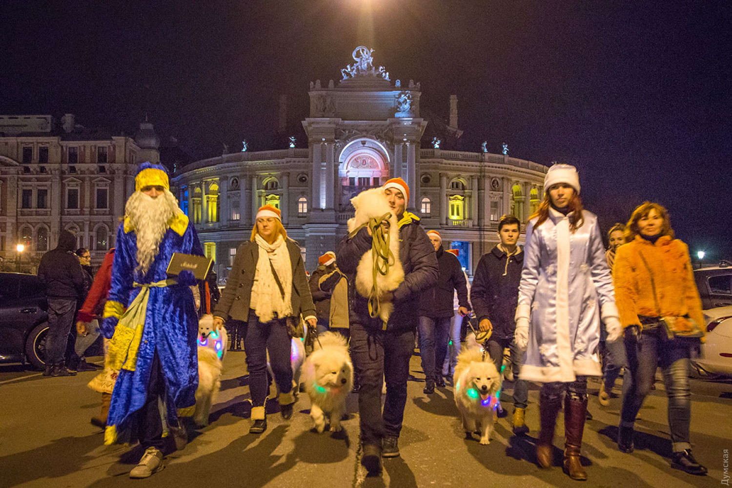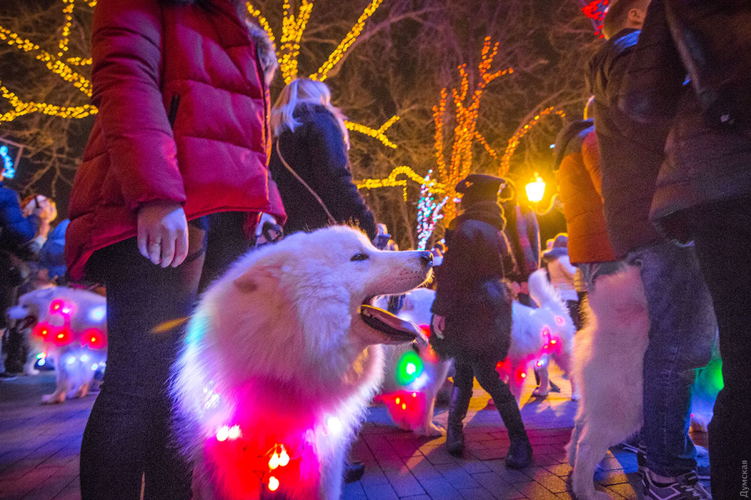 Белые и смешные: в Одессе прошел новогодний парад самоедских собак