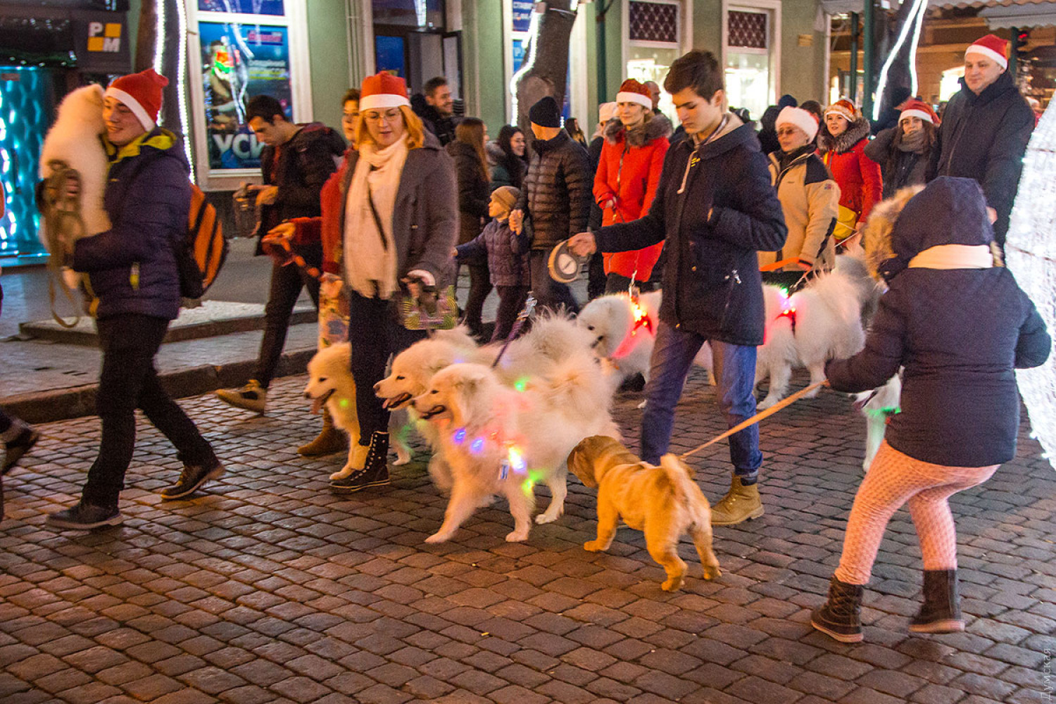 Парад белых самоедских собак, чем-то напоминающих игрушечных полярных медведей, прошел сегодня в центре Одессы. В нем приняли участие почти 60 четвероногих. Поводом для парада стал наступающий Новый год, символом которого, по восточному календарю, считается собака. Участники вместе со своими хозяевами прошлись по Приморскому бульвару и поднялись по Дерибасовской до Горсада.