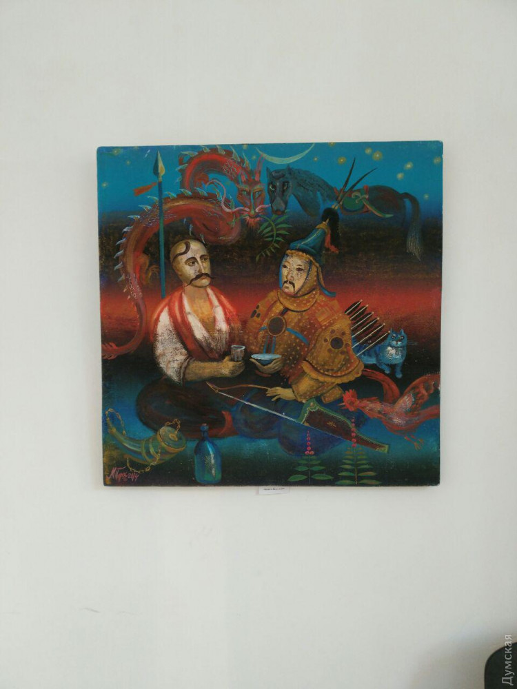 Внимательно просмотрел все представленные картины. Хвалю организаторов мероприятия. Но немного критики. Конечно, влиять на вдохновение художника нельзя, но воздействовать на него можно. Парадокс. Художники — люди с высокоразвитым воображением. Они же не могут сейчас списать с натуры тех казаков и быт прошлых веков, да еще и на Одещине. Но по многим остаткам прошлого восстановить его можно. Но ребята-мастера кисти! Нужно же больше бывать там, где пасется коза или корова, летают чайки, где вырыт пруд, стоит хата. У вас столько "косяков" — жуть одна! Разве возможна сельская хата без пристроек? Где ночью, а потом зимой будут стоять коза и корова? Почему былинный казак пьет из граненого стакана? Это так строили казацкие лодки-чайки? Вы уверены? Побойтесь бога! На картины будут смотреть дети и внуки. И будут думать, что так и было.