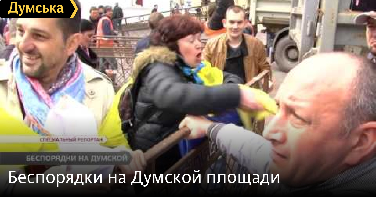 26 апреля в 4-ре утра неизвестные снесли палаточный городок возле одесской мэрии. Спустя пару часов активисты забаррикадировали входы в здание горсовета шинами и мусорными контейнерами — в знак протеста против ночного погрома. Чтобы разблокировать мэрию, понадобилось вмешательство правоохранителей. СМЕРТЬ РОССИЙСКИМ ОККУПАНТАМ! Заметили ошибку? Выделяйте слова с ошибкой и нажимайте control-enter Думская ТВ. Сюжеты:
