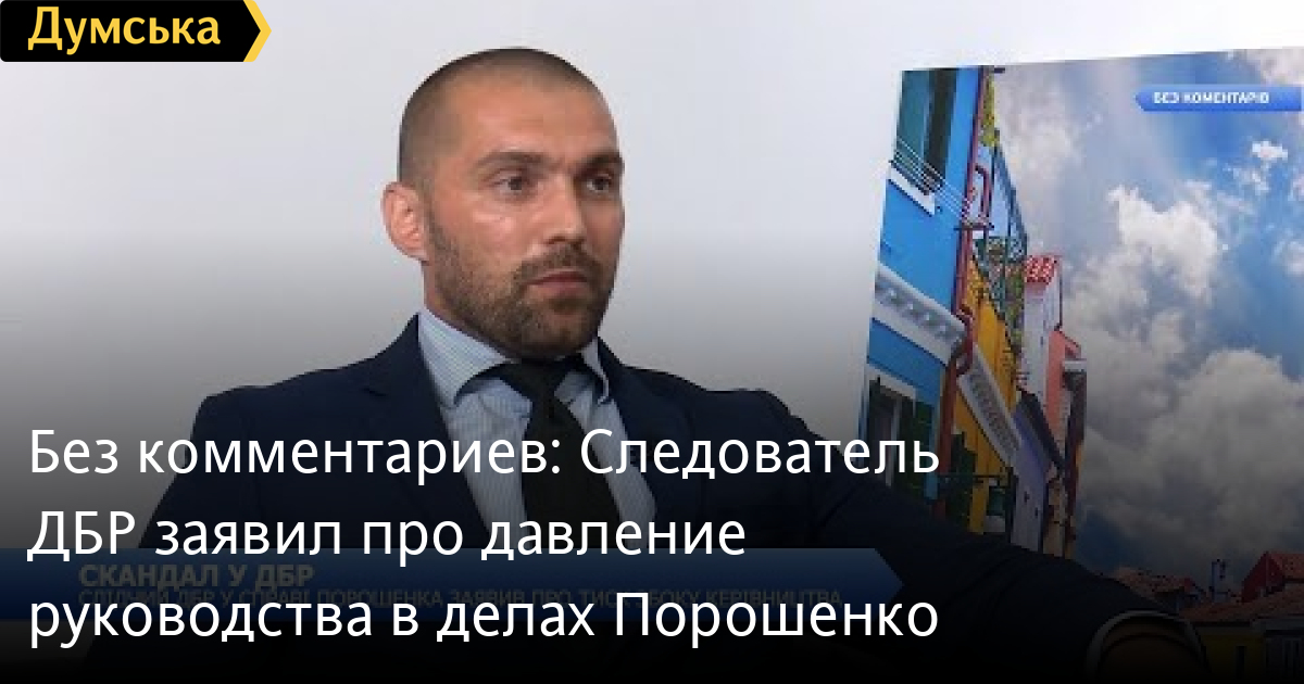 Без комментариев: Следователь ДБР заявил про давление руководства в делах ПорошенкоСМЕРТЬ РОССИЙСКИМ ОККУПАНТАМ! Заметили ошибку? Выделяйте слова с ошибкой и нажимайте control-enter Думская ТВ. Сюжеты: