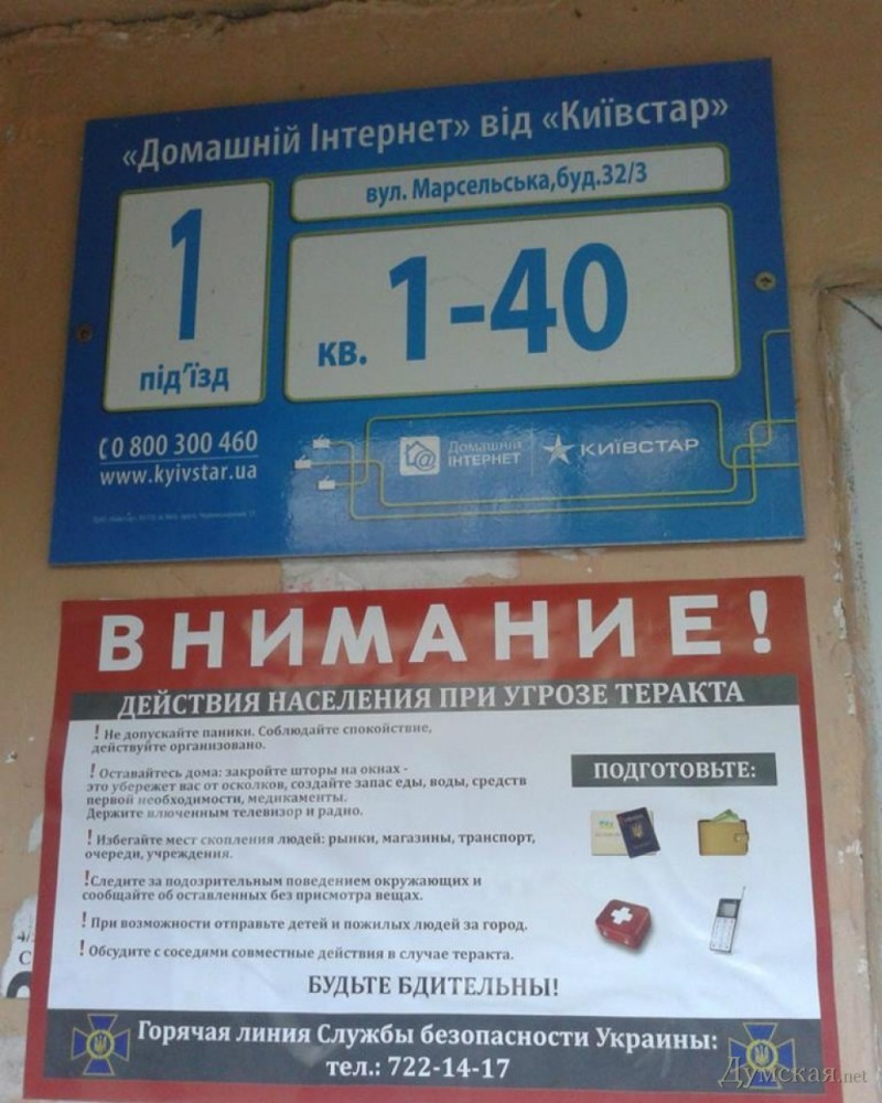Вот такие объявления якобы от СБУ появились сегодня на одесских домах. Жители, мягко говоря, обеспокоены.