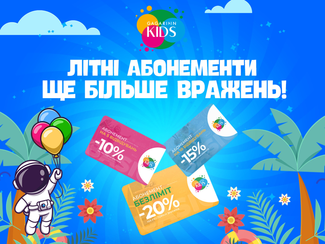 Безлімітне літо з абонементами в Gagarinn Кids (на правах реклами)Відкрийте двері до незабутніх пригод та веселощів у дитячому розважальному комплексі Gagarinn Kids! Ми раді повідомити про старт продажу абонементів на відвідування нашого комплексу. Тепер ваші діти зможуть насолоджуватись улюбленими розвагами ще частіше та з вигодою для вашого бюджету. Обирайте серед трьох варіантів абонементів: на 5 відвідувань, 10 відвідувань та безлімітні відвідування. BASIC — 5 відвідувань зі знижкою 35% на вхідний квиток та 10% на ресторан Цей абонемент ідеально підходить для тих, хто тільки починає відкривати для себе світ Gagarinn Kids. Відвідуйте наш комплекс п'ять разів за спеціальною ціною та насолоджуйтесь всіма доступними розвагами. Переваги: - Економія на кожному відвідуванні. - Можливість відвідати комплекс у зручний для вас час. - Ідеальний вибір для знайомства з Gagarinn Kids. STANDART - 10 відвідувань зі знижкою 50% на вхідний квиток та 15% на меню ресторану Якщо ваші діти вже встигли полюбити наш комплекс або ви хочете забезпечити їм регулярні розваги, абонемент на 10 відвідувань – саме для вас. Це не лише вигідно, а й зручно, адже ви завжди знатимете, що у вас є місце, де ваші діти можуть весело провести час. Переваги: - Ще більша економія. - Більше можливостей для регулярних відвідувань. - Ідеальний варіант для сімей, які часто відвідують розважальні комплекси. VIP — Безлімітний — приходь до нас щодня та заощаджуй 90% на вхідному квитку та 20% на меню ресторану! Цей абонемент – справжній скарб для активних родин! Безлімітний доступ до всіх розваг Gagarinn Kids означає, що ваші діти можуть відвідувати комплекс щодня і проводити тут стільки часу, скільки захочуть. Жодних обмежень – лише нескінченні веселощі та радощі. Переваги: - Максимальна економія для активних відвідувачів. - Необмежений доступ до всіх зон та атракціонів. - Ідеальний варіант для справжніх шанувальників Gagarinn Kids. Головними особливостями дитячого парку Gagarinn Kids є: 1. Перше в Одесі інтерактивне дитяче місто професій; 2. Батутний парк та різноманітні атракціони; 3. 50+ унікальних анімаційних сценаріїв; 4. Неймовірні масштаби — 6000 м² дитячих розваг; 5. Святкові шоу на будь-який смак, квести та майстер-класи; 6. Власний ресторан та велика кондитерська; Професійні аніматори вже подбали про кожен момент, враховуючи індивідуальні побажання та плануючи захоплюючий сценарій. Розташування: Генуезька вулиця, 5/2, Одеса, Аркадія Телефон: +380931707010 Помітили помилку? Виділяйте слова з помилкою та натискайте control-enter |