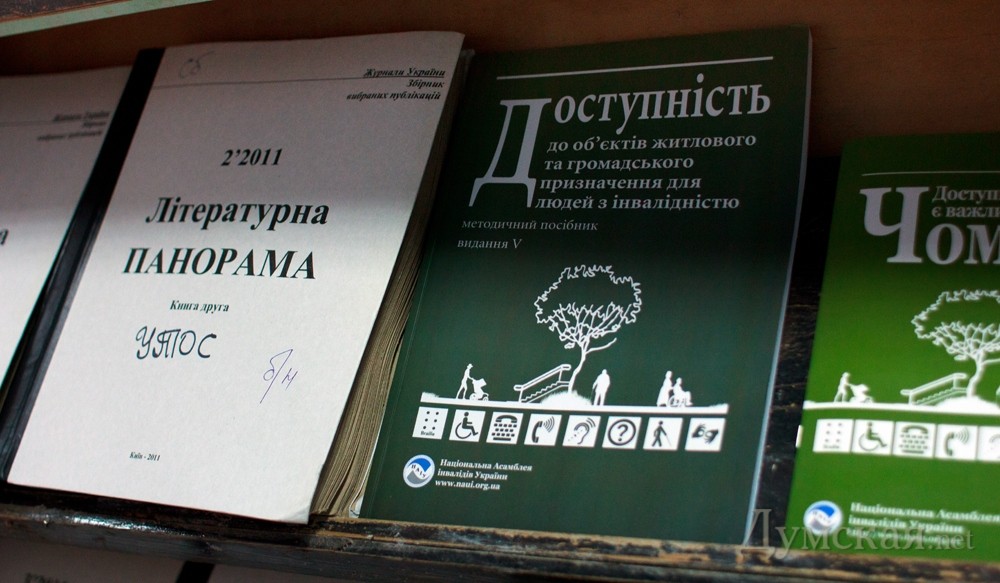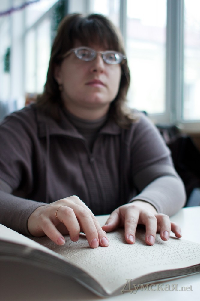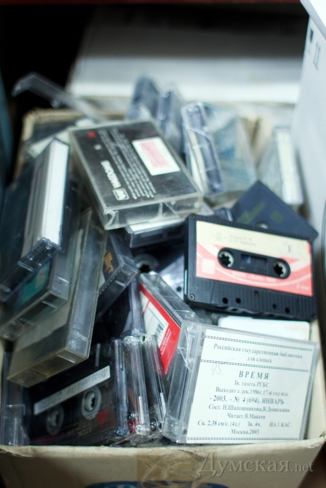 По дороге из желтого кирпича — за пудовой Библией: чем живет одесская библиотека для незрячихНебольшой старинный дворик в самом центре Одессы, в 50 метрах от Соборной площади. За коваными воротами, перечеркивая серый асфальт, стелется самая настоящая дорога из желтого кирпича, как в сказке Александра Волкова. Каждый кирпичик этой дороги звонко отвечает на удары белой трости и приводит посетителей прямо к дверям единственного в Одессе «хранилища мудрости» для незрячих – библиотеки УТОС. В этом необычном заведении побывал и корреспондент «Думской» Александр Гиманов. ЧИТАТЬ — РУКАМИ Над входом — строки Расула Гамзатова: Здесь облегченье ты найдешь А у дверей нас встречает гостеприимная хозяйка – Галина Сущенко, заслуженный работник культуры, которая руководит библиотекой уже более 30 лет. Хозяйство у Галины Алексеевны небольшое даже по сравнению с провинциальными районными библиотеками, зато весьма увесистое. Один том «брайлевской» книги для незрячих весит более килограмма. К примеру, «Золотой теленок» Ильфа и Петрова — это 9 томов, а Библия — 25 (больше пуда!). Книги Брайля быстро приходят в негодность, сетует библиотекарь, поскольку читают их руками. Одно издание служит максимум 20 лет, но чаще намного меньше — в зависимости от популярности книги. Кстати, скорость чтения у опытного человека может достигать до 120 слов в минуту. «Брайлевские книги очень громоздкие, их сложно носить домой и обратно, но зато это такой носитель информации, который можно перечитывать никому не мешая, даже ночью. Люди, которые прошли специализированную 93-ю школу, больше любят читать пальцами – шрифтом Брайля, — чем слушать аудиокниги, но их становится все меньше», — рассказывает Галина Алексеевна. В Украине книги для слепых выпускает только столичный Дом звукозаписи и печати — в весьма ограниченном количестве. Их постепенно вытесняет звуковоспроизводящая аппаратура. Во время недавнего переезда библиотеки с улицы Отрадной, более 2 тонн брайлевской литературы пришлось отдать на депозитарное хранение в Киев, а большинство катушек с аудиокнигами после копирования на кассеты просто выкинули – оставили лишь один стеллаж самых редких изданий. «За все время, что я здесь работаю, у нас поменялось, наверное, более 30 различных видов магнитофонов, — рассказывает библиотекарь. -. До кассетников были бобинные магнитофоны, каждый весом 12,5 кг. «Тихий Дон» Шолохова, к примеру, был на 45 таких катушках, и люди из области приезжали за ними с рюкзаками и футлярами от аккордеонов. Кассетники совершили настоящую революцию. У нас они особые — для слепых информацию записывают на 4 дорожках, чтобы вмещалось больше информации». Последняя техническая новинка, приобретенная за счет спонсоров, — небольшой приемник с четырьмя динамиками, способный воспроизводить аудиоинформацию с флешки. Но их пока немного, да и не всем легко обучиться работе с ними. Надо сказать, спонсорскую помощь руководству УТОСа приходится выбивать буквально с боем. Так, председатель одесского отделения общества Юрий Кочановский даже прыгал раз с парашютом, чтобы привлечь внимание общественности к проблемам слепых. И ведь получилось! Сумел достать с помощью предпринимателей специальные «говорящие» термометры и приборы, измеряющих уровень глюкозы в крови диабетиков. ПЕРВАЯ В СОЮЗЕ По словам на