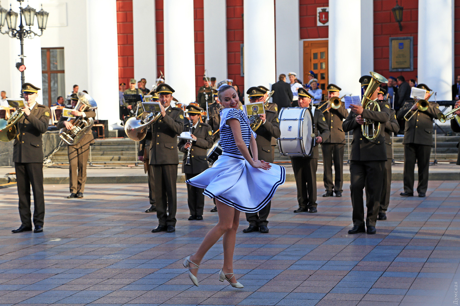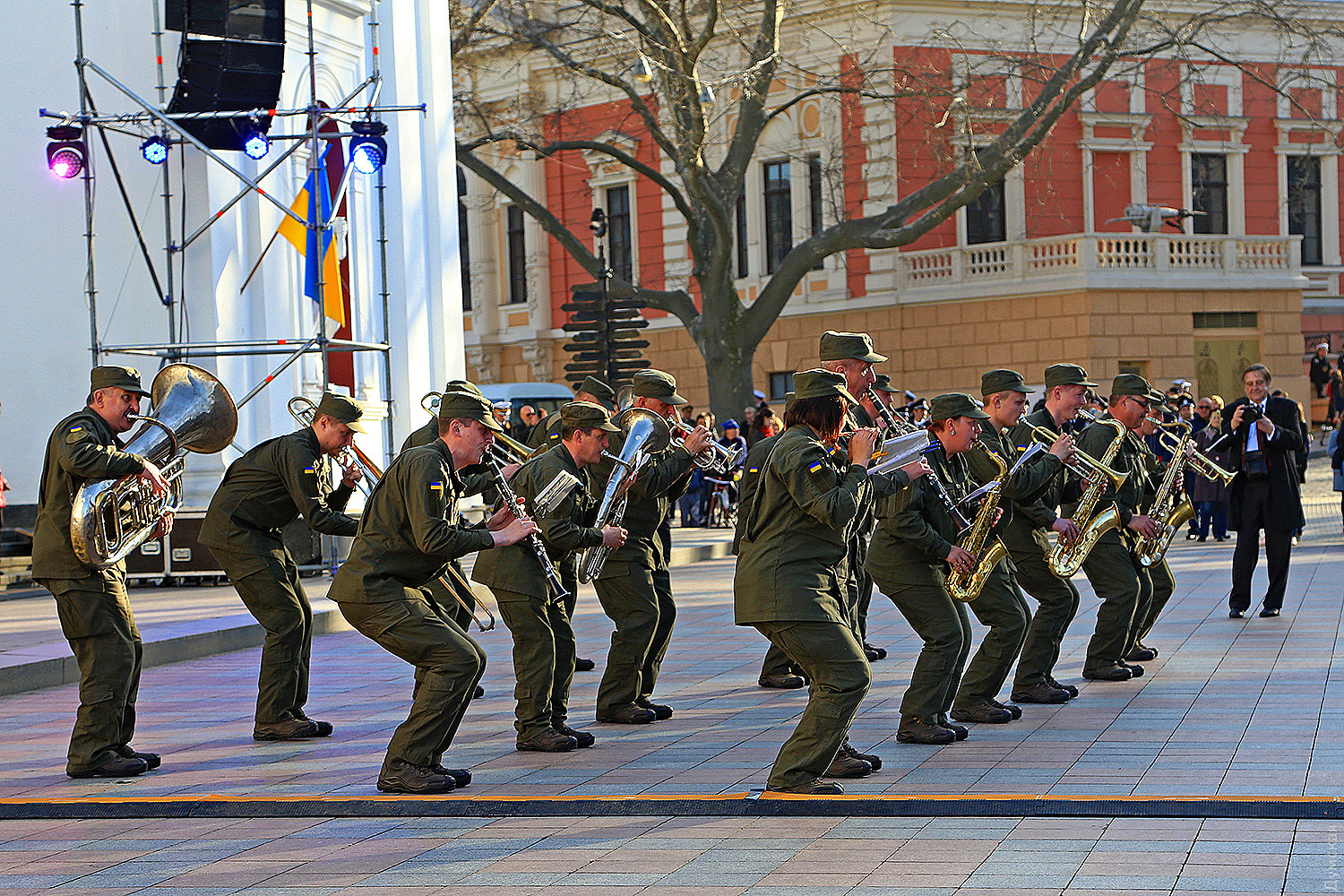 Ставший уже традиционным фестиваль духовых оркестров прошел вчера вечером, в День освобождения Одессы, на Думской площади. В прежние годы к нам приезжали и яркие зарубежные коллективы, но на этот раз, увы, в мастерстве состязались только одесские музыканты. Горожане смогли увидеть оркестры Военной академии, Одесского муниципального театра духовой музыки имени Салика, Главного управления Национальной полиции, ВМСУ и 49-го полка Нацгвардии. Перед началом программы случилась пятиминутная заминка. «Битву оркестров» и всех собравшихся должен был вдохновить мэр Одессы, который немного задержался, принимая ветеранов. Но через несколько минут он все же вышел и еще раз поздравил всех с праздником. Чисто музыкальные композиции сменяли вокалисты, поющие под оркестровый аккомпанемент, и танцевальные коллективы. Концерт был ярким и даже веселым, музыканты в честь праздника зажигали и заводили публику от души. Особо отличился дирижер оркестра Нацгвардии майор Федорчук. Его мимика и энергичные жесты буквально покорили публику. Музыкантов провожали аплодисментами. Фото — Сергей Смоленцев Видео — ГУНП и пресс-службы мэрии СМЕРТЬ РОСІЙСЬКИМ ОКУПАНТАМ! Помітили помилку? Виділяйте слова з помилкою та натискайте control-enter |