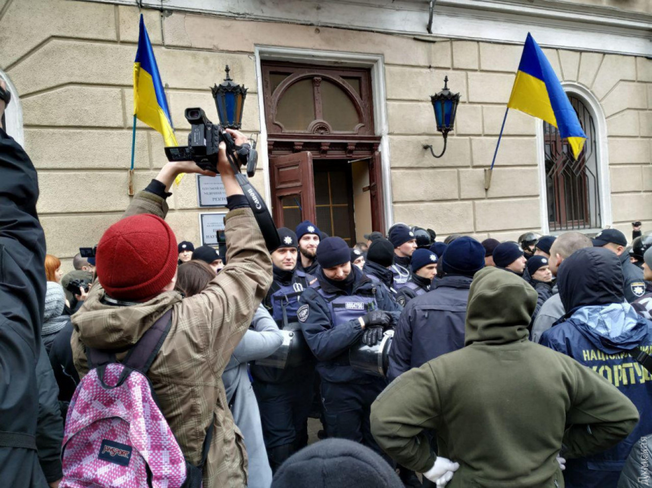 На входе у них вспыхнула потасовка с «защитниками» ректората. Последние даже применили огнетушитель. В конце концов полиция оттеснила сторонников МОЗ от дверей. Те провели импровизированный митинг и написали заявление в полицию о неправомерных действиях оппонентов.