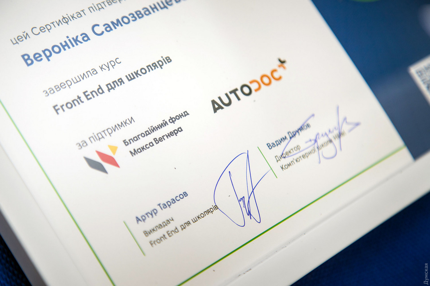 Благодаря компании AUTODOC, дети из многодетных семей и воспитанники БФ «Дорога к Дому» получили возможность выучиться на программистов (общество)Полный курс обучения по программе Front-end для школьников в компьютерной школе Hillel прошли 12 юных одесситов из многодетных семей и воспитанников Благотворительного фонда «Дорога к Дому». Возможность сесть за парты IT-школы будущие Илоны Маски и Стивы Джобсы получили благодаря помощи компании AUTODOC и Благотворительного фонда Макса Вегнера, которые оплатили обучение. Своей личной миссией соучредитель AUTODOC Макс Вегнер считает помощь молодежи — талантливой и амбициозной, но не всегда имеющей нужных ресурсов, чтобы развиваться. Бизнесмен уверен, что у одаренных детей должна быть возможность раскрыть потенциал, и поэтому открывает бесплатные образовательные курсы и инициирует просветительские проекты. «Качественное и доступное образование — самое ценное, что мы можем передать новому поколению», — отмечает Макс Вегнер. В течение трех месяцев учащиеся постигали азы программирования Front-end, чтобы в декабре получить сертификат, подтверждающий уровень, а главное — дающий уверенность в собственном выборе. Дипломы и подарки айтишники получили из рук технического директора компании AUTODOC Дмитрия Задорожного. «Нам всегда выгодно инвестировать в будущее, — подчеркивает Дмитрий Задорожный. — Я уверен, то, чем сейчас занимаются эти ребята, очень нужно для таких компаний, как AUTODOC. Сейчас уже нужно думать, что будет делать компания в технологическом аспекте в 2030 году, и вот такие школы как Hillel воспитывают наше будущее». Сами школьники довольны полученным знаниям и отмечают высокий уровень педагогов школы, и доступность подачи сложного материала. «Мне понравилось обучаться здесь, захотелось получить новые знания, — рассказал 14-летний Борис Боровиков. — Были в начале сложности, но здесь преподаватель объяснял понятнее, и материал интересней, чем в школе. Классная группа». Его однокашница Анастасия Очеретная уже планирует обучение на следующем курсе. «Я намного больше узнала, чем в принципе могла узнать из школьного курса программирования, — уверена Анастасия Очеретная. – Все знания, которые я получила, могу спокойно использовать уже сейчас, у меня мой личный сайт уже в разработке. Я еще планирую тут побывать, только возможно на другом курсе». Представитель ОБФ «Дорога к Дому» Оксана Максименко отмечает, что подобная поддержка очень нужна подопечным фонда, у которых не всегда есть возможность предоставить своим детям доступ к качественному и современному образованию. «Качественное образование — это всегда шанс на хорошее будущее, — уверена Оксана Максименко. — Благодаря таким курсам они смогут обрести профессию, которая поможет им стать успешными людьми. К примеру, у Ангелины и Ярославы было желание попасть в школы такого рода, но так как они достаточно дорогие, то родители не могли сами исполнить их мечту». По итогам первого курса двое лучших учащихся курса получили возможность пройти бесплатно следующий уровень обучения. «Это полностью инициатива AUTODOC и фонда Макса Вегнера, представители пришли сами и предложили профинансировать обучение для детей, — рассказал руководитель школы Вадим Друмов. — Это впервые в нашей истории, бизнес проявляет такие социальные инициативы. Мне понравилось, 