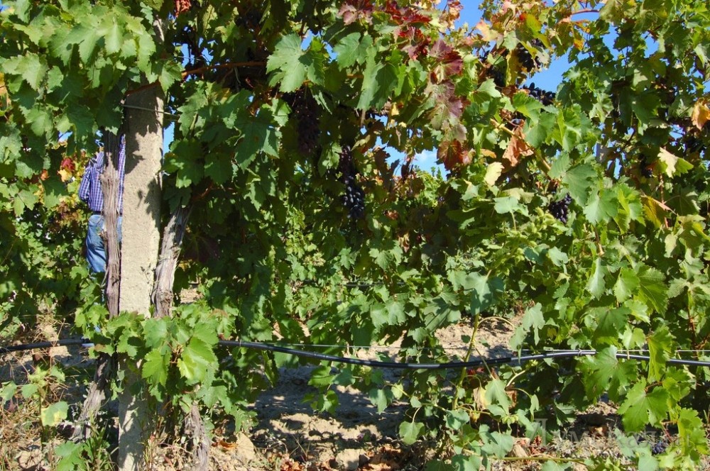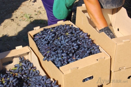 Выглядит «механизированная» уборка следующим образом. В поле работает бригада сборщиков, вооруженных секаторами и ведрами. Труд у них тяжелый — целый день, почти не разгибаясь, ходят от одного куста к другому, отсекая гроздья и бросая в ведра. Причем абы как это не сделаешь — виноградные кисти нужно срезать у самой ветки, держать их за черенок, сами ягоды руками не трогать, чтобы, не дай боже, не стереть восковой налет. В ведро виноград не бросают, а нежно укладывают. Попробовал себя в роли передовика производства и ваш покорный слуга. Дальше урожай сбрасывается в специальные «лодки» или чаны-«бункеры», которые тащат вдоль рядов тракторы. Остальное — дело техники: перевалкой на грузовики и доставкой покупателю занимаются, конечно же, машины.
