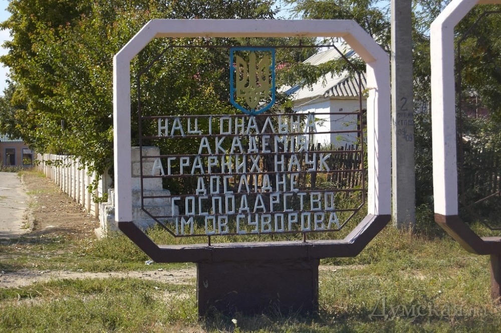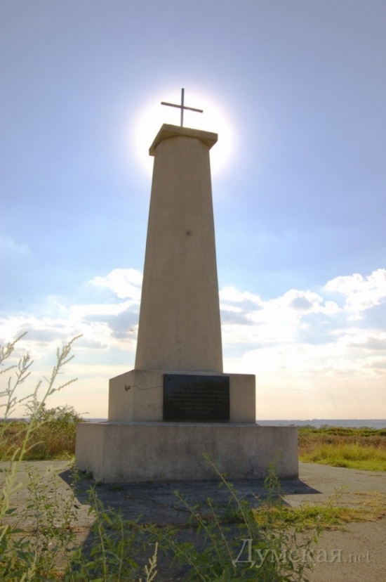 Едем по полям вдоль бескрайних рядов лозы. Директорский (чуть не написал «командирский») УАЗик скачет, «козлит» на полевых дорогах. Вот и поле с низенькими виноградными кустиками. Это так называемая «школка». В ней «учатся» маленькие виноградные саженцы, чтобы стать большими плодоносящими кустами. Молодые побеги элитных сортов прививают к подвоям-дичкам. Полученный гибрид двух растений получается более устойчивым к засухе и избытку влаги, дает обильный урожай. Поле большое. По технологии, виноградные кусты нужно начисто вырубать каждые тридцать лет. Затем — три года отдыха, и высаживают новые саженцы. Совхоз имени Суворова выращивает саженцы и для себя, и на продажу, причем в больших количествах — порядка полумиллиона штук двадцати разных сортов в год. «У нас в хозяйстве есть огромный холодильник, —рассказывает директор.— Раньше мы держали там столовый виноград и торговали им до нового года. Сейчас рынок забит дешевым чилийским виноградом, поэтому в холодильнике мы храним саженцы». Совхоз был основан в далеком 1944-м. В 1992 году хозяйство подчинили Национальной академии аграрных наук. Привитые саженцы — одно из основных направлений работы. «Сейчас стало сложнее. В 1999-м запустили государственную программу и финансировали закладку новых виноградников. У людей были деньги на покупку саженцев. В прошлом году программа эта затормозилась, а сейчас остановилась совсем», — спокойно сетует директор. Отметим, что с 2000 года производство и экспорт украинского вина возрастают. Как оно будет теперь, в свете таких событий, — трудно сказать. Скачем дальше по полевым дорогам. «Есть тут у нас одно особое место, сейчас заедем», —говорит Белоус. И действительно: посреди виноградников — большая нераспаханная поляна, заросшая степными травами. Посредине памятный знак, увенчанный крестом.
