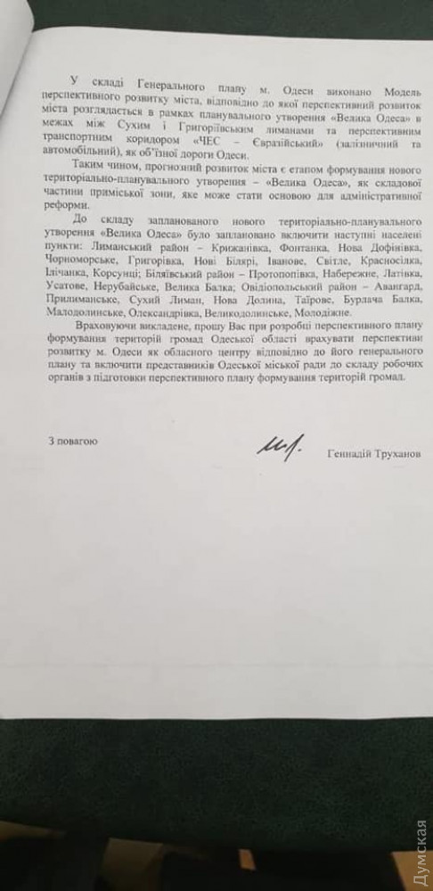 «Большая Одесса»: мэрия мечтает присоединить все пригороды между Сухим и Григорьевским лиманами (обновлено)Мэрия Одессы мечтает присоединить к городу все соседние населенные пункты, расположенные между Сухим и Григорьевским лиманами. Этот вопрос будет обсуждаться на внеочередной сессии собрания, которая предварительно запланирована на четверг, 21 ноября. Проект решения сессии обнародовала журналистка Ирина Гриб. Согласно нему, горсовету предлагают обратиться к губернатору Максиму Куцему с просьбой «учесть при разработке перспективного плана формирования территорий громад Одесской области перспективы развития Одессы как областного центра в соответствии с его генеральным планом». При этом авторы проекта напоминают, что генплан предполагает создание территориально-планировочного образования «Большая Одесса». В его состав собирались включить следующие населенные пункты: Одессу, Крыжановку, Фонтанку, Новую Дофиновку, Черноморское, Григорьевку, Новые Беляры, Иваново, Светлое, Красноселку, Ильичанку, Корсунцы, Протопоповку, Набережное, Латовку, Усатово, Нерубайское, Великую Балку, Авангард, Прилиманское, Сухой Лиман, Новую Долину, Таирово, Бурлачью Балку, Малодолинское, Александровку, Великодолинское, Молодежное. Напомним, вопрос об интеграции города с соседними населенными пунктами возник в связи с тем, что правительство решило изменить подход к децентрализации и административно-территориальной реформе. «Не секрет, что руководство страны планирует отойти от практики добровольного объединения громад и перейти к принудительному, по утвержденным ранее перспективным планам, — рассказал «Думской» секретарь горсовета Алексей Потапский. — Кто не успел договориться с соседями, тот пролетает. Поэтому мы хотим обратиться к правительству с просьбой, чтобы в ходе создания громад Одессу не обделили. Не секрет, что городу нужно расширяться, что сегодня мы имеем серьезные проблемы, когда наши окраины застроены высотками, жители которых пользуются инфраструктурой города. Мы хотим высказать свою позицию от имени депутатского корпуса». В настоящее время Одесса является самым густонаселенным областным центром Украины. Плотность населения здесь — 6185 человек на квадратный километр. Для сравнения: в Днепре этот показатель составляет 2750 чел./кв. км, в Киеве — 3190, а в Харькове — 4781. При этом средняя обеспеченность жильем в Одессе — 18,1 кв. м на человека, что ниже, чем в среднем по городам страны (20,8 кв. м). В мэрии считают, что «высокая плотность застройки территории в существующих границах города не позволяет размещать необходимые объекты жилой и общественной застройки и зеленых насаждений». При этом за городской чертой уже застраивают или планируют застроить 5660 га. Речь идет о жилье для 300 тысяч человек, которое возводят без учета положений генплана Одессы, без необходимой инженерно-транспортной и социально-бытовой инфраструктуры. Все это крайне негативно влияет на социальную и экономическую ситуацию в городе, утверждают авторы проекта. ОБНОВЛЕНО В 15:30. Прямо сейчас по этому поводу у губернатора проходит рабочее заседание. Прессу на него не пустили. По нашим данным, облгосадминистрация готова согласовать включение в состав Одесской городской ОТГ Августовского, Мариновского, Ильиновского, Нерубайского, Холоднобалковского, Ус