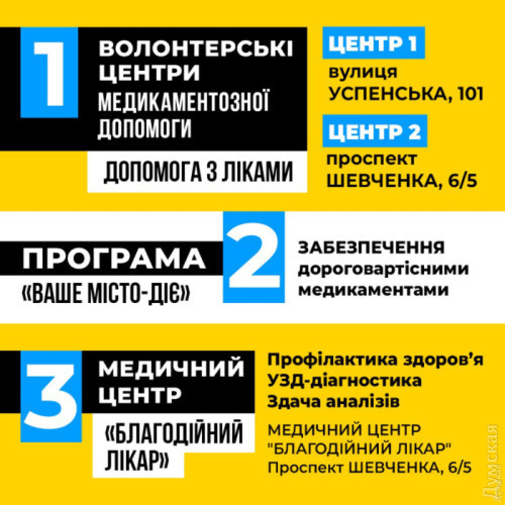Понад 60 тисяч підопічних, безкоштовні УЗД, аналізи та ліки: найбільший Гуманітарний центр медикаментозної допомоги в Одесі святкує дворіччя роботи (суспільство)Найбільший в Одесі міжнародний благодійний фонд медикаментозної допомоги «Ваше місто» святкує дворіччя від дня заснування. Навесні 2022 року одесит Ігор Федін із групою однодумців відкрив перший в Україні Волонтерський центр медикаментозної допомоги, роздаючи тимчасовим переселенцям і малозабезпеченим найнеобхідніші ліки та предмети гігієни. За два роки МБФ «Ваше місто» надав допомогу понад 60 тис. людей, щодня видаючи медикаменти на суму близько 100 000 гривень, зокрема й дорогі препарати. «Сьогодні ми працюємо за трьома напрямками, — розповідає голова фонду Ігор Федін. — Перший — безоплатна медикаментозна допомога за рецептом, другий — дорогі спеціалізовані препарати. Третій напрям — медичний центр «Благодійний лікар». Це унікальний проєкт для переселенців. Наш відвідувач може безоплатно отримати консультацію лікаря-терапевта, зробити кардіограму й УЗД і, віднедавна, зробити лабораторні обстеження, здати аналізи прямо в нашому центрі». За словами Федіна, це стало можливим завдяки тому, що МБФ «Ваше місто» — це єдиний фонд на півдні України, який від початку повномасштабної війни отримав ліцензію від МОЗ України на медичну практику. Послугами проєкту «Благодійний лікар» за півроку його роботи скористалося понад тисячу українців зі статусом ВПО. «Ми зосередилися на переселенцях, тому що ці люди через війну опинилися в новому місті, банально не знають, де розташовані поліклініки, як до них дістатися, — розповів Ігор Федін. — Найчастіше до нас зверталися внутрішньо переміщені особи з Херсонської, Миколаївської, Донецької та інших областей». На базі медичного центру «Благодійний лікар» можна безоплатно пройти такі лабораторні обстеження: - загальноклінічні дослідження крові; - маркери серцево-судинних захворювань; - діагностика цукрового діабету; - аналізи тиреоїдної групи; - загальноклінічні дослідження сечі; - біохімічні дослідження; - аналізи на коронавірус. «Ви можете прийти в наш центр за адресою проспект Шевченка 6/5 (вхід з боку проспекту Гагаріна) або записатися телефоном, — розповідає провізор МБФ «Ваше місто» Юлія Нагоїцька. — Навіть якщо у вас немає скарг, розроблений нами комплекс обстежень, а також консультація з лікарем-терапевтом дасть вам змогу виключити або вчасно діагностувати небезпечні захворювання. Забір біологічних матеріалів проводять у центрі, а потім їх направляють в одну з найкращих лабораторій України, де проводять дослідження і максимум наступного дня ми отримуємо результати. Ми раді, що наш фонд розширюється і може допомогти більшій кількості людей, зокрема переселенцям із менш безпечних або окупованих регіонів». Нагадаємо, міжнародний благодійний фонд «Ваше місто» надає безоплатну допомогу ліками одеситам і переселенцям з перших днів повномасштабного вторгнення. У середині літа 2022-го року «Ваше місто» уклав довгостроковий договір з Action Medeor — провідною німецькою компанією, яка з 1964 року надає медикаментозну гуманітарну допомогу населенню країн, що страждають від природних катаклізмів, епідемій і військових конфліктів. У грудні Міжнародний благодійний фонд «Ваше місто» і Департамент соціальної політики та праці Одесько