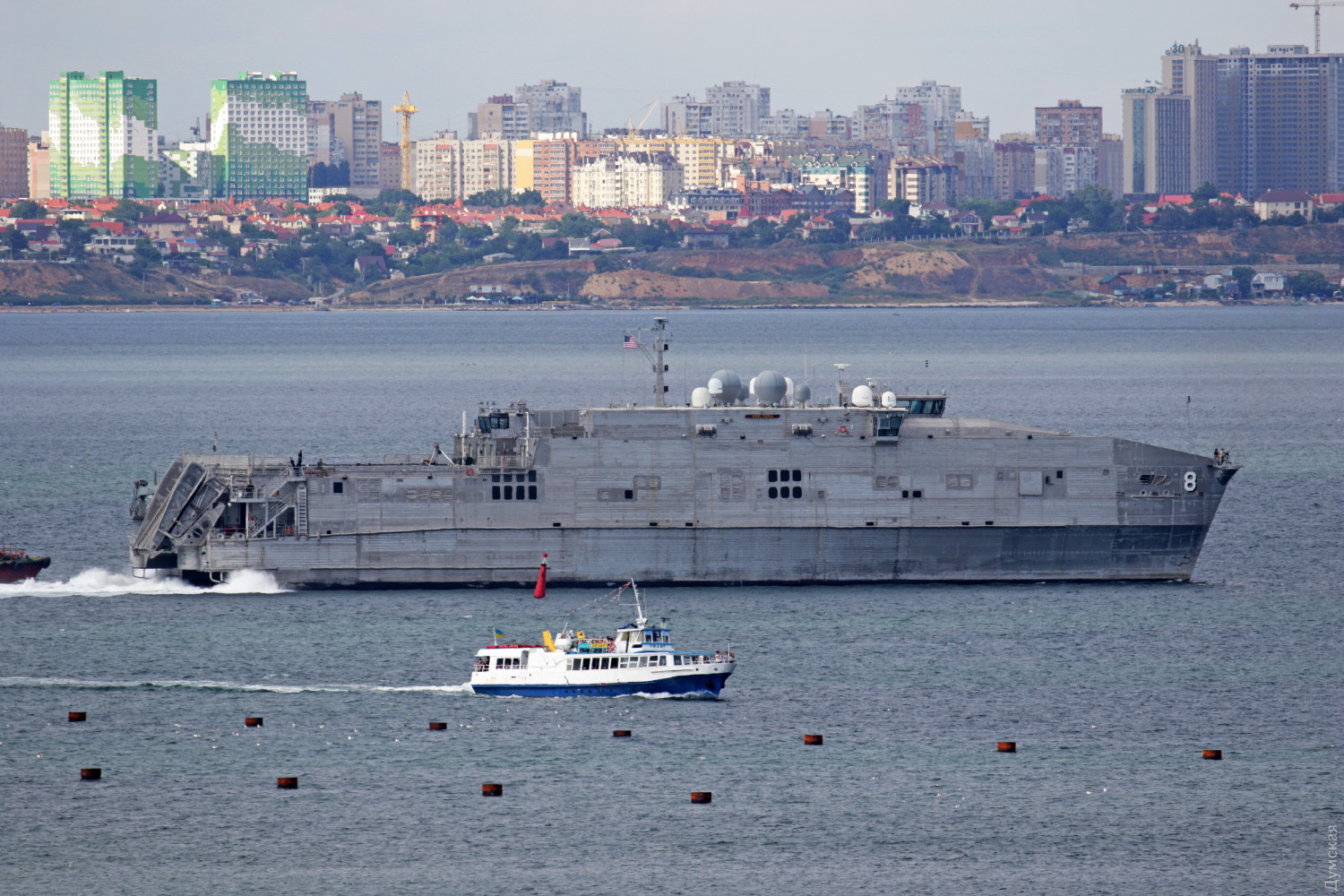 Оживление наблюдалось сегодня вечером в Одесском заливе. Как передает корреспондент «Думской», готовясь к предстоящему «Си Бризу», в порт зашли два румынских корвета и американский эсминец USS Carney DDG64. Быстроходный транспортно-десантный корабль ВМС США USNS Yuma освободил место эсминцу на причале 1-К и, отшвартовавшись, ушел на большой скорости в открытое море.
