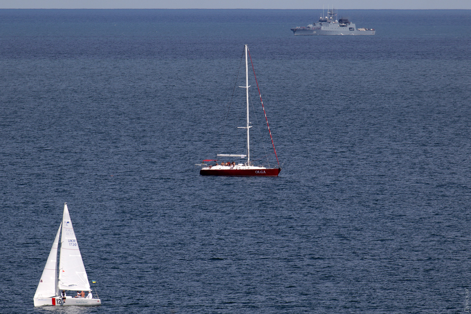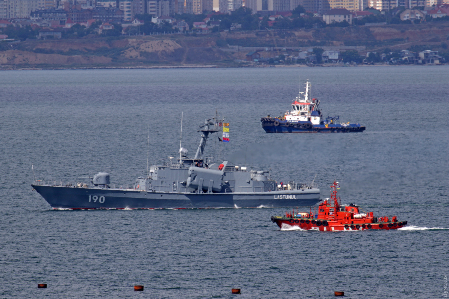 Сегодня с утра ждали прихода американца, однако утром в Западную базу зашел грузинский «Айленд» — катер P23 «Очамчира» и болгарский корвет «Бодри» (бортовой 14). Основные события развернулись ближе к вечеру. Около 16 часов к одесскому заливу подтянулись несколько военных иностранцев. Первым подошел румынский корвет Lastunul (бортовой 190), которого тоже пришвартовали в Практической гавани. Вторым на горизонте появился еще один румынский корвет Contraamiral Eustaciu Sebastian (бортовой 264). Однако ему пришлось пропустить в очереди на швартовку американский ракетный эсминец Carney, который, хотя и подошел чуть позже, имел приоритет в постановке к стенке. Пока «большой» американец плавно сбавлял ход, от причала 1-К быстро отошло алюминиевое чудо — новейший десантный корабль Yuma. Не привлекая буксиры, Yuma отошел от причала, и быстро набрав более 12 узлов, ушел в открытое море. Через несколько минут Carney занял его место на контейнерном причале. Только после этих перестановок катер доставил лоцмана на второй румынский корвет, который около 18 часов был пришвартован в Практической гавани. Завтра ожидается приход в Одессу одного из турецких фрегатов. Фото Сергея Смоленцева