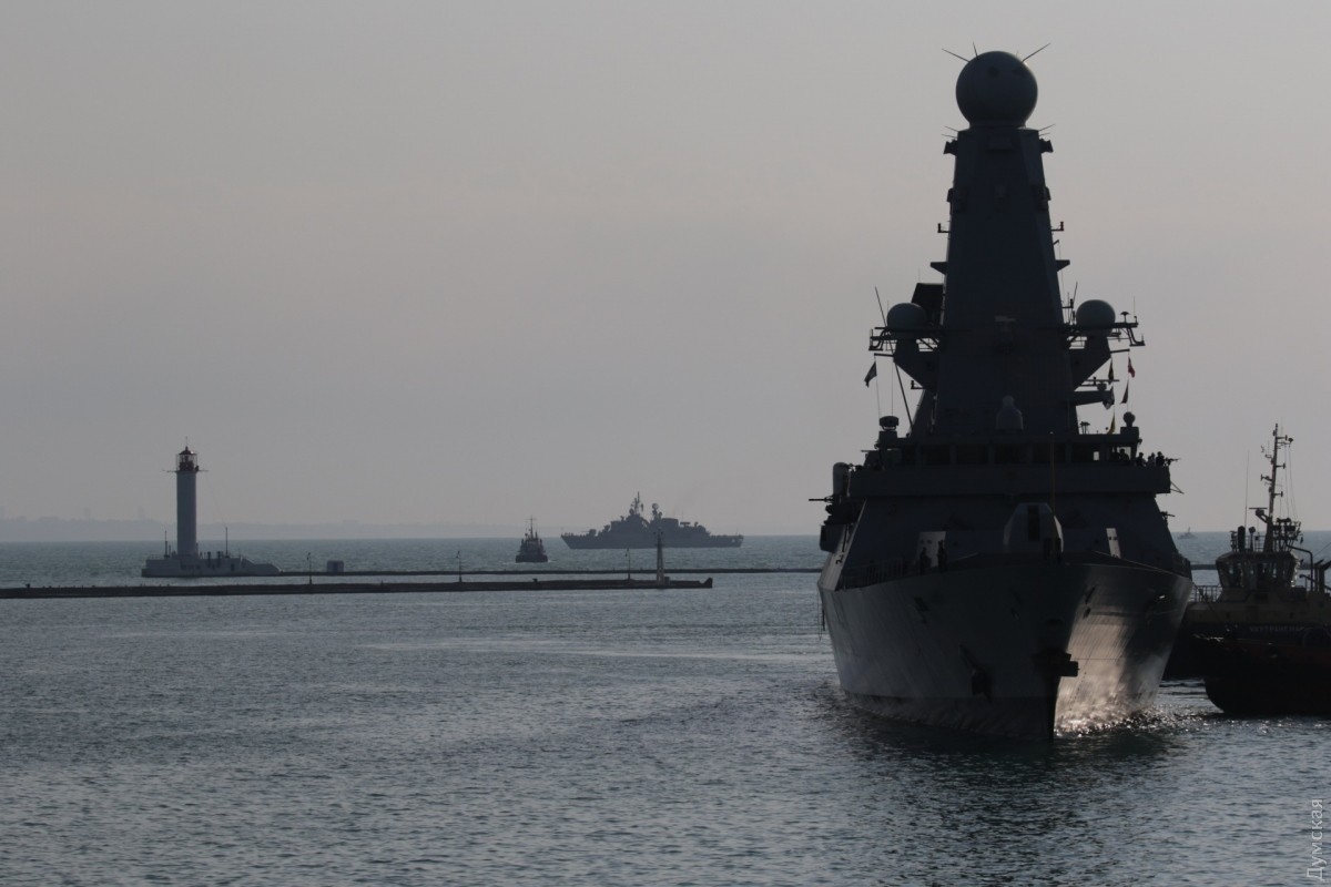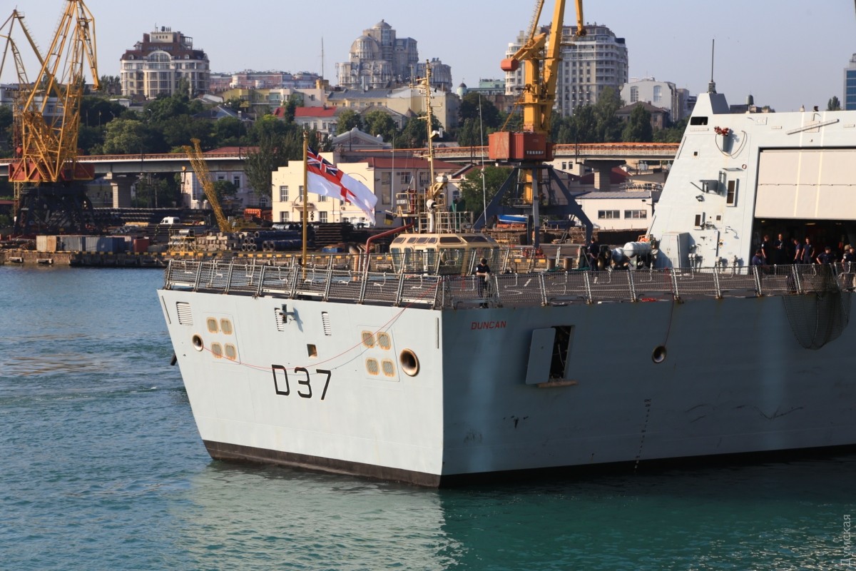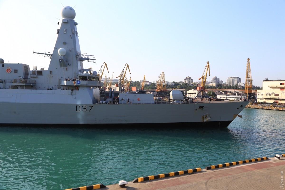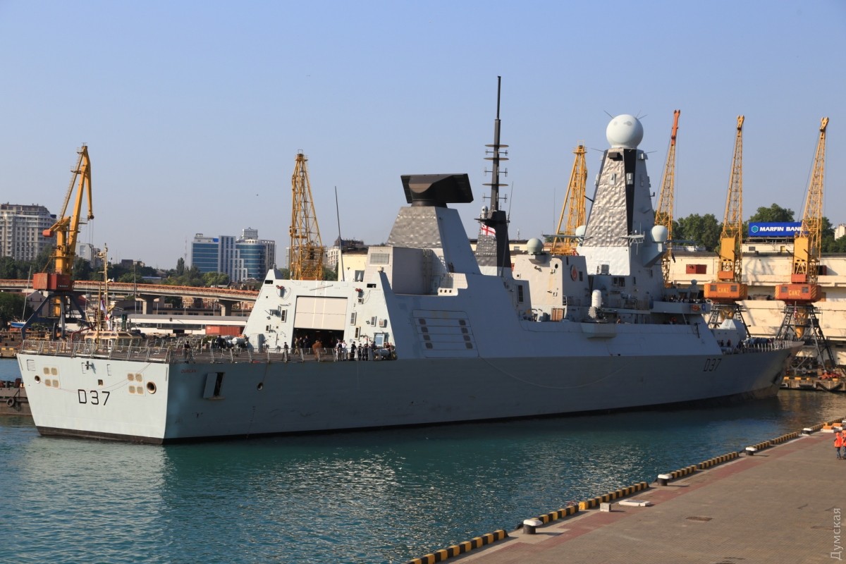 Сегодня утром в Одессу зашла вторая постоянная группа кораблей НАТО, базирующаяся в Средиземном море, передает корреспондент «Думской». Новейший английский эсминец проекта 45 HMS Dunkan D37 и турецкий фрегат F243 Yildirim появились на горизонте около 6 утра и еще около часа лавировали в Одесском заливе. Брит прошел Воронцовские ворота первым, но турок пришвартовался немного раньше. Наши буксиры очень осторожно кантовали посланника королевы, видимо, боясь повредить дорогостоящее покрытие британца. Надо сказать, что британские корабли не заходили в Одессу с 2008 года, когда у нас гостила плавучая мастерская британских ВМС. До нее, в 2003-м, заходил фрегат УРО «Нортамберленд». СМЕРТЬ РОСІЙСЬКИМ ОКУПАНТАМ! Помітили помилку? Виділяйте слова з помилкою та натискайте control-enter |
