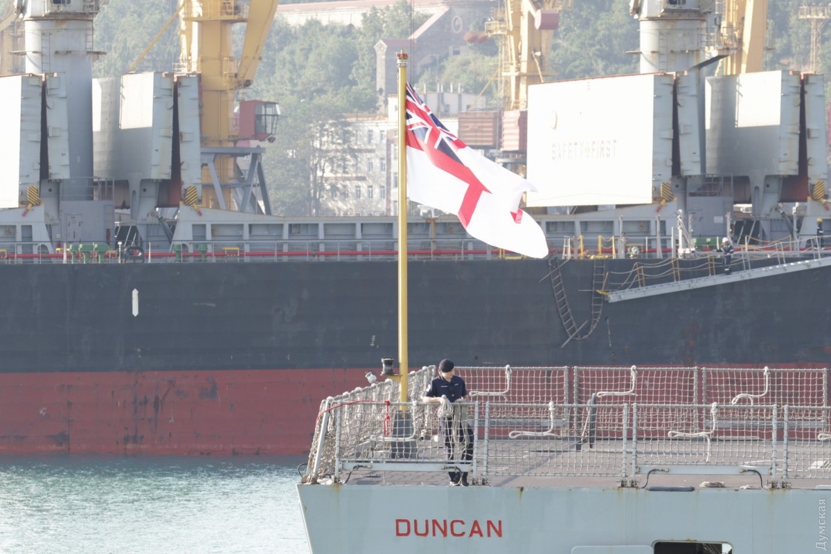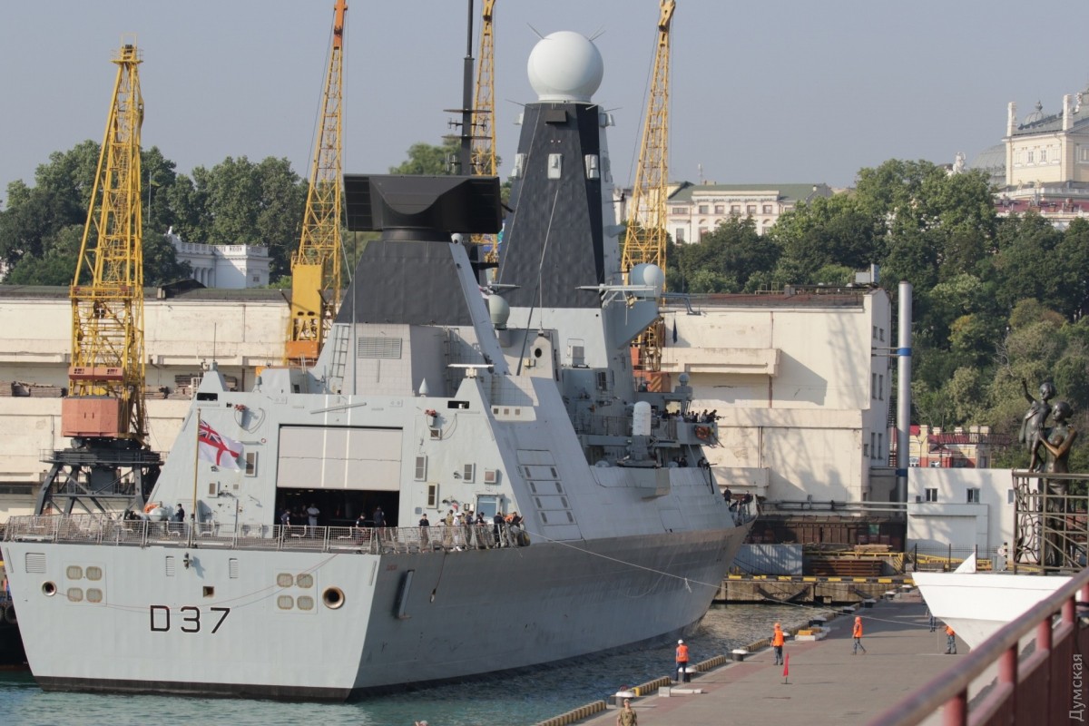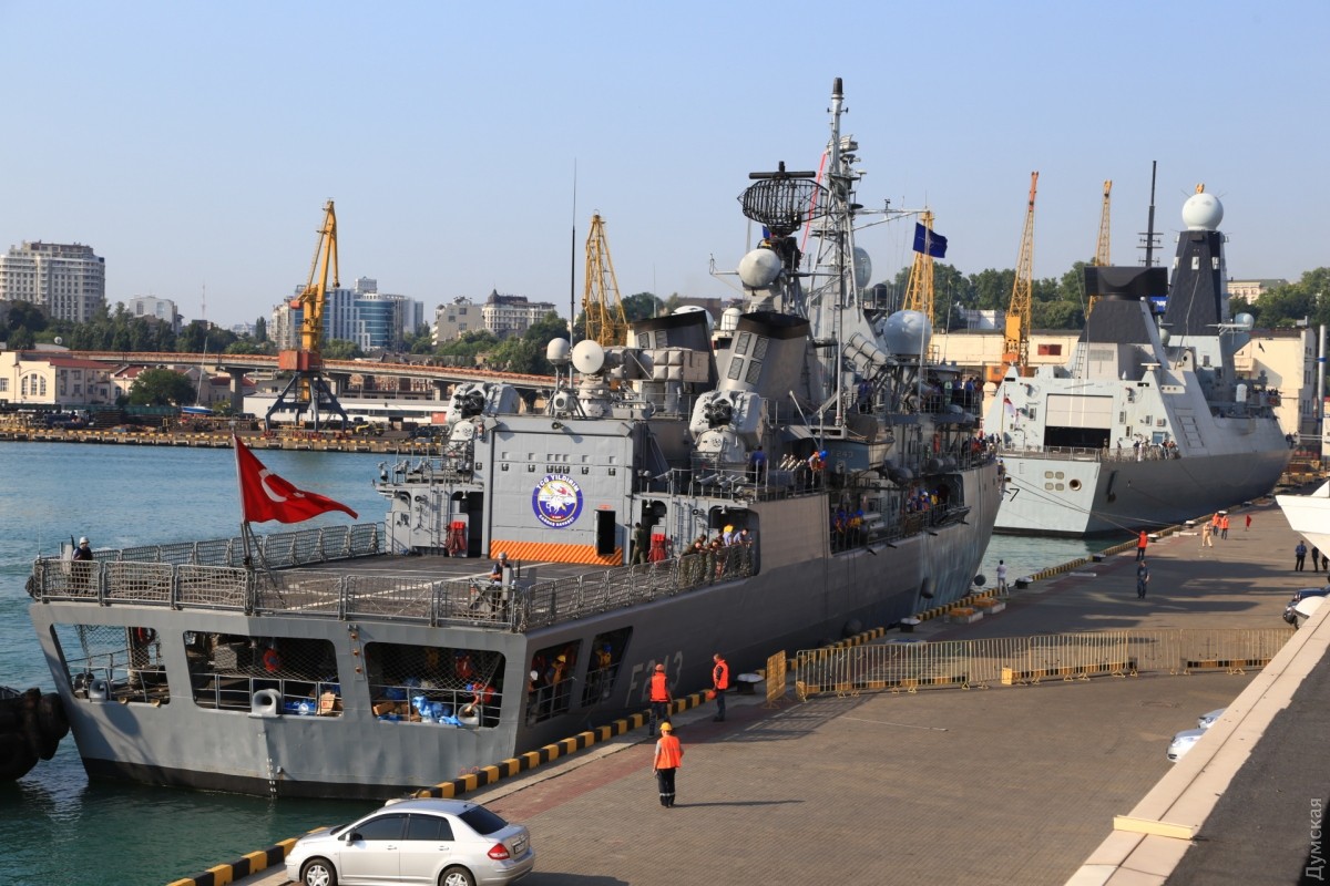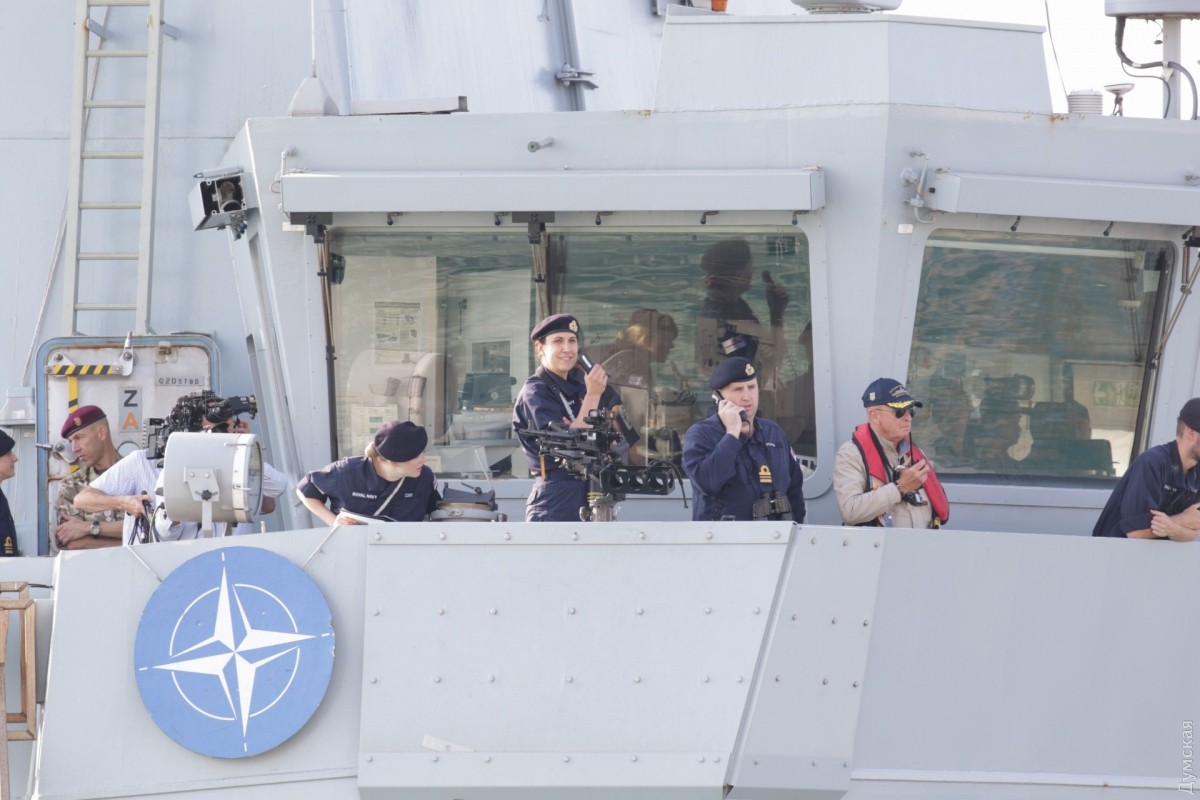 Сегодня утром в Одессу зашла вторая постоянная группа кораблей НАТО, базирующаяся в Средиземном море, передает корреспондент «Думской». Новейший английский эсминец проекта 45 HMS Dunkan D37 и турецкий фрегат F243 Yildirim появились на горизонте около 6 утра и еще около часа лавировали в Одесском заливе. Брит прошел Воронцовские ворота первым, но турок пришвартовался немного раньше. Наши буксиры очень осторожно кантовали посланника королевы, видимо, боясь повредить дорогостоящее покрытие британца. Надо сказать, что британские корабли не заходили в Одессу с 2008 года, когда у нас гостила плавучая мастерская британских ВМС. До нее, в 2003-м, заходил фрегат УРО «Нортамберленд». СМЕРТЬ РОСІЙСЬКИМ ОКУПАНТАМ! Помітили помилку? Виділяйте слова з помилкою та натискайте control-enter |