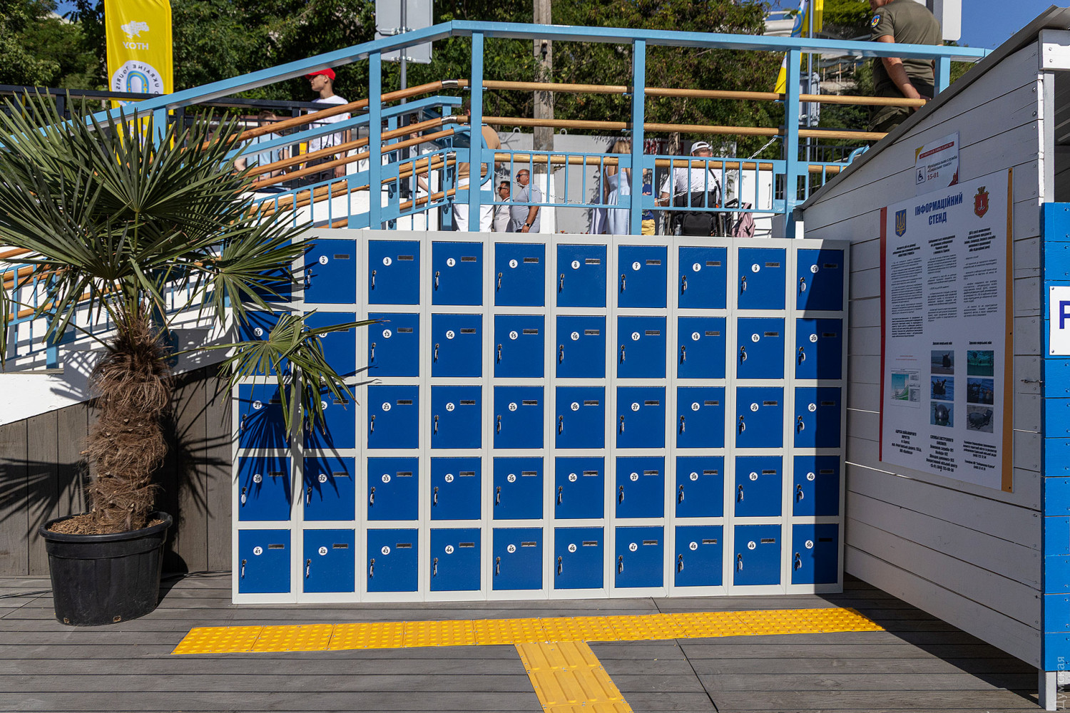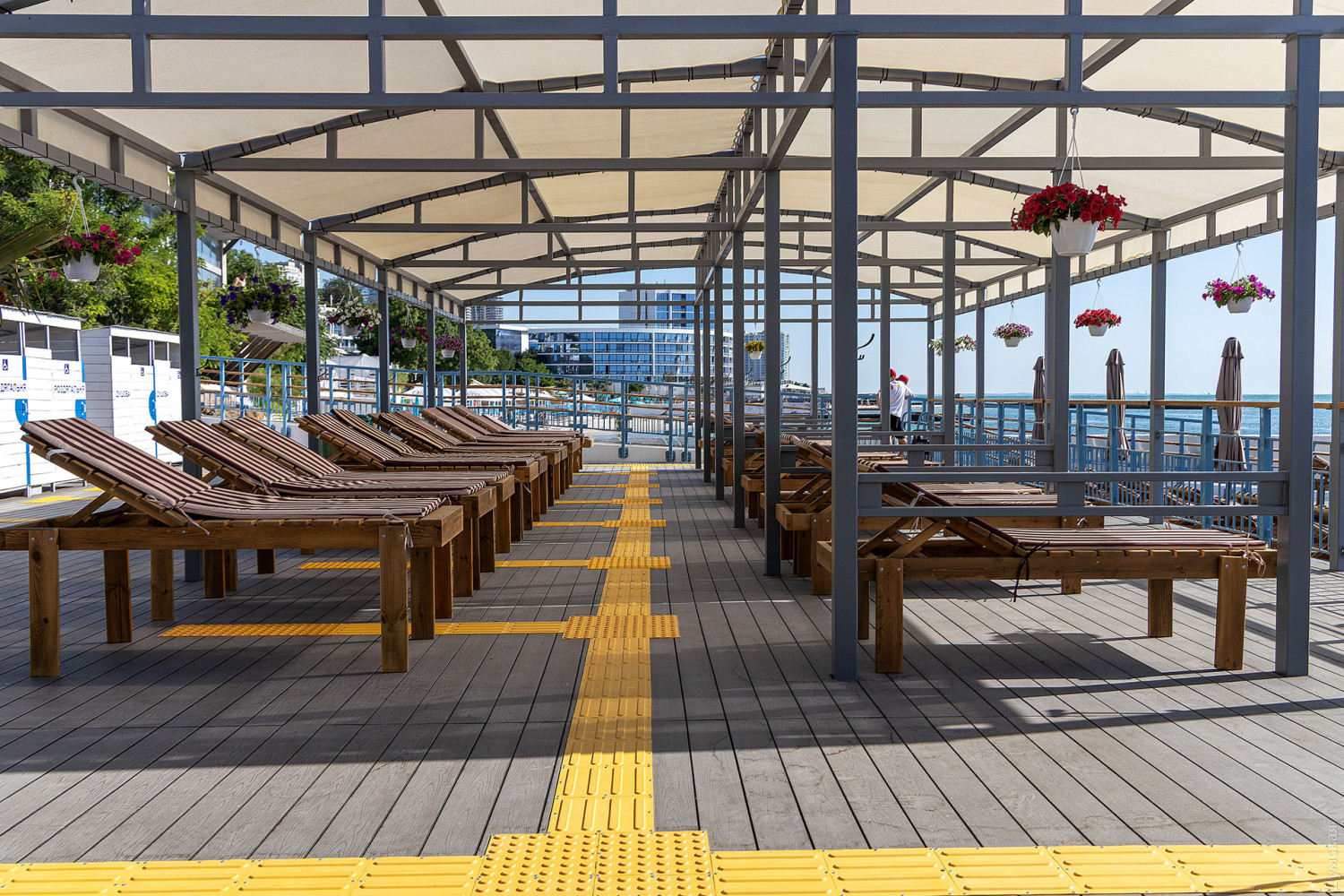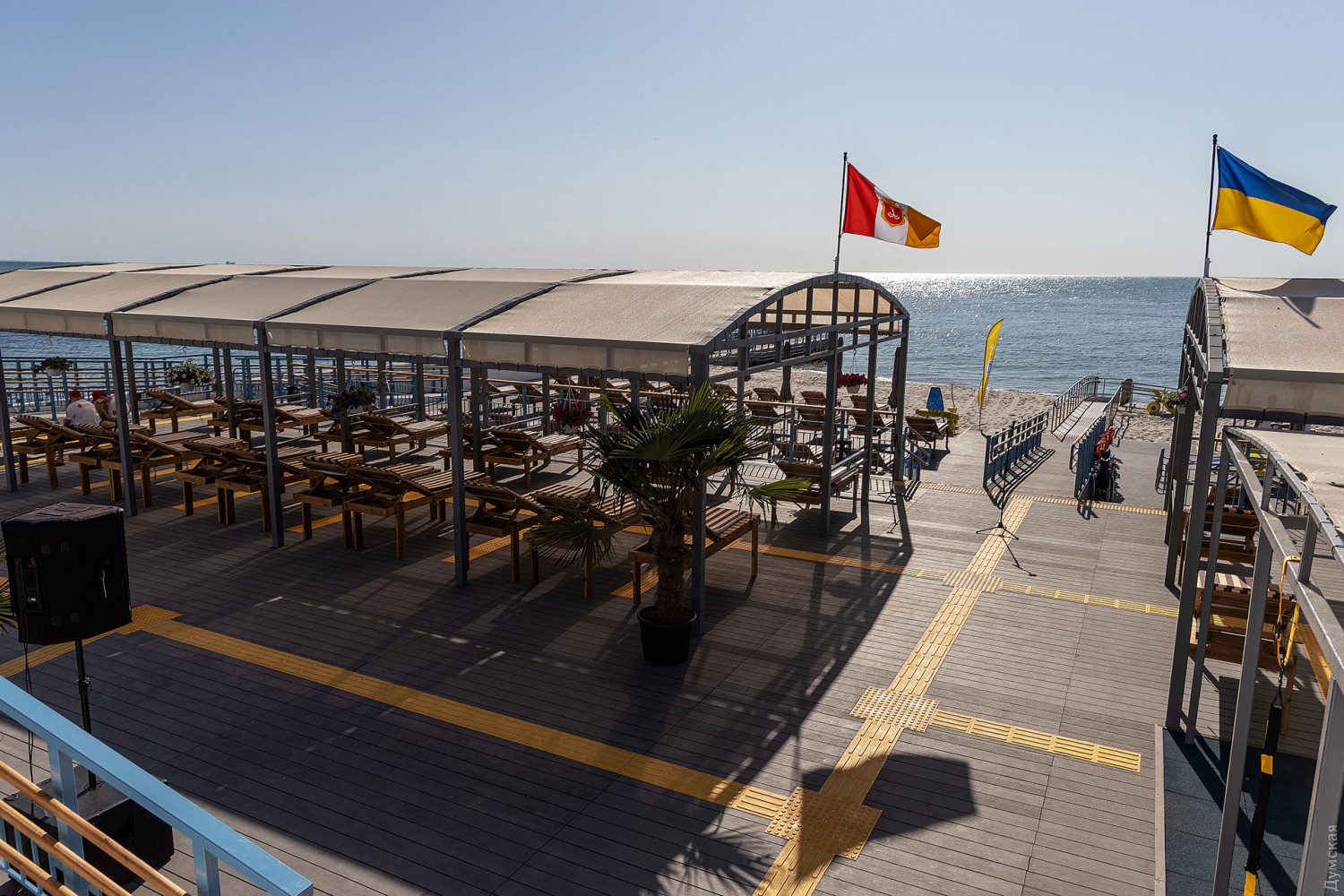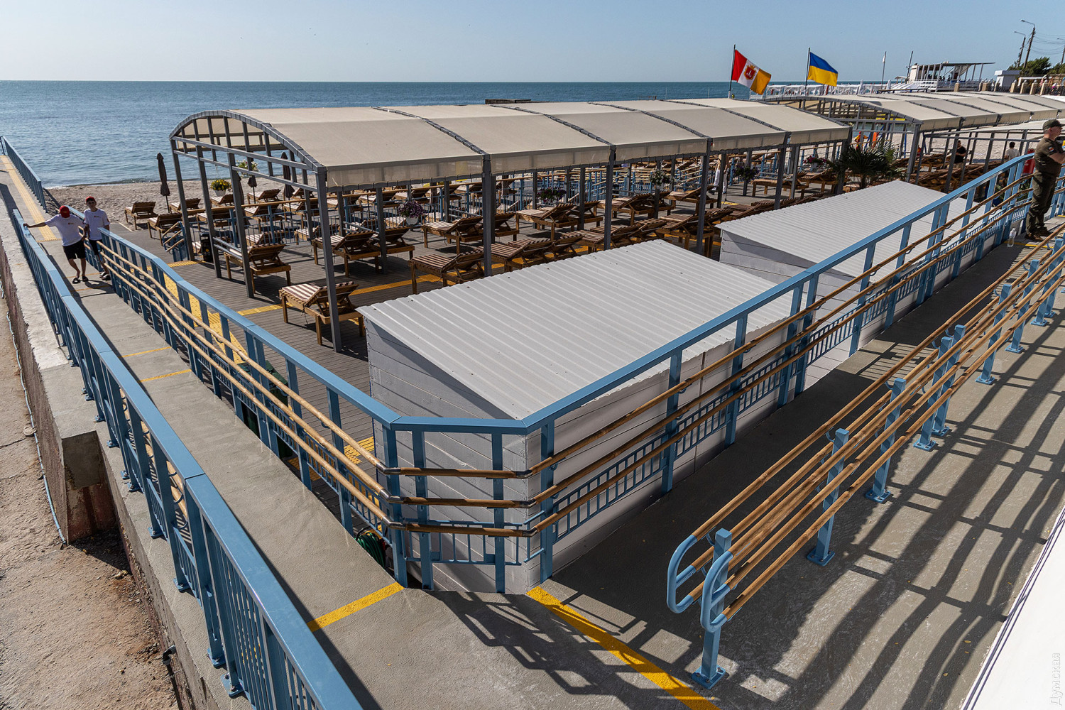 Тут повністю оновлено покриття, встановлено пандуси, включно з виходами просто в море, душові та туалети, обладнано медичний пункт і спортивний майданчик зі спеціальними тренажерами, чергує рятувальна служба. Для безпеки передбачено цілодобову охорону й одне з найбільших укриттів на узбережжі, здатне вмістити 50 осіб і обладнане примусовою вентиляцією.
