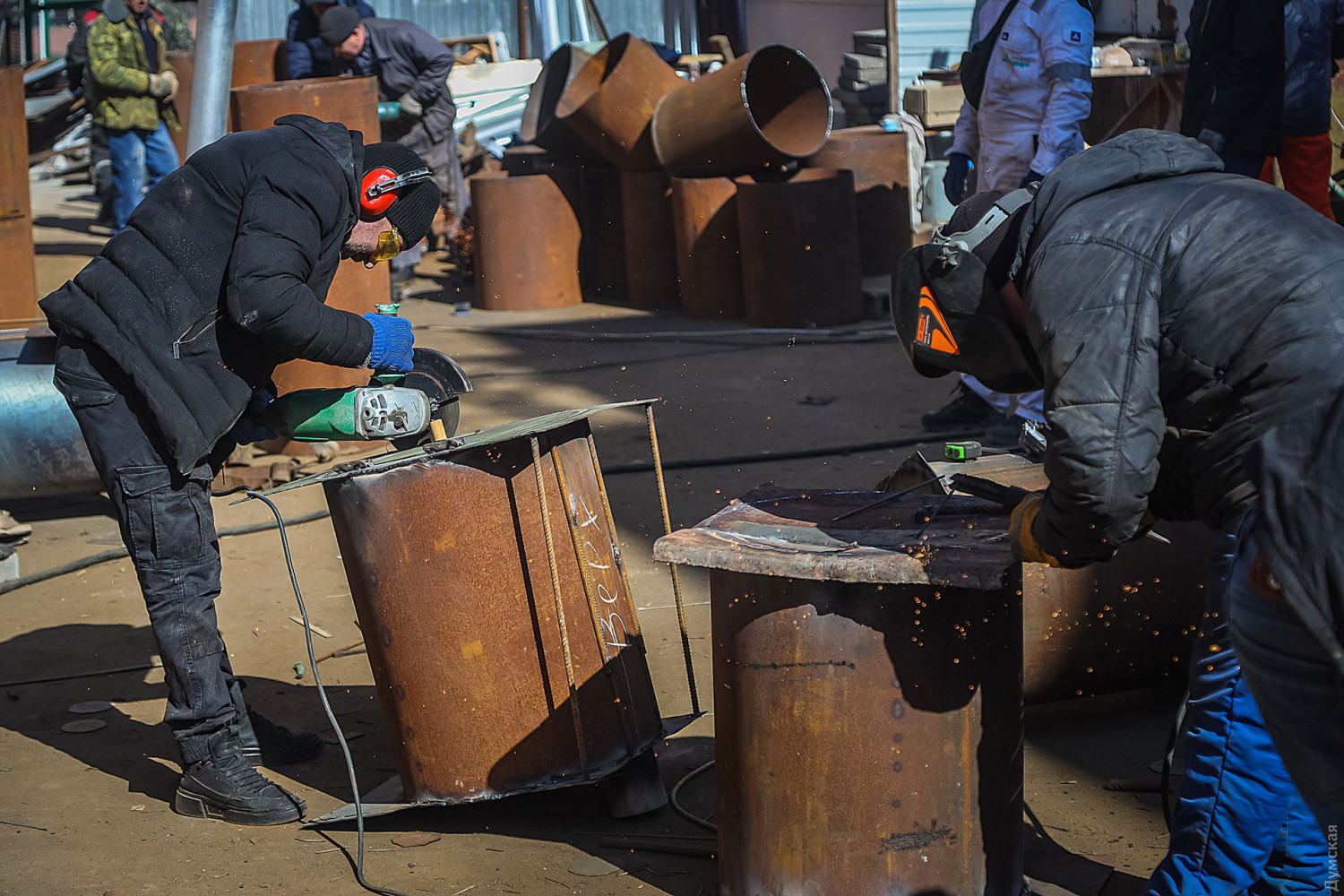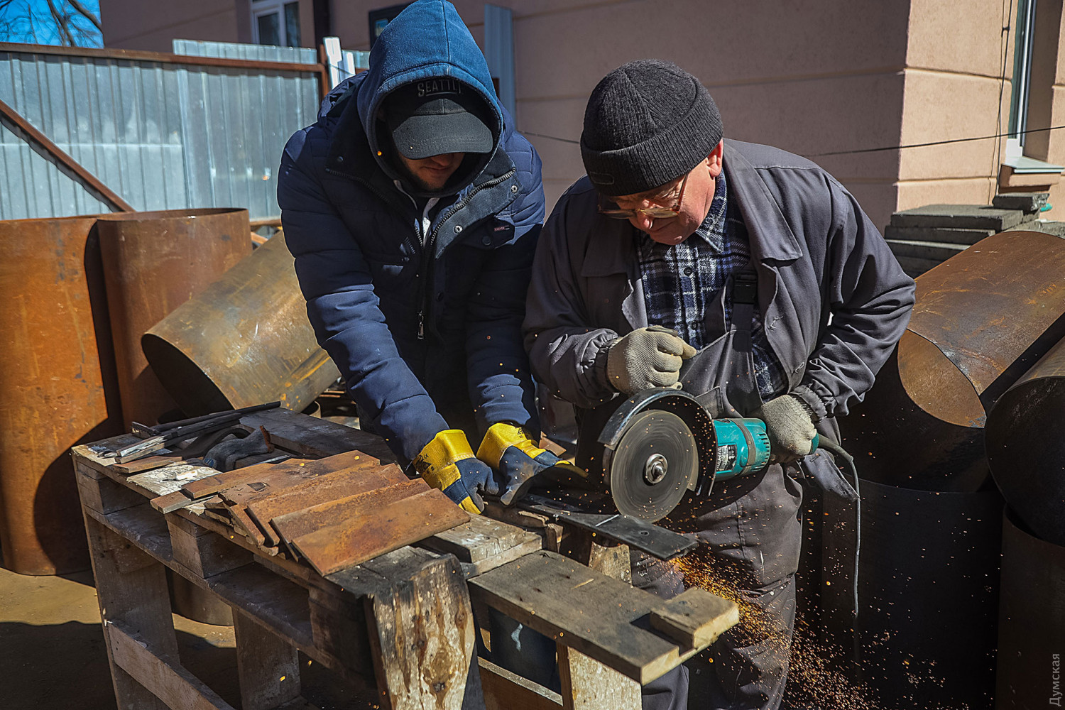 Буржуйки из труб, бронепластины из рессор и дизайнерские плитоноски: как одесситы нашу победу в тылу куют и шьютОдесситы сражаются не только на передовой. С 24-го февраля, когда первые российские ракеты были сбиты нашими доблестными ПВО, горожане организовались, чтобы помочь своим защитникам. На городских пляжах теперь не отдыхают, а собирают песок в мешки, чтобы укрепить блокпосты на въездах в город. Рестораны не ждут клиентов на романтический ужин, а заготавливают комплексные обеды для военнослужащих. Кто-то собирает гуманитарную помощь и доставляет ее нуждающимся, кто-то бесплатно перевозит женщин и детей к пунктам пропуска на границе. Каждый на своем месте делает, что должен. Журналисты «Думской» пообщались с некоторыми из волонтеров. Небольшая, закрытая от посторонних глаз территория на Ближних Мельницах. Работа кипит. Диски турбинок высекают искры из металлических заготовок, сгорающие электроды вспыхивают ослепляющим белым светом, гул, скрежет, звон. Здесь, под открытым небом команда волонтеров собирает изделия, столь необходимые для города, готовящегося к обороне: противотанковые ежи, буржуйки, полевые кухни и, с недавних пор - пластины для бронежилетов. «С первого дня войны мы начинали с собирания блоков, — рассказывает один из организаторов волонтерского движения Александр Сайчук. — У меня есть машина с краном, нас было пять человек, и мы собирали блоки и отвозили их на укрепление блокпостов. Потом перешли на производство, город выделил нам территорию, горожане помогают материалами, расходниками. Теперь у нас пять точек по городу, где работает почти 100 человек». За прошедшие две недели волонтеры сделали и отгрузили больше ста буржуек и продолжают их собирать. «Волонтеры, военные — всем, кому надо, мы всем отдаем, и спрос уже начинает снижаться, — рассказывает Александр. – Мы решили варить бронепластины. Опытным путем определили, что лучше всего для этого подходят автомобильные рессоры, толщина от 8 до 10 мм. Отстреляли — они держат и калибры 5,45 и 7,62 с десяти метров. Уже понимаем как двигаться, дня два-три, и мы начнем отгружать пластины для комплектации». Следующие наши герои работают, или даже лучше сказать творят, на Большой Арнаутской. Еще две недели назад сюда приезжали модницы со всей Одессы, чтобы заказать платье, пиджак или пальто от известного одесского дизайнера Виталия Узуна. Сейчас здесь организован цех по пошиву плитоносок. «Идея родилась еще 25-го числа, — рассказывает модельер. – Я проснулся после обстрелов и твердо решил, что нужно быть полезным. 26-го мы уже запустились. Отшили партию одежды для пограничников, потом быстро сделали партию желтых повязок (сейчас украинские защитники сменили цвет на синий – Ред.) и перешли на броненосители». Кутюрье признается, что перейти с индивидуального пошива на массовый, с легких платьев свободного кроя, на строгий военный функционал оказалось проще, чем казалось. «Это стрессовое состояние, и в нем ты очень быстро активизируешься, — рассказывает Виталий. – Нам помогли военные, рассказали, что им подходит технически, что удобно, что нет. Потом я подогнал анатомически, чтобы они сидели как влитые на любом человеке». Сейчас ателье отшивает уже вторую модель. У нее увеличенный объем разгрузок – в передние карманы вмещается сразу шесть рожков от автомата, на задней части