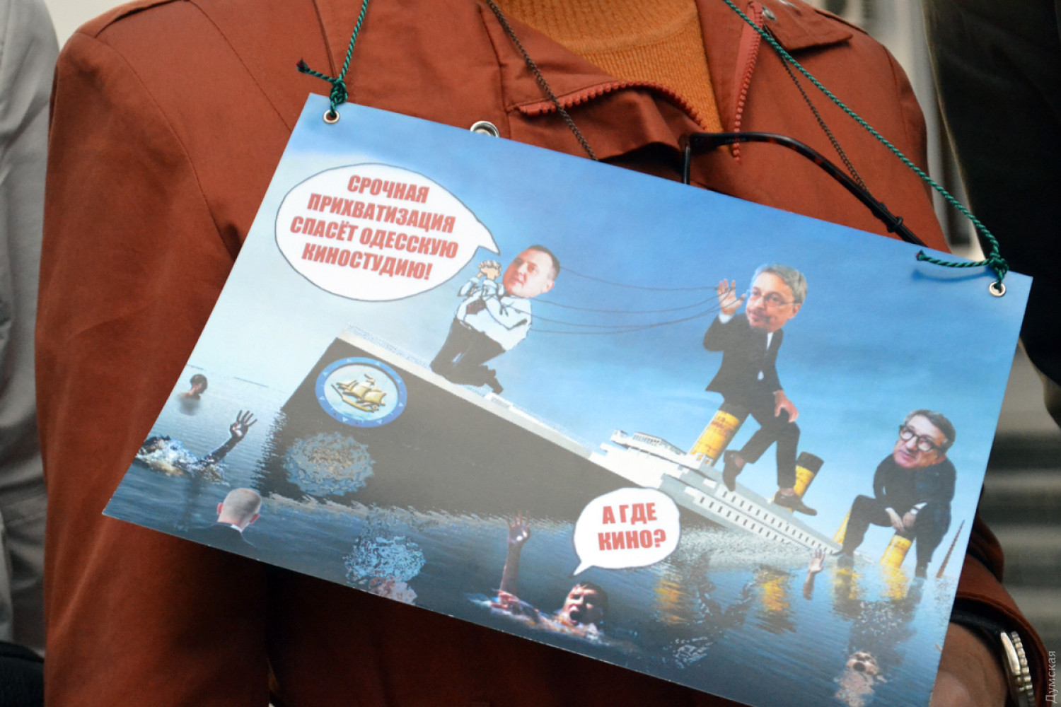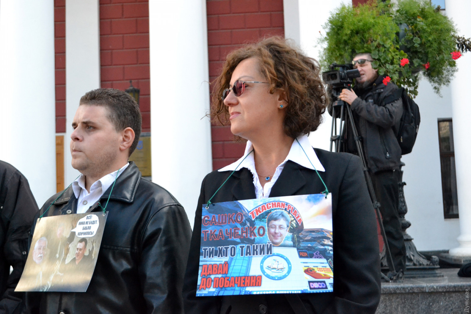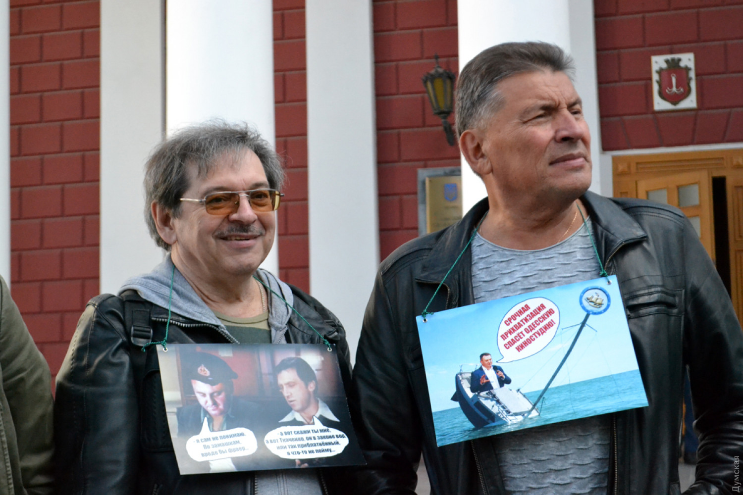 «Мы протестуем против того, чтобы киностудию отдавали людям, которые за 13 лет не сделали ничего, — заявила бывший редактор художественных фильмов киностудии Елена Марценюк. — Надоело, что Киев решает наши проблемы бандитским путем. Господин Ткаченко (гендиректор группы компаний «1+1», владеющий 50% без одной акции киностудии), мы вас в Одессе не ждем!». При этом протестующие не против приватизации как таковой. Им не нравится конкретно Ткаченко, являющийся партнером бизнесмена Игоря Коломойского. «После того, как часть акций продали им, на киностудии не снимают фильмов, ее уничтожили, открыли музеи и все время теребят память тем, что мы делали, но мы там не нужны, мы там персоны нон грата! Мы безработные, мы голодаем, потому что пенсии у нас маленькие и наш талант, наш кураж, наш опыт там не нужен, но и музеи там не нужны. Это ретрокладбище. Поэтому мы просим городскую власть, громаду взять себе 50% этих акций, а не отдавать их киевлянам», — пояснила Марценюк. Участники пикета заявили, что после того, как группа «1+1» окончательно завладеет киностудией, ее ждет ликвидация и застройка территории высотками. Отметим, что, по данным СМИ, часть земельного участка предприятия на Французском бульваре, действительно, хотят застроить. И сделает это не кто иной, как экс-глава администрации президента, кум Путина Виктор Медведчук: якобы он согласился финансировать модернизацию киностудии в обмен на часть ее земли.