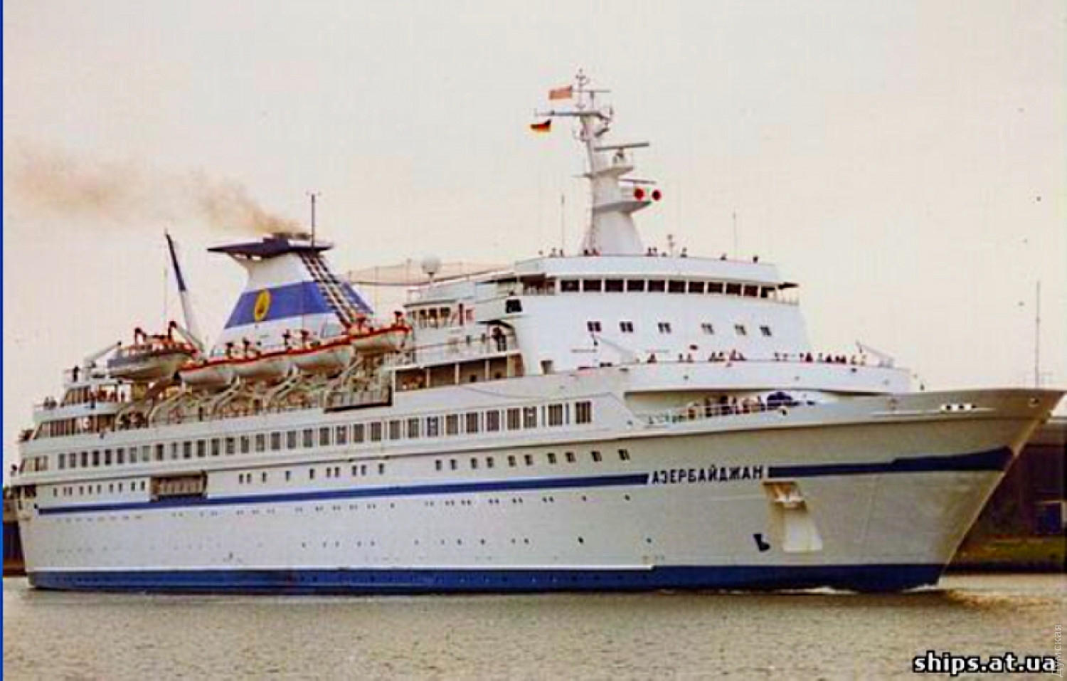 Это бывший советский круизный лайнер «Азербайджан», работавший в Черноморском морском пароходстве с 1975 по 1996 год. Тогда его портом приписки была Одесса.
