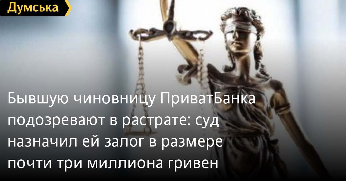 Бывшую чиновницу ПриватБанка подозревают в растрате: суд назначил ей залог в размере почти три миллиона гривенВысший антикоррупционный суд определил меру пресечения в виде 2,74 млн грн залога для бывшей начальницы департамента поддержки межбанковских операций казначейства ПриватБанка Надежды Конопкиной. Такое решение сегодня принял следственный судья ВАКС. Отмечается, что экс-чиновницу Национальное антикоррупционное бюро и Специализированная антикоррупционная прокуратура подозревают вместе с другими лицами в растрате средств на сумму более 136 млн грн. Подозреваемая также обязана являться по каждому требованию к следователю, детектива или суда; не оставлять Днепропетровскую область без разрешения и воздержаться от общения с лицами, указанными в постановлении, а также сдать на хранение в соответствующие органы паспорт и другие документы, которые дают право на выезд за пределы Украины. Срок действия возложенных обязанностей – до 25 мая 2021 включительно. Напомним, 22 февраля 2021 года по просьбе НАБУ посадили частный самолет, на котором бывший топ-менеджер «ПриватБанка» пытался улететь в Вену. На борту был один из бывших топ-менеджеров – Владимир Яценко, которого называют правой рукой Александра Дубилета и личным банкиром экс-владельца банка Игоря Коломойского. 25 февраля Яценко вышел под залог в размере 52,2 млн грн, а 12 марта суд арестовал $3 млн на счетах Яценко. СМЕРТЬ РОССИЙСКИМ ОККУПАНТАМ! Заметили ошибку? Выделяйте слова с ошибкой и нажимайте control-enter |