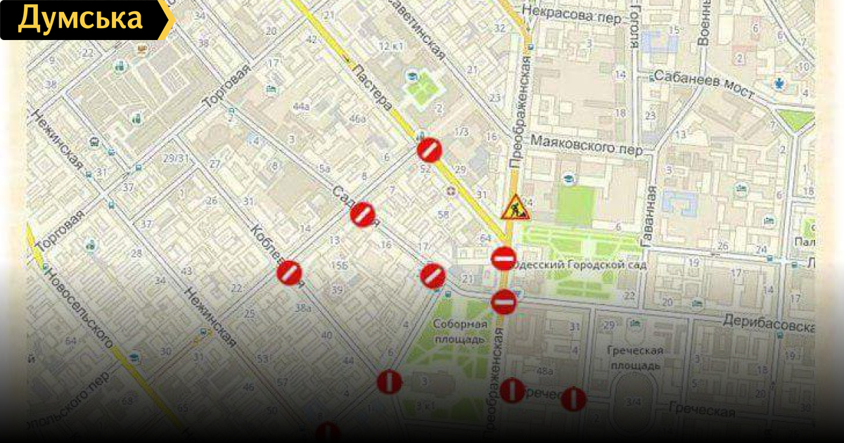 Часть центральных улиц Одессы в районе Соборной площади и Куликова поля перекрыта в связи с массовыми мероприятиями, посвященными четвертой годовщине трагедии 2 мая 2014 года.