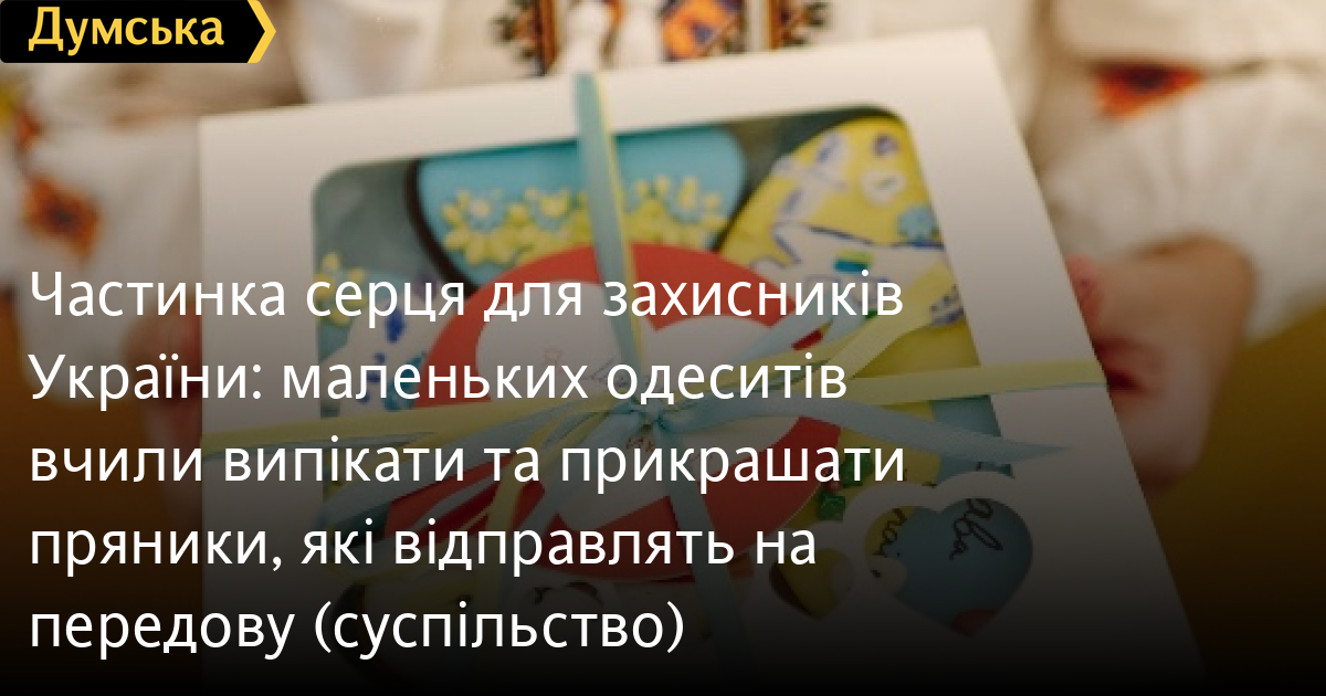 Частинка серця для захисників України: маленьких одеситів вчили випікати та прикрашати пряники, які відправлять на передову (суспільство)Смачний і корисний майстер-клас із випікання пряників для найменших одеситів пройшов у минулі вихідні в теплій і душевній атмосфері ресторану «Дача», що на Французькому бульварі. Організаторами кулінарного свята виступили Учасники майстер-класу, наймолодшій з яких ледь виповнилося три рочки, вчилися вирізати з тіста спеціальними формочками пряники у вигляді сердець і мапи України, щоб потім, після запікання, розфарбувати їх спеціальними кондитерськими фломастерами. Малюки малювали українських військових, державний прапор, а символами мирного життя стали малюнки з веселками, соковитою зеленою травою і блакитним чистим небом. На кожному з пряників учасники майстер-класу залишили послання для захисників, які відбивають атаки ворога на фронті: «Ми за мир!», «Вірю в ЗСУ!», «Ви - найкращі, дякую!» та «Слава Україні!». За словами ініціаторки благодійного майстер-класу, керівника «Travellizy» Тетяни Бовкун, захід має на меті виховати у дітях людяність та подячність нашим захисникам. Через творчість та творчу працю всі учасники майстер-класу продемонстрували челендж серцевої доброти, тепла та подяки. Кожна дитина за допомогою дорослих виготовила своїми руками солодощі, які потім через місцеві благодійні фонди отримали наші воїни. «У цей складний час усім нам необхідно залишатися чесними, справедливими та відповідальними громадянами, – упевнена Тетяна. – Цим майстер-класом ми хотіли не тільки донести підростаючому поколінню про необхідність залишатися людяним перед трагедією та несправедливістю, а й дати потужний імпульс іншим людям допомагати більше і від щирого серця тим, хто цього потребує». На дитячій локації малеча веселилася під українську музику та із задоволенням підспівувала вже знамениту на весь світ композицію «Ой, у лузі червона калина» у виконанні Андрія Хливнюка. Як заохочення кожен з учасників майстер-класу отримав спеціальний значок з написом «Такий (така) маленький, а вже - волонтер». Помітили помилку? Виділяйте слова з помилкою та натискайте control-enter |