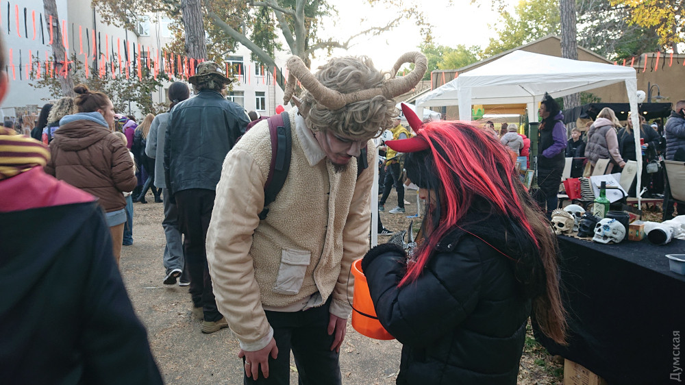— У меня была английская школа с детства, я праздновала Хэллоуин, — буквально врывается в нашу беседу девушка с рожками. — Может, всю нашу жизнь будет война! И один день в году я хочу надеть дебильный костюм и в нем погулять. И все.