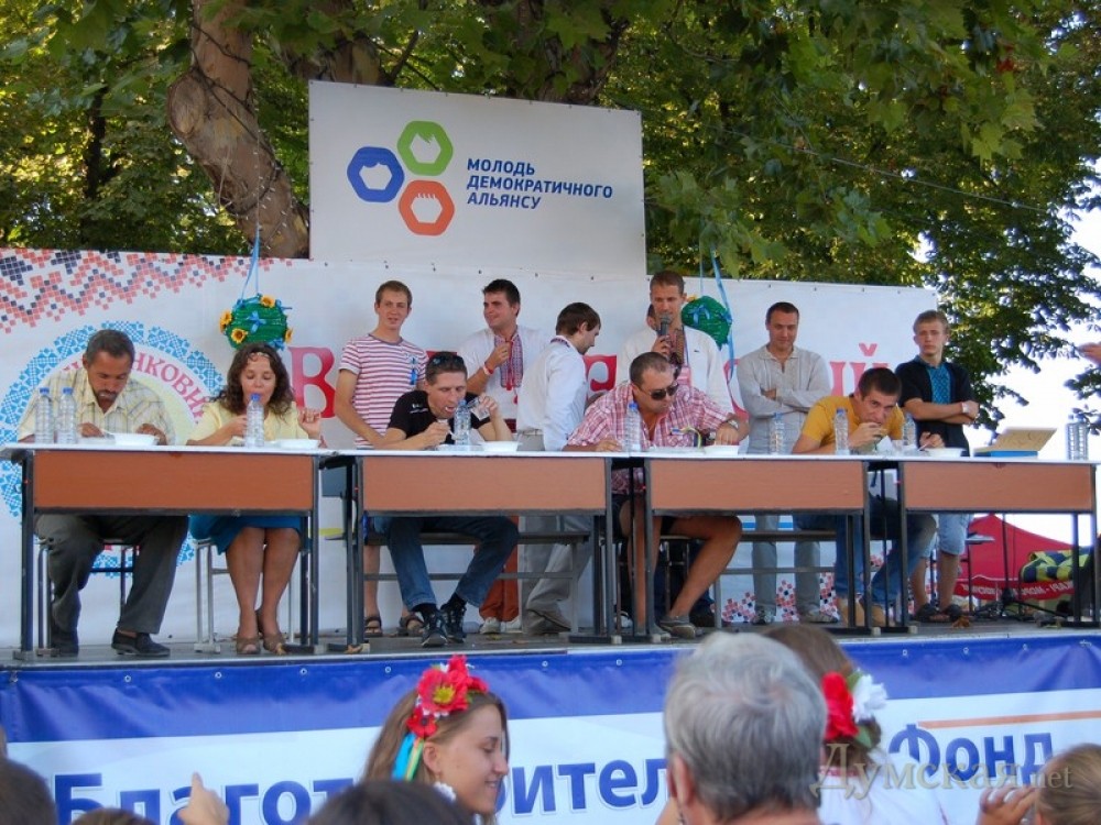 Зважені та щасливі Чемпионат по скоростному поеданию вареников: руки победили ложкуСегодня на Приморском бульваре Одессы в рамках «Вышиванкового Фестиваля» прошел открытый чемпионат по скоростному поеданию вареников (с картошкой). В соревновании изъявили желание участвовать более сорока спортсменов, среди которых были не только мужчины в полном расцвете сил, но также женщины, старики и дети. Жребий определил десять участников, которым в первом туре предстояло съесть на скорость по пятьдесят вареников. Для детей была организована облегченная программа: по десять вареников и без зачета времени. Отметим, что подобные соревнования имеют важное воспитательное значение. Так, на сегодняшнем турнире многие мамы и папы говорили своим маленьким детям: «Вот видишь, как дядя быстро кушает?» В первом раунде уверенно победил прошлогодний чемпион Константин Максимишин. Он умял полсотни вареников за 2 минуты и 21 секунду (средняя скорость прохождения дистанции — 0,355 вар/сек) и опередил других участников более чем вдвое. Во втором раунде борьба была более напряженной. Победитель вареничного турнира 2010 года Дмитрий Король показал результат 2 минуты 24 секунды (0,347 вар/сек), опередив ближайшего соперника на финишной прямой всего на четыре секунды. Таким образом, судьба первого места в первенстве 2013 года решалась в дуэли двух чемпионов, дистанция составляла 20 вареников. В преддверии финала корреспондент «Думской» пообщался с участниками соревнований. На вопрос, какой размер допинга под вареники они предпочитают (сто, сто пятьдесят или сразу чекушку), финалисты ответили, что допингом не балуются и вообще не пьют, а ведут здоровый образ жизни, что, видимо, и позволяет им достигать столь высоких результатов. В тренировочном цикле важно не перетренироваться перед соревнованиями, поэтому они специально с утра ничего не ели. Оба спортсмена предпочитают вареники со сметаной. По их словам, предстоящий финал станет борьбой двух традиционных техник: Константин уминает вареники руками, а Дмитрий наворачивает их ложкой. И вот наконец финал, и первым финиширует Максимишин, развивший феноменальную скорость 0,56 вар/сек и показавший выдающееся для второго этапа время 36 секунд. Король проигрывает, но не отказывает себе в удовольствии доесть остаток дистанции просто так. Победу чемпион посвятил своей любимой супруге и по совместительству тренеру Жанне. Таким образом, Константин Максимишин становится двукратным чемпионом Одессы по поеданию вареников. На следующем «Вышиванковом Фестивале» он примет участие сразу в финальной части соревнования, минуя отборочные туры и жеребьевку. Кто бросит вызов титулованному чемпиону? Автор — Сергей Дибров, фото автора, видео Людмила Ямщикова СМЕРТЬ РОСІЙСЬКИМ ОКУПАНТАМ! ![]() Драматический момент: Дмитрий Король на последних секундах вырвал (справа, с ложкой) победу в первом туре Помітили помилку? Виділяйте слова з помилкою та натискайте control-enter |