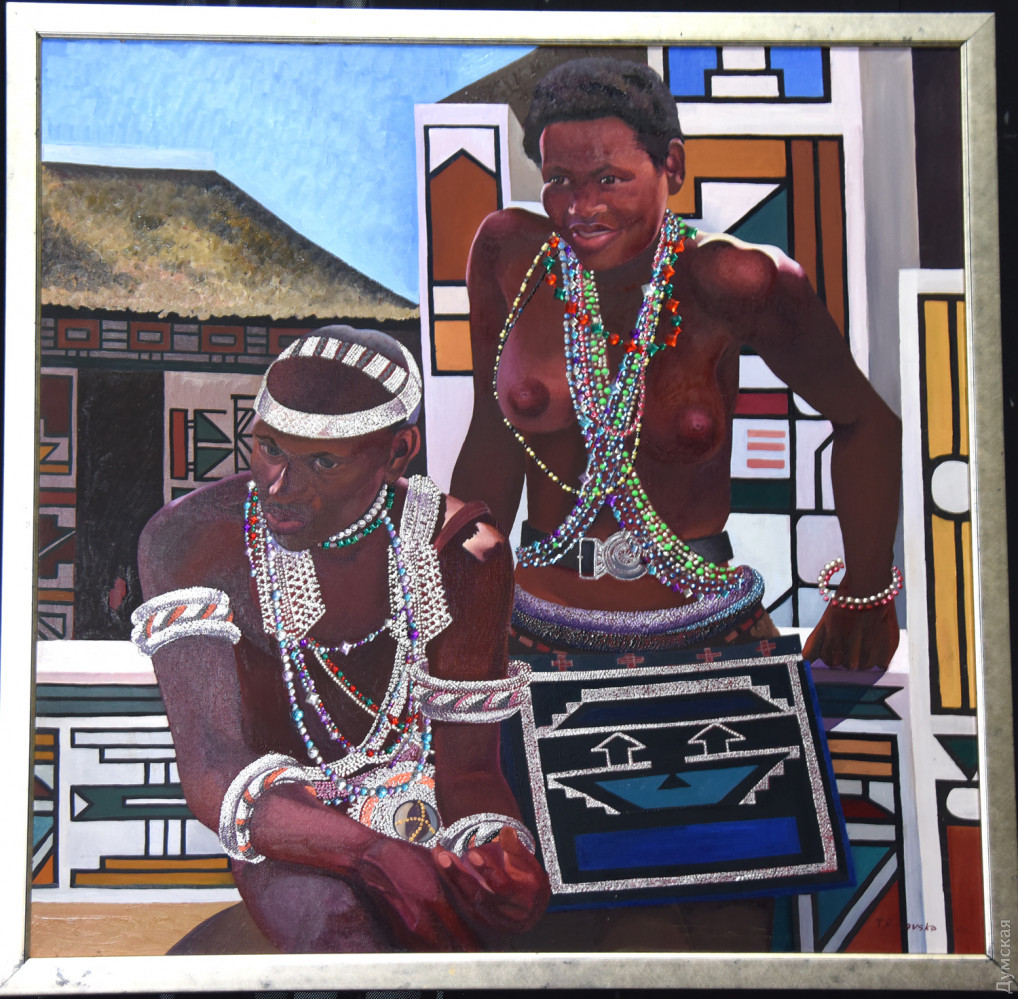 «Черное солнце, твой взор меня жжет, белые женщины – стужа и лед…» Одесситам показали «Маму Африку»Выставка под названием «Мама Африка» до 24 октября работает в Музее западного и восточного искусства (Пушкинская, 9). Проект проводится под патронатом почетного консульства Южно-Африканской Республики в Украине и посвящен 25-летию прекращения апартеида и проведения первых всех общих выборов в этой стране. Одесские художницы Татьяна Биновская, Алла Шляхова, Наталья Жура, Жанна Балабан, Екатерина Шадрина и Анна Ли написали в общей сложности больше 30 картин, как говорится, на заданную тему. Только Татьяна Биновская, вот уже 10 лет проживающая в ЮАР, в материале, остальные знают пустыню Намиб, пещеры плато Тассилин-Адджер и саванну Калахари только по документальному кино и стихами Чуковского из «Доктора Айболита»: «Мы живем на Занзибаре, в Калахари и Сахаре, на горе Фернандо- По, где гуляет Гиппопо, по широкой Лимпопо!». И мечтают, конечно, все это увидеть собственными глазами. Все-таки, как говорят знающие люди, колыбель человечества была на этом континенте, стало быть, Африка нам и вправду мама. «Обратите внимание, африканцев среди нас нет, одни «африканки», — заметил, открывая выставку, старший научный сотрудник музея Сергей Ильин. – Это и понятно, ведь женщины более чувственны. Эмоциональны. Татьяна Биновская пишет с натуры и живет в ауре Южной Африки, для остальных Африка – плод воображения, некое представление, мечта, фантазия об Африке. Консул ЮАР Лариса Поплавская организовала эту выставку, было бы желательно привезти в Одессу и какое-то количество африканских художников. И тогда мог бы возникнуть, как говорят джазмены, своеобразный джем-сейш между ними и нашими авторами. Наш музей – единственный в городе, который откликается на подобные выставки по роду деятельности, ведь он и западный, и восточный, и северный, и южный…» Татьяна Биновская не только воспела Африку и ее женщин (такие горячие красотки наверняка никогда не скажут мужу: «Я занята, у меня дела!»), но и соединила африканских животных с одесскими улицами. Вот как жирафы танцуют свой танец любви рядом с оперным театром»! Алла Шляхова для нынешней выставки представила разнообразные работы, в том числе и черно-красные акриловые полуабстракции, которые сама называет формулами страсти. «Искусство Африки не стремится полностью передать то, что видит глаз, оно обрисовывает лишь силуэт, — говорит Алла. — Африканская культура развивалась очень замкнуто, шла своим путем. С европейской она встретилась только в начале XX века, что оказало сильное влияние на развитие как раз европейского искусства». На выставке представлены и детские работы учеников художественной школы Аллы Шляховой с изображениями экзотических зверушек и пейзажей. Особую тему раскрыла Анна Ли, изобразив двух девушек из племени зулусов на фоне традиционных орнаментов племени. Оказывается, в этой системе треугольники обозначают невинность и чистоту, а надевая то или иное украшение, девушка передает парню определенную информацию. Советуем зрителям не упустить возможности получить некую (сугубо положительную!) информацию от выставки в целом и от каждого полотна в частности. Автор — Ирэн Адлер, фото Александра Синельникова СМЕРТЬ РОСІЙСЬКИМ ОКУПАНТАМ! Помітили помилку? Виділяйте слова з помилкою та натискайт