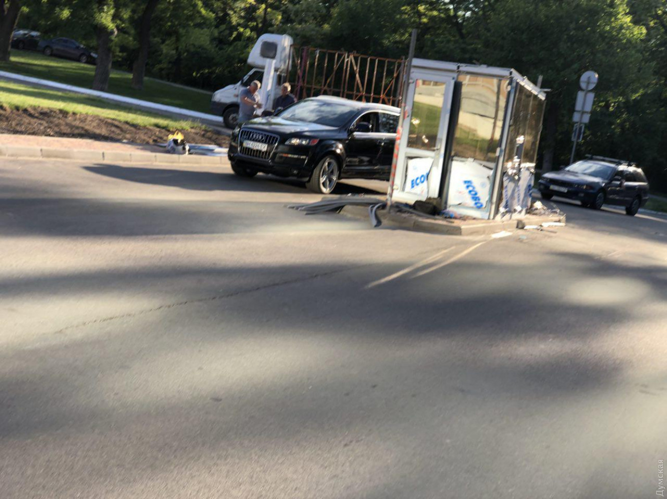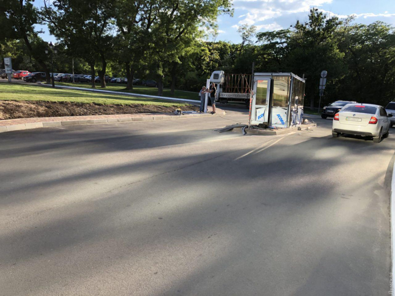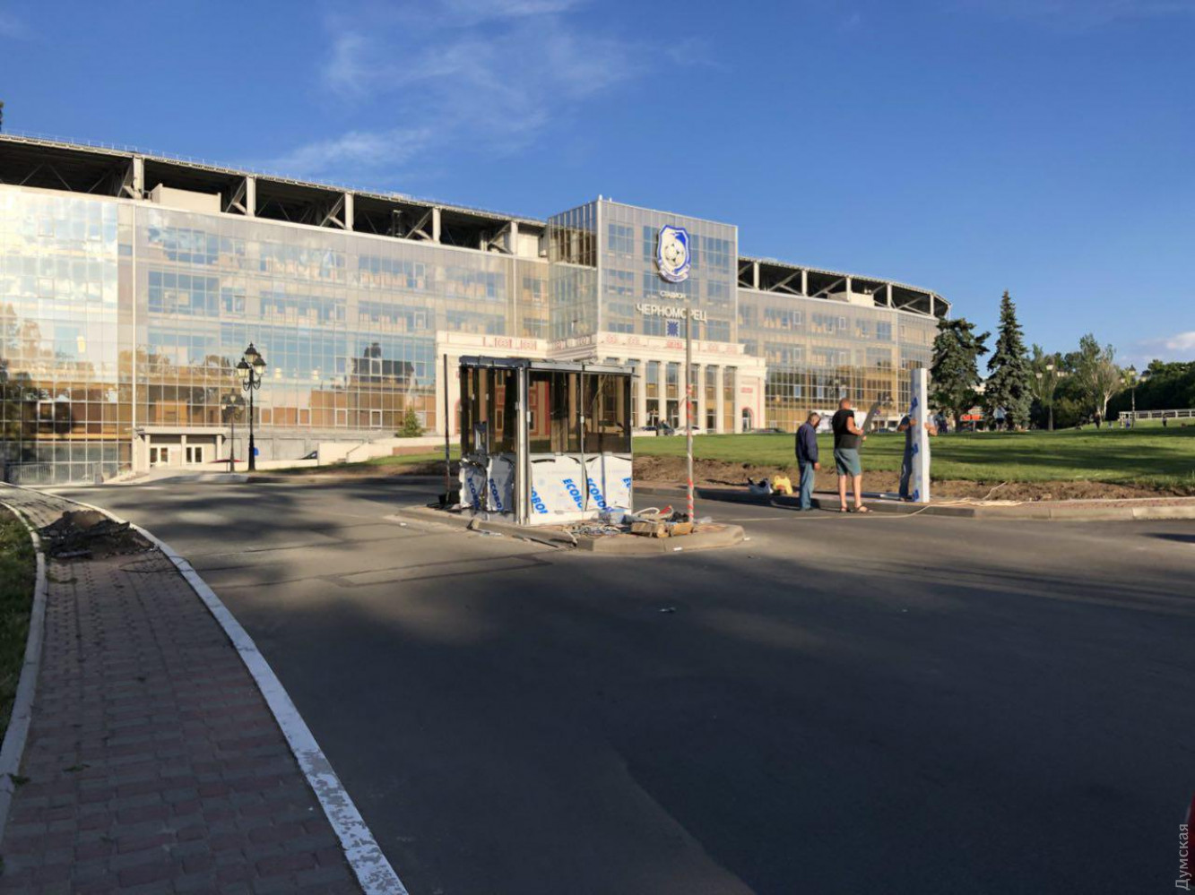 На подъезде к стадиону «Черноморец» в парке Шевченко, который также является гостиницей и бизнес-центром, устанавливают шлагбаум и будку.