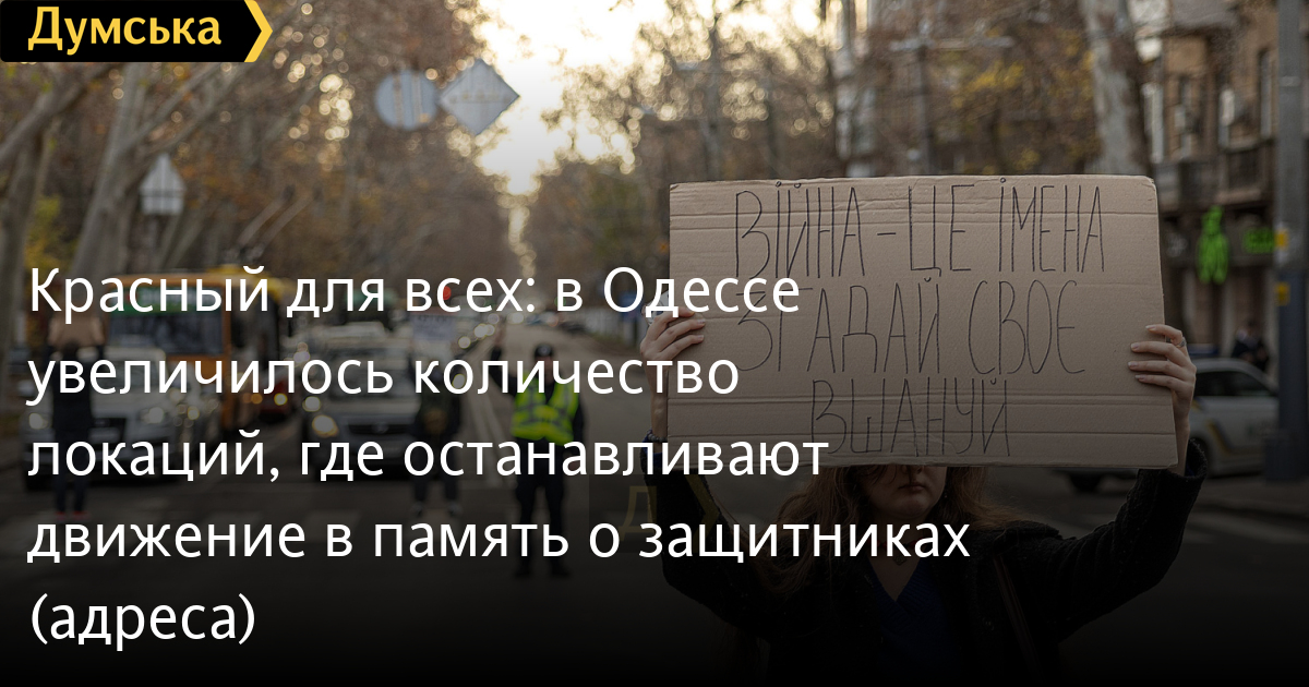 Красный для всех: в Одессе увеличилось количество локаций, где останавливают движение в память о защитниках (адреса)Красный сигнал светофора во время проведения общенациональной минуты молчания включается уже на 13 перекрестках Одессы. Как сообщили в мэрии, ежедневно в 9:00 к восьми локациям, где уже был введен режим «красный для всех», добавилось еще пять. Таким образом, сейчас полностью останавливают движение на пересечении следующих улиц: В Киевском районе: • Люстдорфская дорога — ул. Сергея Шелухина; • Люстдорфская дорога — ул. Левитана; • Люстдорфская дорога — ул. Дмитриевская (4-я станция Люстдорфской дороги). В Пересыпском районе: • просп. Князя Владимира Великого — ул. Давида Ойстраха; • ул. Академика Заболотного — ул. Академика Сахарова; • ул. Академика Заболотного — ул. Жюлио Кюри. В Приморском районе: • просп. Шевченко — бульвар Леси Украинки; • просп. Шевченко — ул. Семинарская; • ул. Пантелеймоновская — ул. Европейская (Привокзальная площадь). В Хаджибейском районе: • ул. Богдана Хмельницкого — ул. Мясоедовская; • ул. Богдана Хмельницкого — ул. Степовая; • Тираспольское шоссе — ул. Проселочная; • ул. Инглези — ул. Ивана и Юрия Лип. Напомним, что с 26 ноября прошлого года ежедневно в 9 утра на отдельных перекрестках в Одессе начали включать красный светофор, чтобы почтить память погибших воинов. Такая же система введена во Львове, а в Кривом Роге, например, красный свет включается на всех 112 регулируемых перекрестках города. В Житомире и Виннице каждое утро экипажи патрульной полиции отправляются на самые загруженные перекрестки, чтобы «вручную» останавливать движение транспорта. В Киеве же жители подали петицию на сайте горсовета с просьбой ежедневно останавливать движение метро, но она не набрала достаточного количества голосов для рассмотрения. Местные власти при этом отметили, что организовать остановку всего транспорта вместе с метро в час пик — сверхсложная задача для такого большого города. СМЕРТЬ РОССИЙСКИМ ОККУПАНТАМ! Заметили ошибку? Выделяйте слова с ошибкой и нажимайте control-enter |