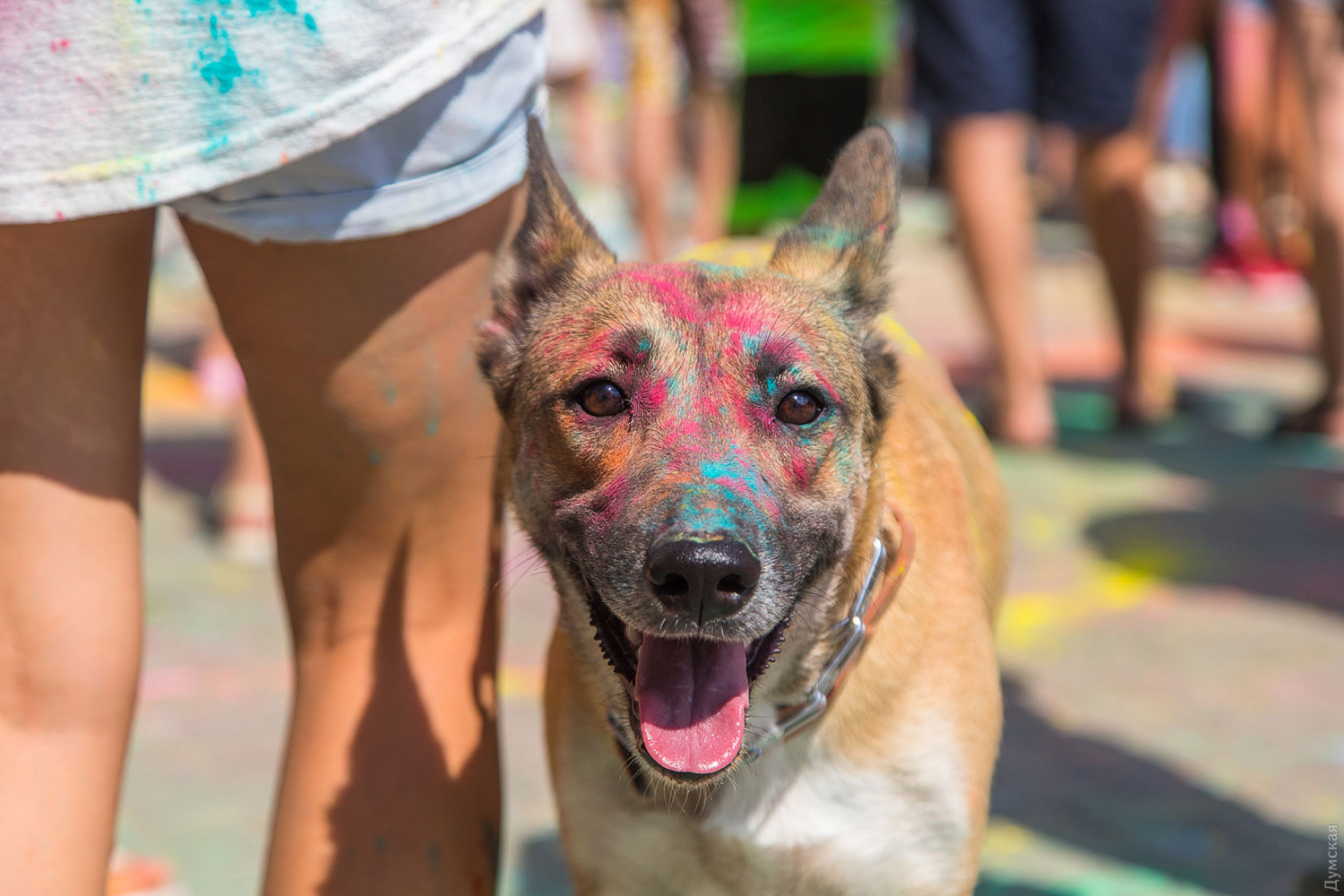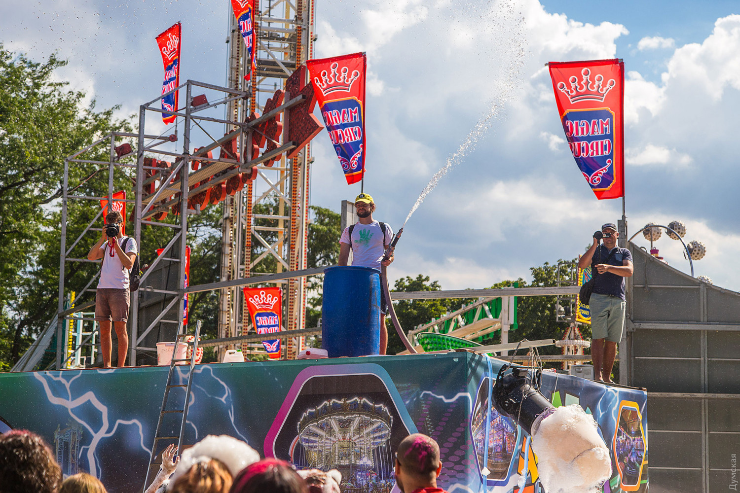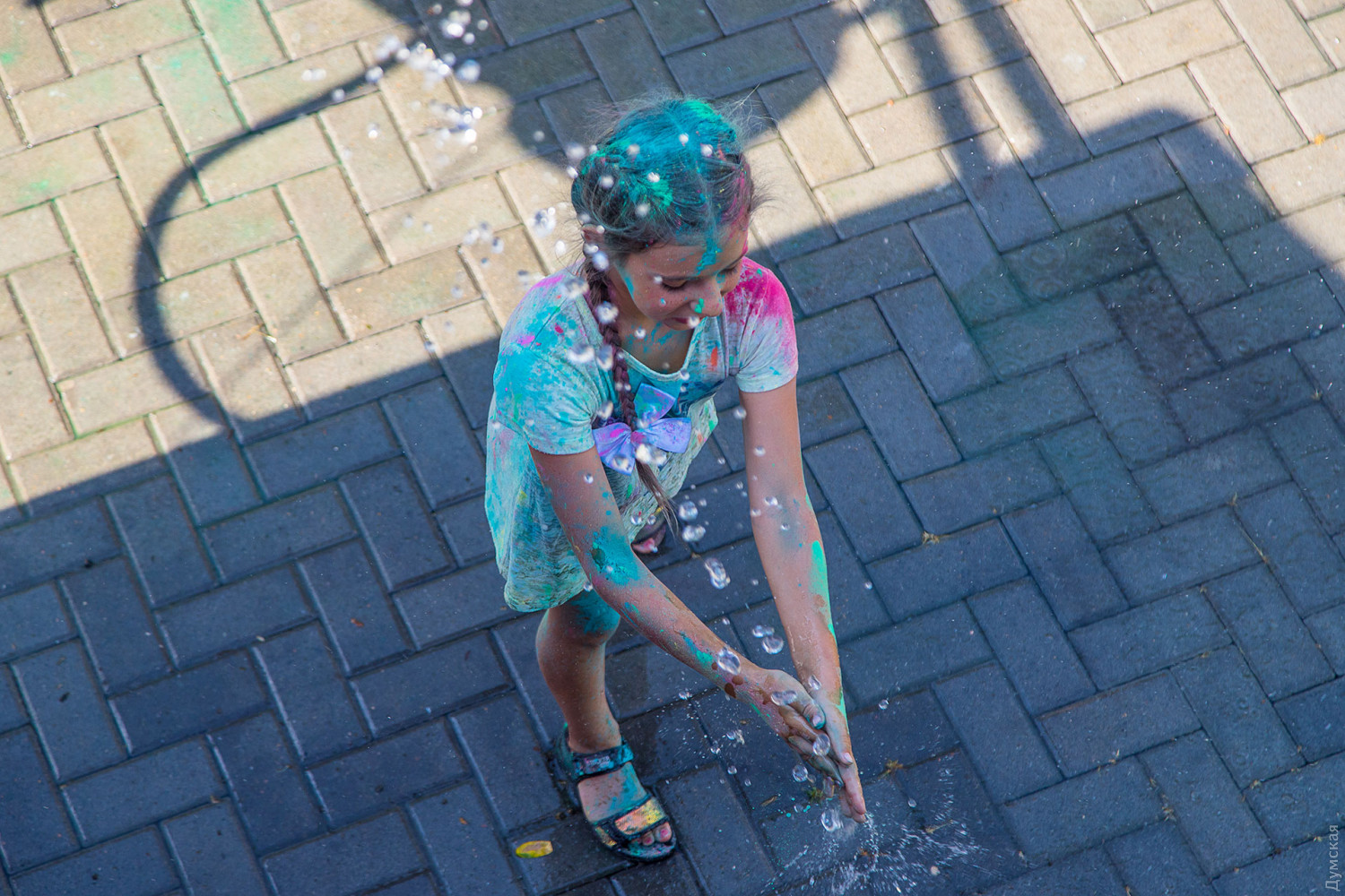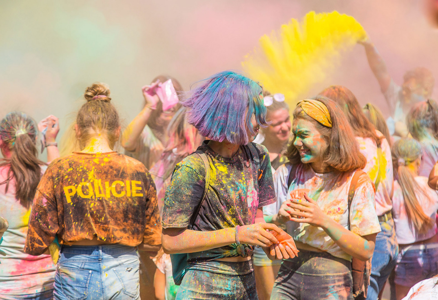 В самом начале мероприятия участников разделили на два условных лагеря, которые и схлестнулись по команде ведущего в красочном сражении. В конце мероприятия состоялась пенная вечеринка, а потом все желающие смогли смыть следы сражения и заодно охладиться. Для этого уже традиционно приехала машина одесских спасателей. Фото — Александр Гиманов