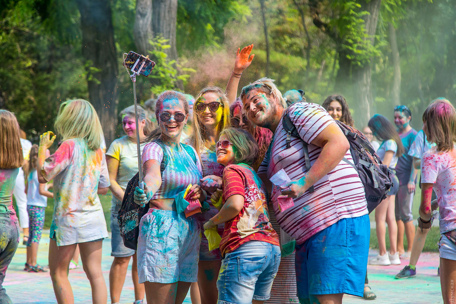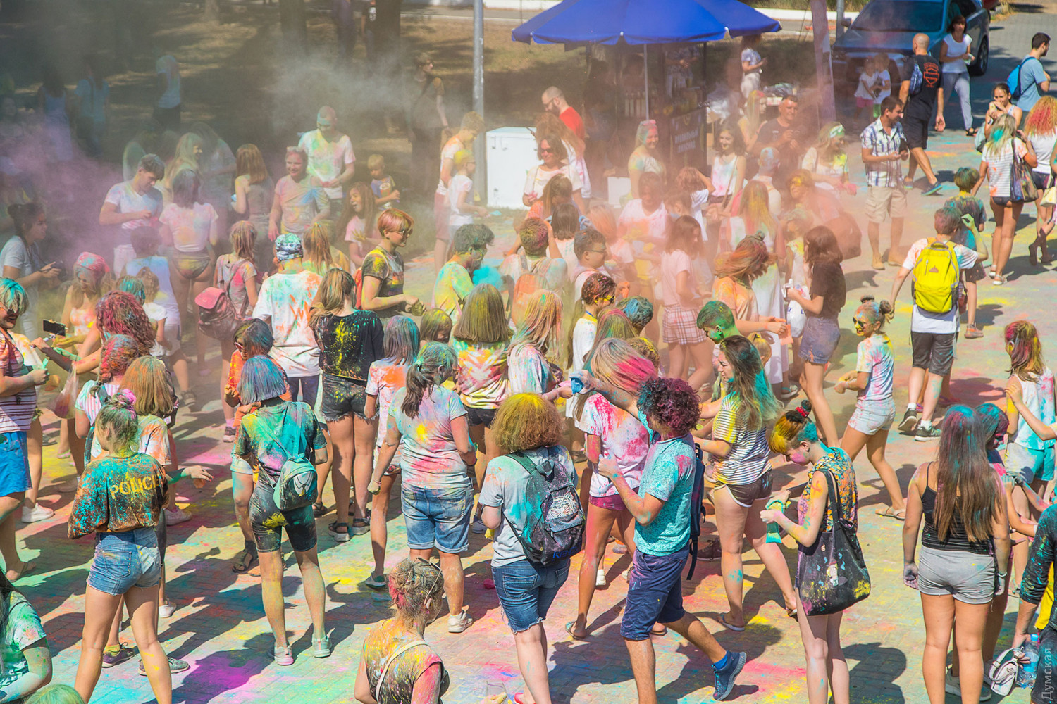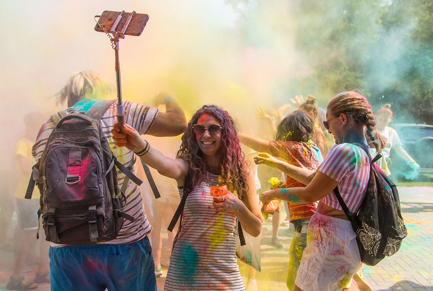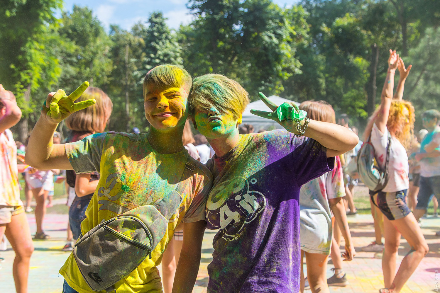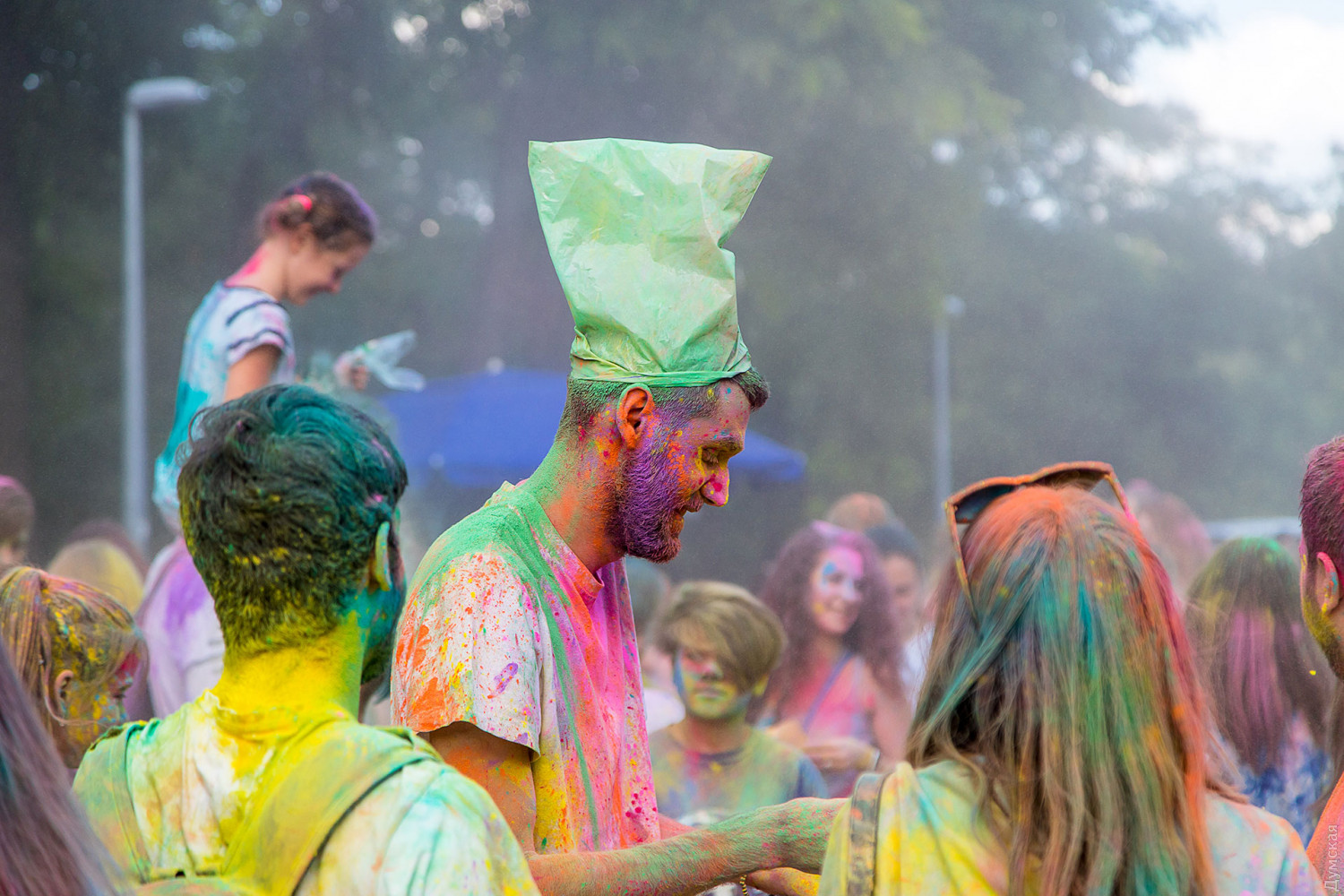 Четвертый одесский ColorFest прошел сегодня в парке Шевченко недалеко от Лунопарка. Участие в веселом и красочном мероприятии приняло около 200 человек. Молодые люди, заранее предупрежденные организаторами, приходили в белых вещах, которые не жалко было запачкать красками холи. Один пакетик цветного порошка стоил 50 гривен. При покупке нескольких действовала скидка.