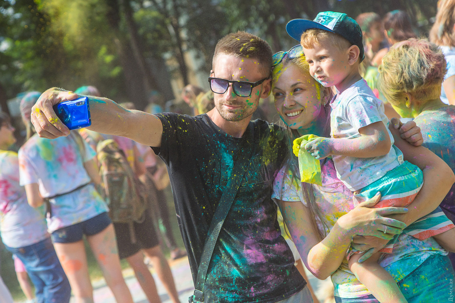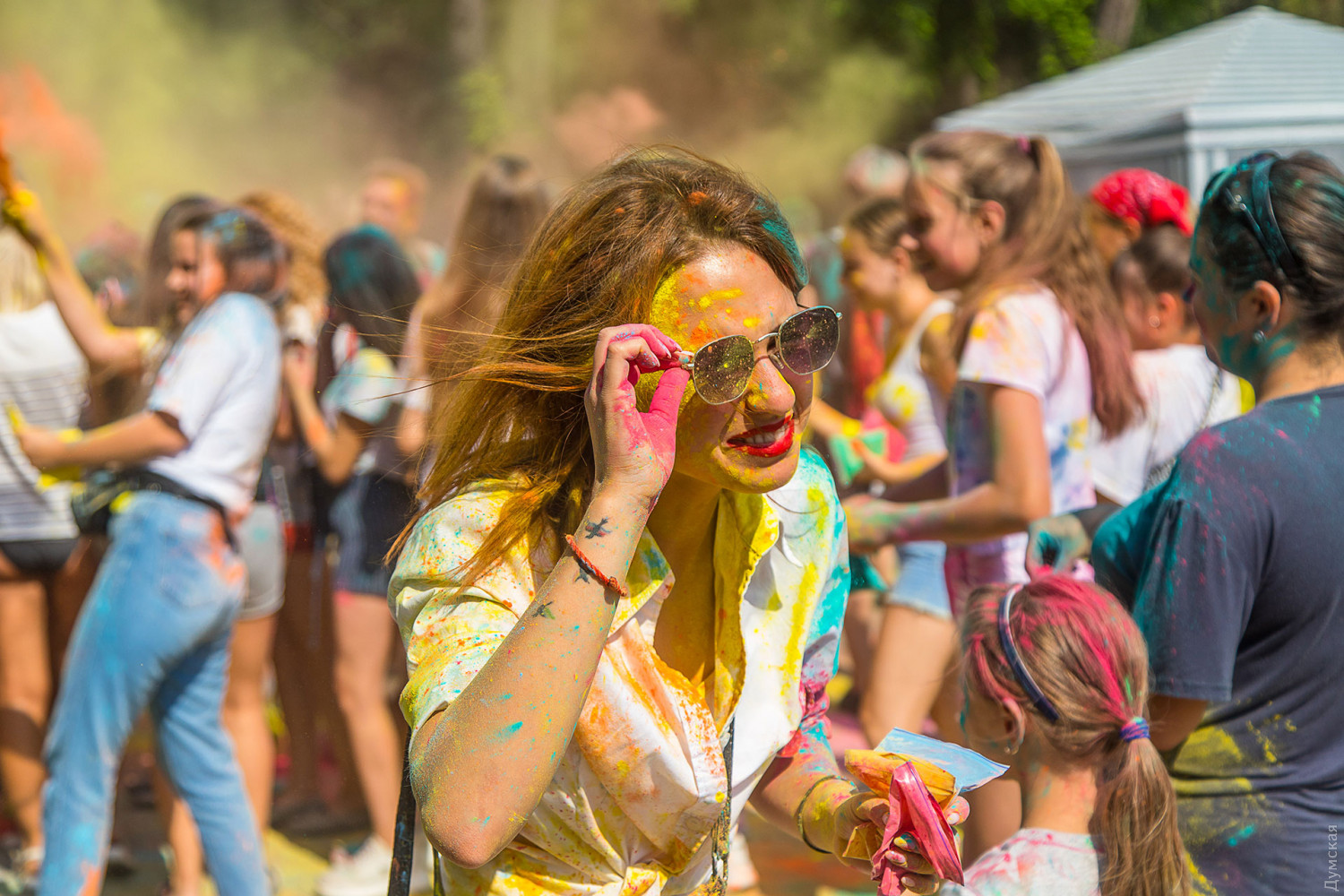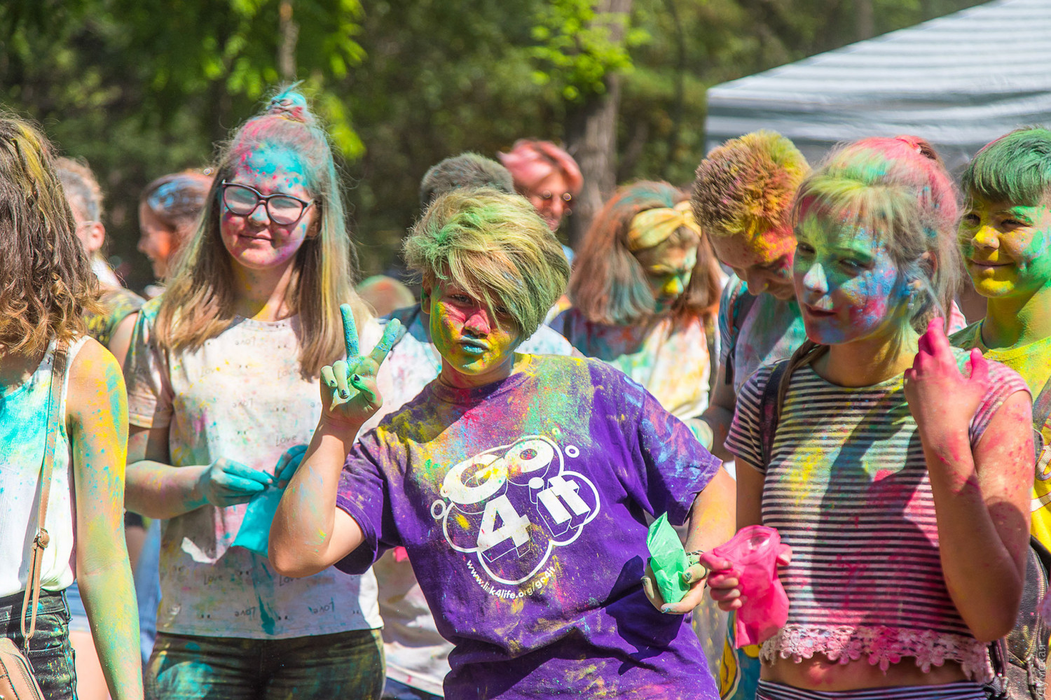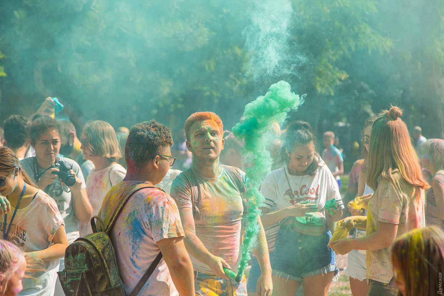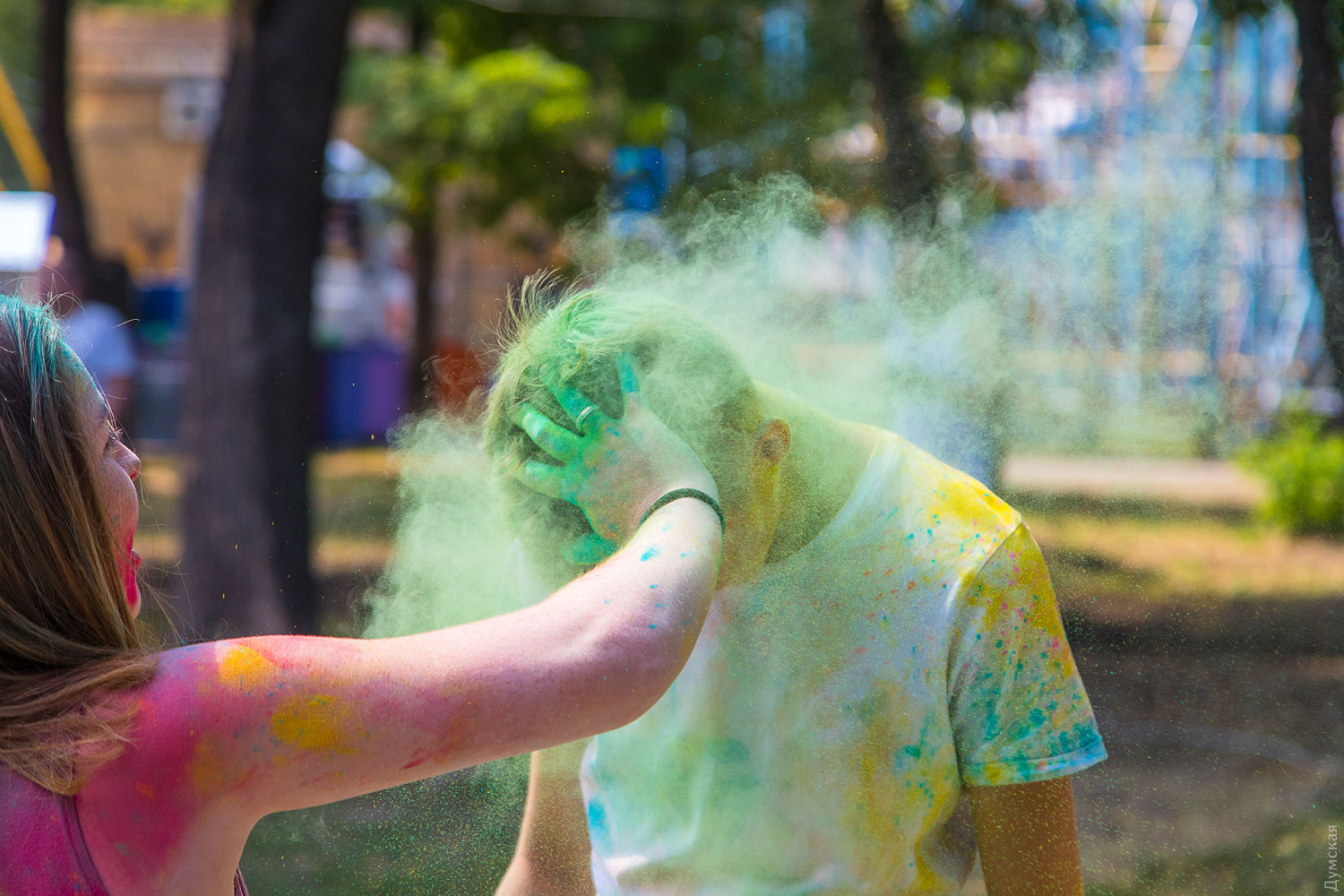 Четвертый одесский ColorFest прошел сегодня в парке Шевченко недалеко от Лунопарка. Участие в веселом и красочном мероприятии приняло около 200 человек. Молодые люди, заранее предупрежденные организаторами, приходили в белых вещах, которые не жалко было запачкать красками холи. Один пакетик цветного порошка стоил 50 гривен. При покупке нескольких действовала скидка.