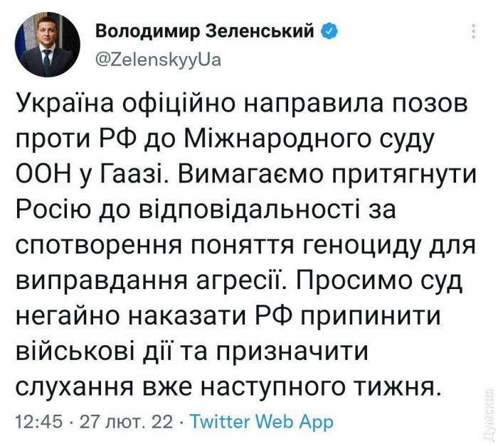 Четвертый день широкомасштабного вторжения России в Украину: враг обстреливает мирные города (обновляется, фото, видео)Продолжается открытое нападения РФ на Украину, которое Путин начал 24 февраля в 5 утра. ОБНОВЛЕНО В 00:42. Мощный взрыв в районе аэропорта Харькова, сообщает «Суспільне». ОБНОВЛЕНО В 00:32. Украинские защитники вернули контроль над Волновахой, сообщил в ходе брифинга советник главы Офиса президента Алексей Арестович. ОБНОВЛЕНО В 23:53. Российские войска нанесли ракетные удары по Николаевскому международному аэропорту. По предварительной информации, враг атаковал аэропорт трижды. Снаряды попали на взлетную полосу и перрон. ОБНОВЛЕНО В 21:03. Главнокомандующий Вооруженными силами Украины Валерий Залужный сообщил, что за первые два дня российского вторжения, почти 100 тысяч украинцев записались добровольцами, чтобы защищать Родину. Половина из них стала в ряды территориальной обороны. ОБНОВЛЕНО В 20:32. Видео байракторов в работе выложил в сеть главнокомандующий вооруженными силами Украины Валерий Залужный. «Наши операторы ювелирно кроют колонны вражеских войск. Уничтожен российский БУК в районе Малина Житомирской области. Бойтесь, враги! Не будет вам покоя на нашей земле!», — написал Залужный. ОБНОВЛЕНО В 20:05. СБУ опубликовало видео с пленными российскими солдатами. Они осознали, что приехали в Украину убивать мирных людей — бить по жилым домам и детским садикам. Юные призывники просят матерей вернуть их домой. ОБНОВЛЕНО В 20:04. В Киеве воздушная тревога. ОБНОВЛЕНО В 19:53. Социологическая группа «Рейтинг» публикует информацию об общественном мнении украинцев во время войны. 70% граждан уверены в том, что Украина сможет обить нападение врага. В центальных и западных регионах такого мнения до 78% населения, на юго-востоке до 66%. Ни в одной области нет серьезной поддержки пораженческих настроений. Действия президента Украины Владимира Зеленского поддерживает 91% украинцев. ОБНОВЛЕНО В 19:50. Воздушная тревога в Харькове и Камянце-Подольском. ОБНОВЛЕНО В 19:35. В Одессе объявляли воздушную тревогу. Сейчас опасность миновала, тревога снята. Тем временем воздушная тревога во Львове. ОБНОВЛЕНО В 19:17. Российские оккупанты уничтожили самый большой самолет мира и гордость украинского авиапрома Ан-225 «Мрія». Об этом сообщает «Радио Свобода» со ссылкой на собственные источники в предприятии «Антонов» и мэра города Буча. Информацию официально подтвердили в Вооруженных силах. «После пятого авианалета разбомбили «Мрію» полностью, — рассказал городской голова Анатолий Федорчук. — Это случилось в первый день. Обстреливали с вертолетов». ОБНОВЛЕНО В 18:09. 16 украинских детей убили за последние четверо суток российские оккупанты, сообщил министр здравоохранения Украины Виктор Ляшко. ОБНОВЛЕНО В 17:00. Крылатая ракета, выпущенная с территории Беларуси по Украине – это не только доказательство соучастия с Россией, но и прямая агрессия. «Руководство РБ персонально будет отвечать за совершенные преступления», — написал заместитель генерального прокурора Украины Гюндуз Мамедов. Отметим, ранее белорусский диктатор Лукашенко подтвердил, что с территории Беларуси были выпущены крылатые ракеты по Украине. ОБНОВЛЕНО В 16:23. В Черноморске в Одесской области на въезде в город появился баннер с правильным посылом. Подобные обращения к российским солда