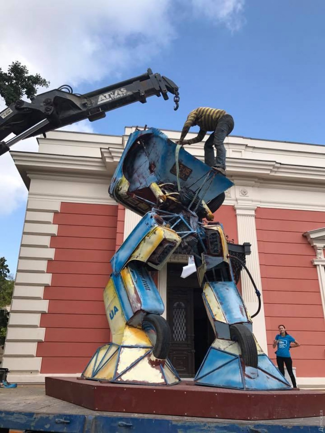 Трансформера установили возле музея в рамках фестиваля изобретений и поделок Odesa Mini Maker Faire, который пройдет здесь 10 сентября.
