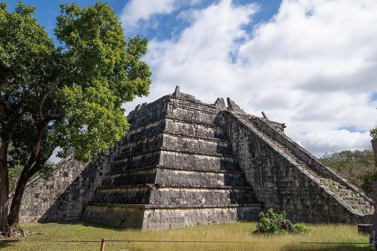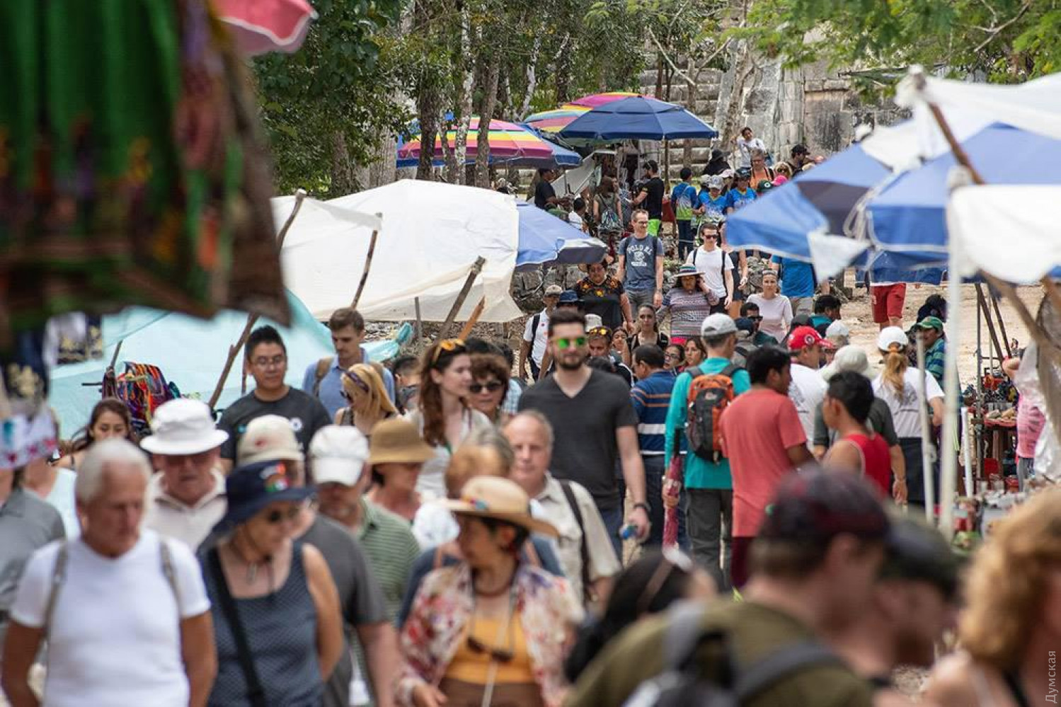 «Думская» продолжает рубрику «Субъективно о загранице». После путешествий по Великобритании и ее бывшим колониям наш постоянный автор Алексей Кравцов решил познакомиться с другой империей — Испанской. И начнет он свои заметки посреди джунглей на территории современной Мексики. Испанская империя стала в некотором роде прародителем Британской. Мысль эта, естественно, требует отдельной проработки, да и научно обоснованной ее можно назвать с большой натяжкой. Но именно с потерей Непобедимой армады Испания потеряет первенство в мировой иерархии, и уступит Великобритании не только пафосный статус государства, «над которым никогда не заходит солнце», но и множество собственных наработок в мироустройстве. Оглядываясь на сегодняшний день, понимаешь, что наработок далеко не всегда удачных: треугольная торговля, рабский труд, геноцид коренного населения, неконтролируемая культурная экспансия Разумеется, все эти сомнительные достижения человечеству были известны и ранее, но организованный характер они приобретут только с экспансией Габсбургов в Новом свете. Впрочем, кому какое дело до нынешнего метамодерна, если на дворе XVI век и представления об эффективности коррелируются в большей степени с Ватиканом, чем с экономикой, пусть даже и ресурсной. И уж тем более забавно находить первопричины тех или иных деталей сегодняшнего бытия с другой стороны планеты, среди руин былой империи. Чичен-Ица — крупнейший город народа майя, цивилизации, достигшей пика своего развития за 300 лет до открытия Америки европейцами. Какое все это имеет отношение к выше сказанному? — спросите вы. Очень просто: физически испанское наследие основано на землях, некогда подконтрольных майя (а так же ацтекам на севере и инкам на юге, но туда мы пока не доехали), на территории современной Мексики. И, слово повинуясь закону Ньютона, тому, который о действии и противодействии, местная культура благодаря давлению Эскориала так или иначе проявит себя уже на территории Европы. ИЗ БЛАГ ЦИВИЛИЗАЦИИ — ОДНИ СУВЕНИРЫ Итак, Чичен-Ица. Город в джунглях, где кипела жизнь полторы тысячи лет назад. То есть нет ни Шелкового пути, ни крестовых походов, даже из варягов в греки тут никто не ходил. Письменность, религия, хронотоп, социальные структуры – все другое, не имеющее аналогов в известном нам мире. Пожалуй, только астрономия развивалась каким-то схожим образом, приблизительно в тот же период, что у Тимуридов (современный Узбекистан). Но тут, скорее, верно обратное утверждение: если общество одних людей хорошо и долго живет за счет рабского труда других, то рано или поздно оно начнет изучать звезды и строить пирамиды. Сегодня бродить среди этих памятников инаковости не мешает даже признак времени — толпа туристов, для подавляющего количества которых Чичен-Ица — просто камни, и поскорей бы обратно в отель. Ведь какой-либо вменяемой туристической инфраструктуры в городе майя нет. Вся цивилизация теперь начинается и кончается на входе возле касс. Дальше – только торговые развалы обозначают направления осмотра объектов, а информация о них, хоть и на трех языках, но ограничена пятью предложениями. Ни аудиогидов, ни мусорников, ни других бонусов, сопутствующих моменту. Хочешь погружения – читай исторический справочник. Вход, к слову, стоит $25. Кстати, из разношерстного гула толп