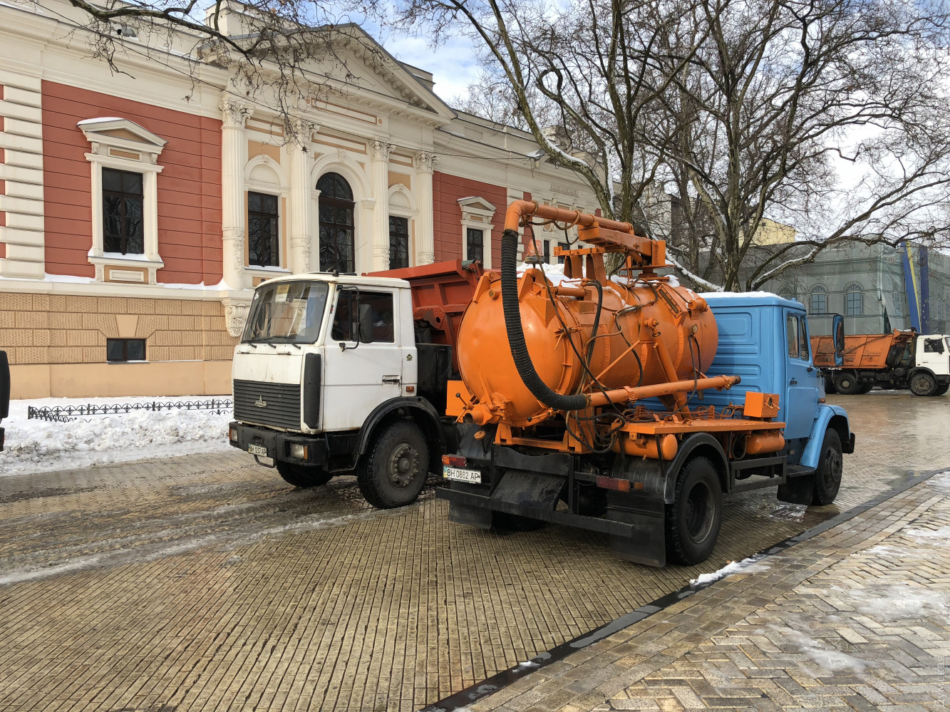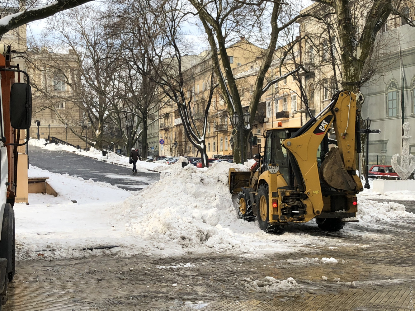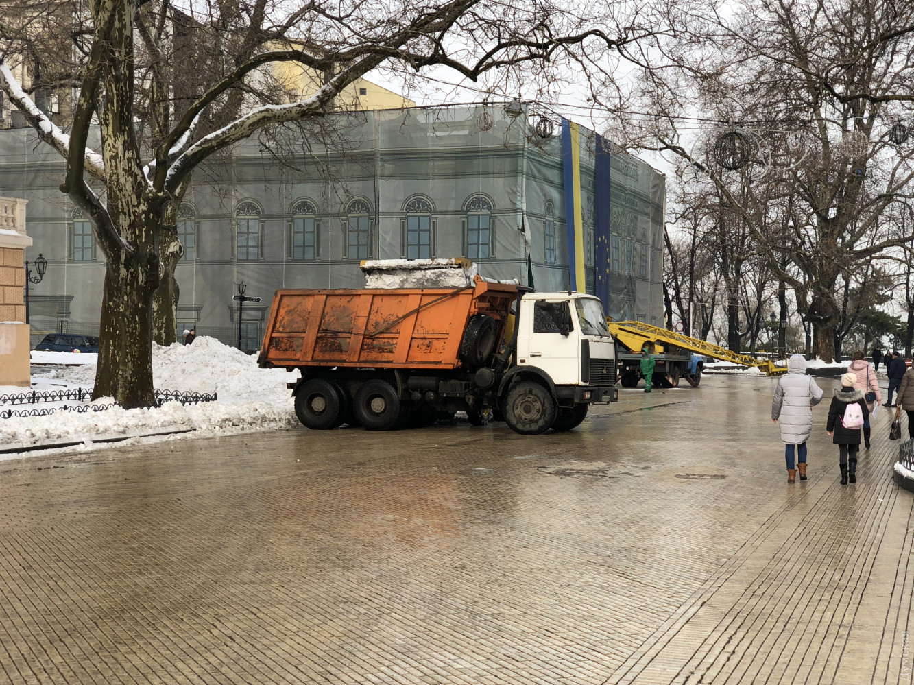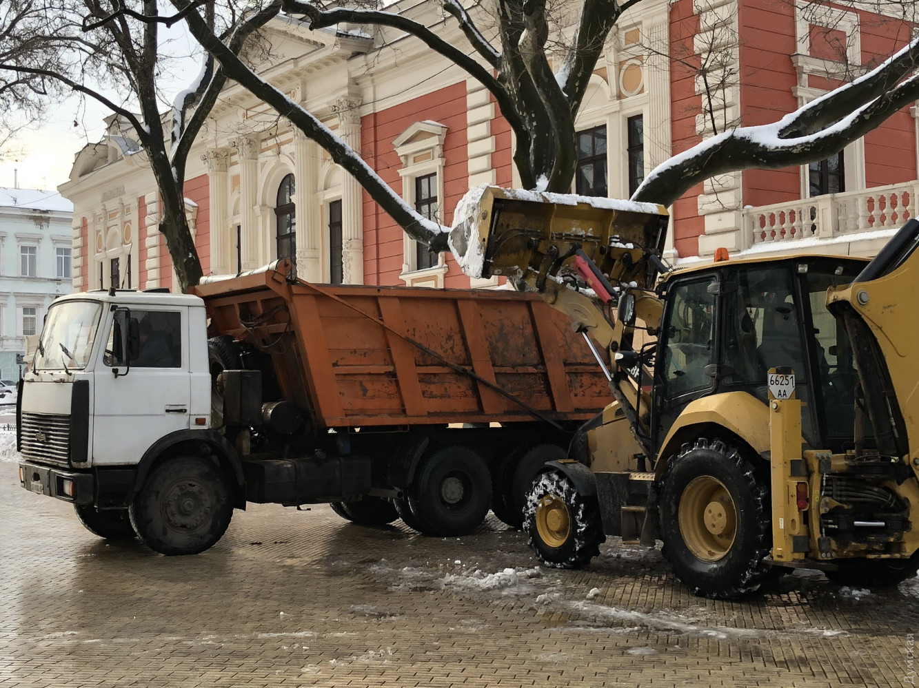 Снег возле мэрии Одессы убирают сразу семь единиц техники