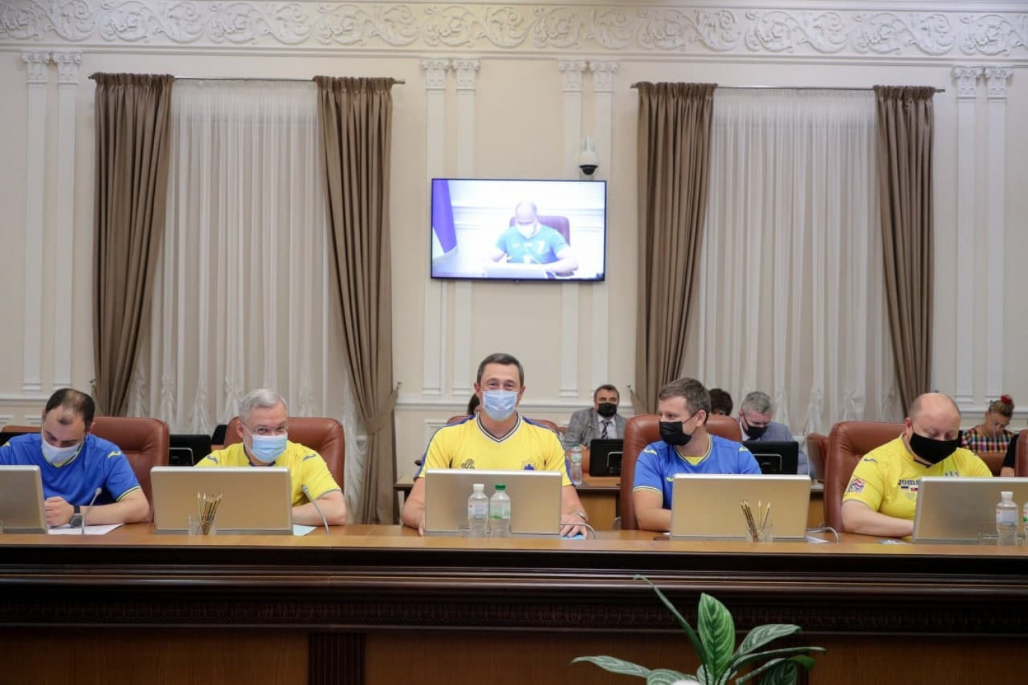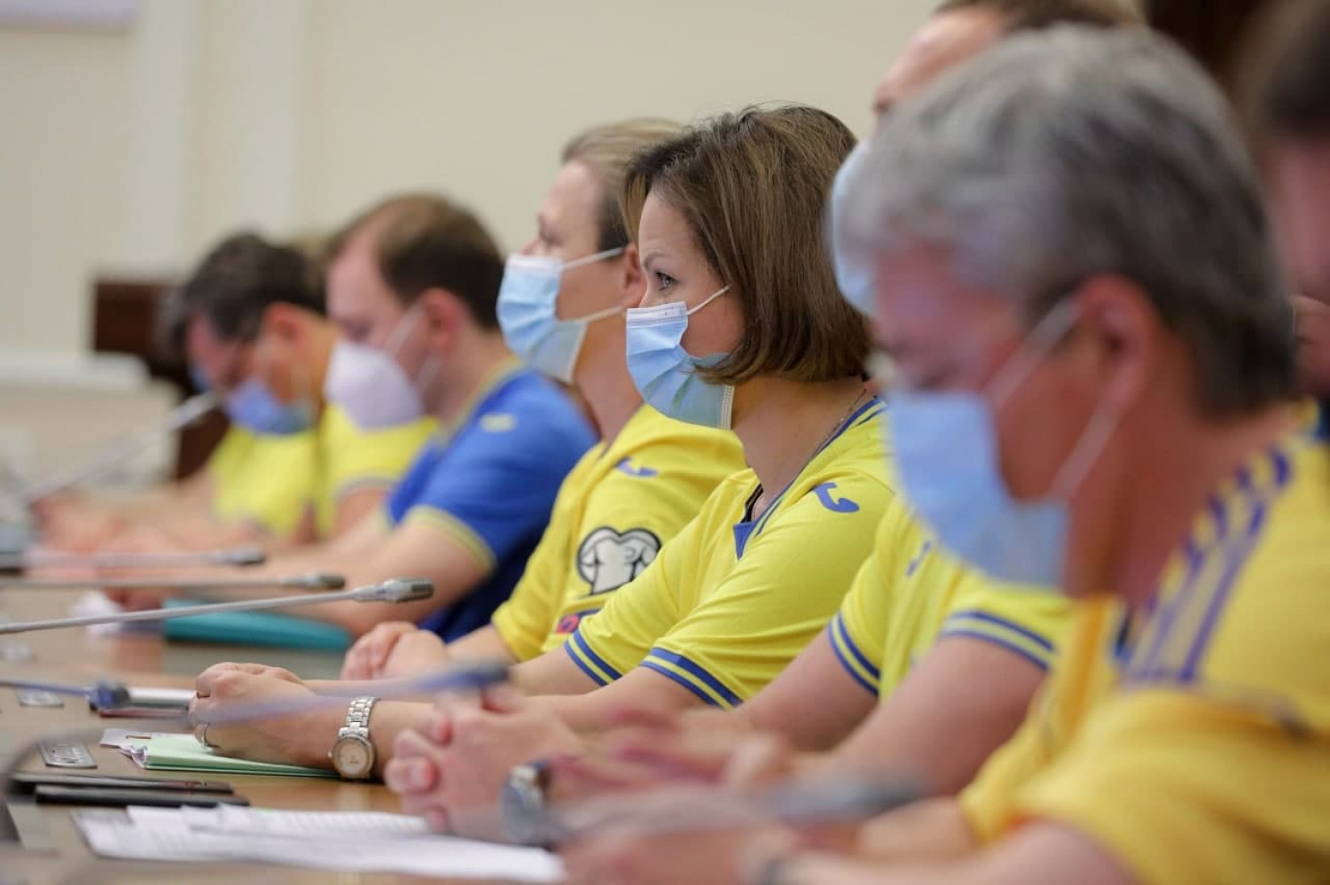 Члены правительства пришли на заседание Кабмина в футболках национальной сборной УкраиныВ Кабмине отметили вчерашнюю победу национальной сборной Украины по футболу патриотическим флешмобом. Члены правительства пришли на заседание, облачившись в футболки национальной сборной Украины. Кто-то был в желтой форме, кто-то в синей. «Правительство поздравляет сборную Украины по футболу с выходом в 1/4 финала Евро-2020. Это огромный успех команды и тренерского штаба. Такие вещи очень мотивируют и объединяют страну, которая всем сердцем болеет за украинскую сборную. Спасибо нашим игрокам! Вперед — к новым победам!»- написал премьер-министр Денис Шмыгаль в своем Телеграм-канале. Напомним, Украина обыграла Швецию и вышла в ¼ финала. СМЕРТЬ РОСІЙСЬКИМ ОКУПАНТАМ! Помітили помилку? Виділяйте слова з помилкою та натискайте control-enter |