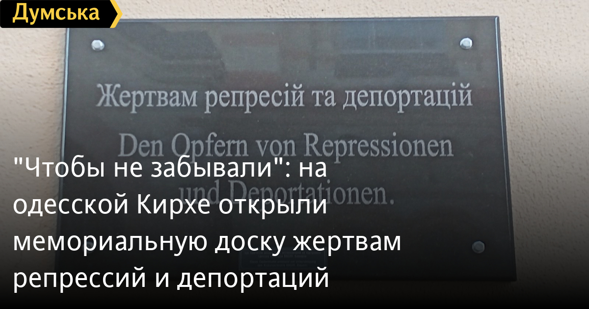 «Чтобы не забывали»: на одесской Кирхе открыли мемориальную доску жертвам репрессий и депортацийМемориальную доску в память о жертвах репрессий и депортаций открыли во дворе собора святого Павла в Одессе. Появление доски приурочено к печальной дате — 80-летию депортации советских немцев в Сибирь и Казахстан. На церемонию открытия прибыла делегация Баварского культурного центра из Нюрнберга. Идея установить лаконичную мраморную табличку с надписью «Жертвам репрессий и депортаций» возникла в Баварском культурном центре, который объединяет русскоязычных граждан Германии. Одесская область была одним из крупнейших центров переселения немецких колонистов. Немцы начали переезжать в Северное Причерноморье по приглашению царя, начиная с 1803 года. Они создавали многочисленные поселения, занимались сельским хозяйством, промышленностью. Перед войной на территории от Днестра до Буга жили более 70 тысяч немцев — четвертая по численности этническая группа, которая составляла до 10% населения. В Одессе работал немецкий педагогический институт, на немецком языке издавали газеты и ставили театральные постановки. В 1938 году началось планомерное истребление мужского населения немецких колоний в приграничной полосе, к которой относилась и Одесская область. Были расстреляны тысячи «кулаков» из Люстдорфа, Гросс-Либенталя, Мариенталя, Мангейма, Иоганнесталя, Вормса, Катериненталя, Ватерлоо и других поселений. Читайте также «Где Авель, брат твой?»: коммунистический геноцид, свалка на месте массовых захоронений и безразличие одесситов 28 августа 1941 года было принято решение о поголовной высылке всех уцелевших этнических немцев в Сибирь и Казахстан. «Эта доска — память о тех, кто 80 лет назад был несправедливо выслан из своего дома и больше никогда не увидел своей родины. Это напоминание нынешним и будущим поколениям о трагедии наших предков», — сказал на церемонии открытия глава Баварского культурного центра Вальдемар Айзенбраун. Депортация немцев — трагическая страница истории семьи Айзенбраун. Отец Вальдемара — Самуэль — родился в Казахстане, мать Ольга — на Сахалине. Сам Вальдемар родился и вырос в Казахстане. В 1990 году семья переехала в ФРГ, сейчас Вальдемар — председатель Землячества немцев из России в Германии, которое профинансировало установку этой доски. Церемония открытия завершилась концертом солистки одесской филармонии, лауреата международных конкурсов Елены Рихтер в зале Кирхи. Автор — Анастасия Диброва СМЕРТЬ РОССИЙСКИМ ОККУПАНТАМ! Заметили ошибку? Выделяйте слова с ошибкой и нажимайте control-enter |