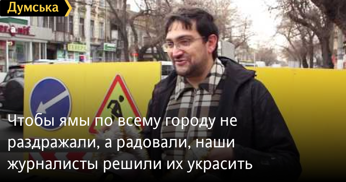 Чтобы ямы по всему городу не раздражали, а радовали, наши журналисты решили их украситьНовый год по-одесски. Чтобы ямы на дорогах не раздражали, а радовали, наши журналисты решили их украсить. Подробности – смотрите далее. СМЕРТЬ РОССИЙСКИМ ОККУПАНТАМ! Заметили ошибку? Выделяйте слова с ошибкой и нажимайте control-enter Думская ТВ. Сюжеты: