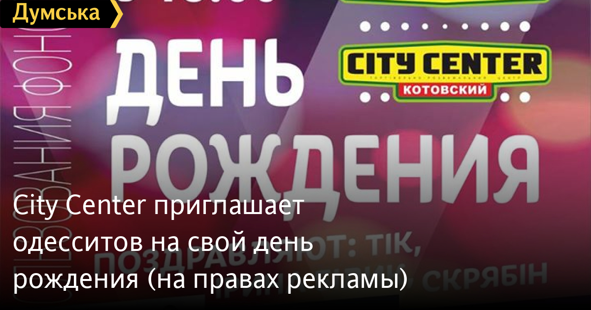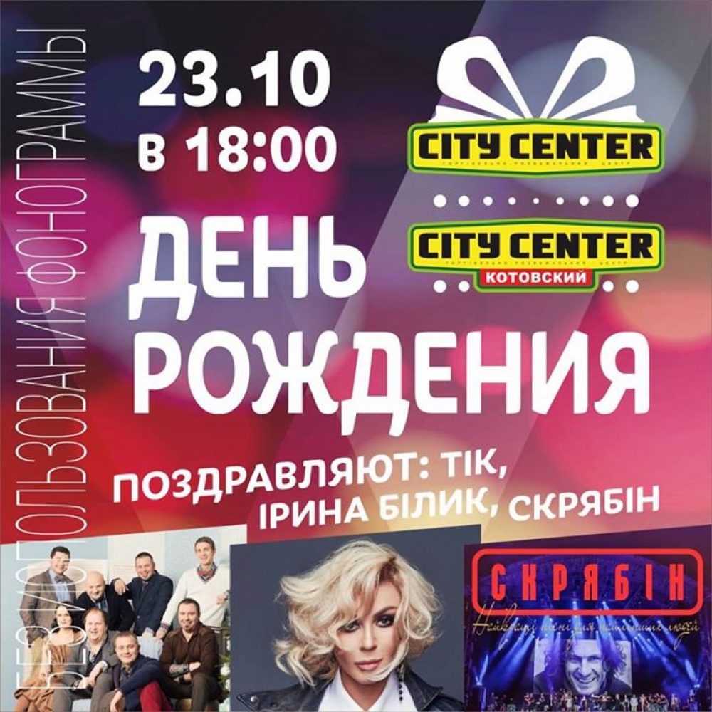 23 октября City Center отмечает день рождения бренда. По случаю праздника для одесситов и гостей города организовали выступление звезд украинской эстрады – Ирины Билык, групп «ТиК» и «Скрябин». Концерты пройдут в City Center на проспекте Маршала Жукова и в City Center Котовский на улице Затонского. Начало в 18:00. «Ждем всех! Можно без подарков!» — приглашают организаторы. СМЕРТЬ РОССИЙСКИМ ОККУПАНТАМ! Заметили ошибку? Выделяйте слова с ошибкой и нажимайте control-enter |