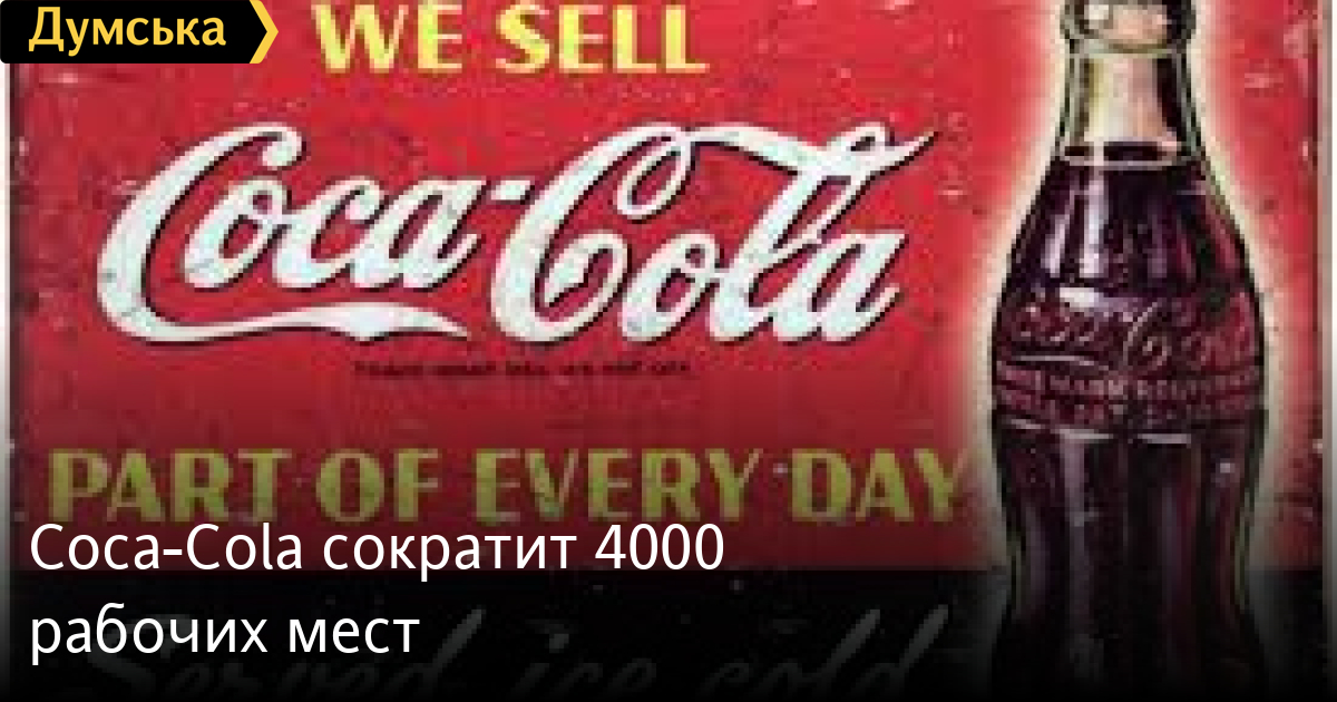 Компания Coca-Cola объявила о сокращению 4000 рабочих мест в США, Канаде и Пуэрто-Рико. Как сообщает телеканал CNN, компания совершит разделение на девять новых подразделений в рамках четырех географических сегментов, а не на 17, как сейчас. Таким образом она собирается перераспределить ресурсов, а также сократить количество сотрудников. Речь идет как о добровольных, так и недобровольных увольнениях. Coca-Cola также планирует оптимизировать продукцию и сфокусироваться на развитии пяти основных категорий: Coca-Cola, газированные напитки с различными вкусами, вода, спортивные напитки, кофе и чай, а также соки и молоко. Расходы Coca-Cola, связанные с глобальным сокращением штата, составят от 350 до 550 млн долл. СМЕРТЬ РОССИЙСКИМ ОККУПАНТАМ! Заметили ошибку? Выделяйте слова с ошибкой и нажимайте control-enter |