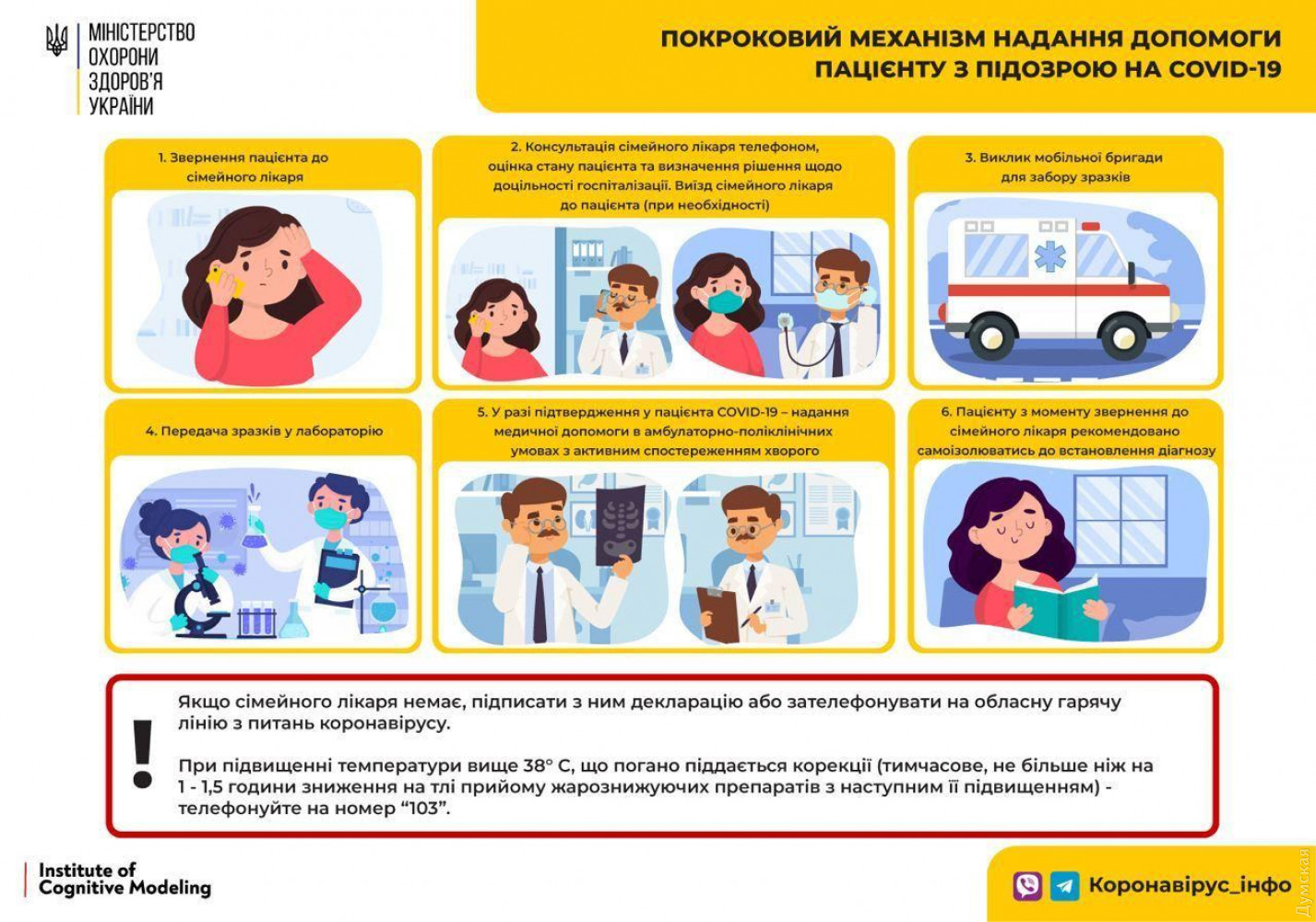 Министерство здравоохранения обнародовало обновленную схему, по которой должен действовать врач, оказывая помощь пациенту с подозрением на коронавирус. Как сообщает пресс-служба Минздрава, при появлении симптомов COVID-19 у пациента семейный врач обязан действовать по утвержденному министерством алгоритму и принять решение о дальнейшем лечении больного. Первым этапом является обращение к своему семейному врачу. Тот должен проконсультировать по телефону, решить, необходима ли госпитализация и при необходимости приехать к пациенту. Далее возможен вызов мобильной бригады, которая возьмет у больного образцы для теста на коронавирус. После получения результатов теста, в случае подтверждения COVID-19, предусмотрено предоставление медицинской помощи зараженному. Отмечается, что в случаях, когда больной человек не имеет своего семейного врача (не подписывала декларацию по соответствующим специалистом), можно обратиться за помощью позвонив на областную горячую линию по вопросам коронавируса. СМЕРТЬ РОССИЙСКИМ ОККУПАНТАМ! Заметили ошибку? Выделяйте слова с ошибкой и нажимайте control-enter |