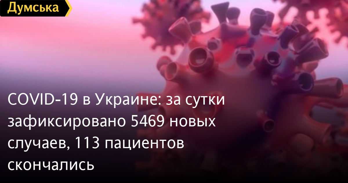 COVID-19 в Украине: за сутки зафиксировано 5469 новых случаев, 113 пациентов скончалисьПо состоянию на утро 20 октября в Украине зафиксировано 5469 новых случаев коронавирусной инфекции За сутки выздоровели 3044 пациента, скончались от осложнений 113 человек. Всего с начала пандемии в Украине 309 107 лабораторно подтвержденных случаев COVID-19, из них 5786 летальных, 129533 пациенты выздоровели. Всего проведено 2847376 тестирования методом ПЦР. СМЕРТЬ РОССИЙСКИМ ОККУПАНТАМ! Заметили ошибку? Выделяйте слова с ошибкой и нажимайте control-enter |