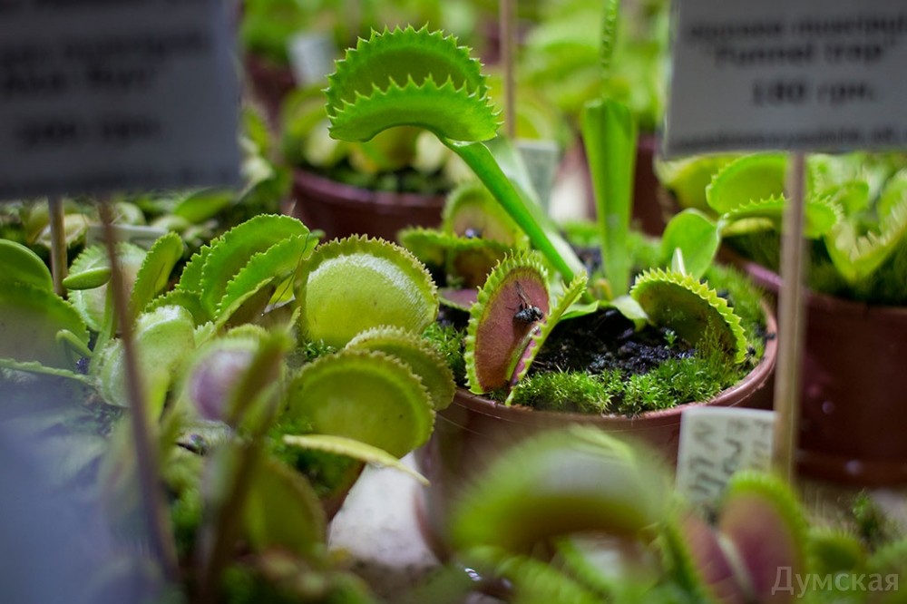 Вырастить покладистую фиалку или флегматичный кактус может каждый. Эти растения напрочь лишены агрессии и молчаливо растут, радуя своих хозяев красотой цветения или суровостью внешнего вида. Вместе с тем, в растительном мире существуют и настоящие хищники — плотоядные растения. Беспощадные убийцы способны часами выжидать свою жертву для стремительной атаки, а созданные ими за века эволюции хитроумные ловушки до сих пор удивляют ученых. С 18 по 22 августа в здании ОЦНТЭИ, что на Ришельевской прошла выставка фиалок и насекомоядных растений. «Думская» побывала на мероприятии и разузнала для наших читателей, насколько трудно приручить зеленых хищников. Плотоядная флора была представлена на выставке всего одним столом, но зато каким. В небольших горшочках под специальным освещением расположилось более 50 сортов самой стремительной хищницы – дианеи. Это небольшое растение, облюбовавшее болота восточного побережья Америки, научилось получать питательные вещества, охотясь на насекомых. Листья дианеи, словно челюсти животного моментально схлопываются почуяв добычу. Пойманный комар переваривается между листьями за 1-2 дня, муха или божья коровка – 4-5. Существует несколько сотен сортов, отличающихся длиной ресничек на листьях-ловушках, цветом и формой. Самые красивые из них, как фиалки получают поэтические названия. К примеру, на выставке представлен редкий сорт, убивающий своих жертв листьями похожими на «Крылья Ангела». Как рассказал «Думской» хозяйка коллекции Татьяна Миранда, столь необычное хобби – дело рук ее дочери. «Сначала этими растениями увлеклась моя дочь и начала понемногу собирать разные сорта дианеи, — рассказывает женщина. – Потом дочка вышла замуж и хобби перешло ко мне». Сейчас, по словам Татьяны, ее коллекция самая большая в Украине, а некоторые из сортов насекомоядных – единственные в нашей стране экземпляры. Также в коллекции Татьяны — несколько десятков сортов росянки, приманивающей свою добычу сладким запахом клея, который действует как желудочный сок, когда жертва поймана, разноцветные колбочки саррацении и конечно – лиана непентес, способная вырасти до пяти метров в длину и переваривать даже небольших птиц и грызунов. По словам Татьяны, ухаживать за хищниками не сложно. «Все, что им нужно, это много света и регулярный полив, а пропитание они себе находят сами. К примеру, саррацения выделяет сладкий аромат для привлечения насекомых, — рассказала Татьяна. — У нее вся трубочка покрыта ворсинками в одном направлении и, если залезть в нее легко, то выбраться – невозможно». Плотоядные растения делятся на тех, кто живет в умеренном климате и тех, кому по нутру тропики. Первые впадают зимой в спячку и не нуждаются в еде. Все, что с ними нужно сделать – это поместить в целофан и поставить в холодильник. Они привыкли к зимним температурам от -7 до -2. Тропические же виды, могут свободно обходиться без еды по нескольку месяцев. Самая большая проблема, по словам Татьяны — это качество воды. Хищники очень восприимчивы к примесям и лучше всего их поливать дистиллятом. Большинство хищных растений — многолетние и при правильном уходе могут очищать вашу квартиру от мух и комаров 20-30 лет. Фото Александра Гиманова СМЕРТЬ РОСІЙСЬКИМ ОКУПАНТАМ! Помітили помилку? Виділяйте слова з помилкою та натискайте control-enter |