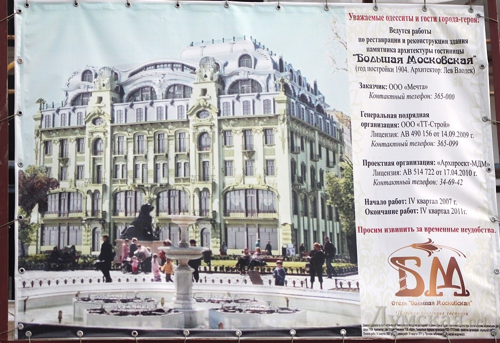 Реконструкция и реставрация памятника архитектуры – гостиницы «Большая Московская», что на Дерибасовской улице, продолжаются.