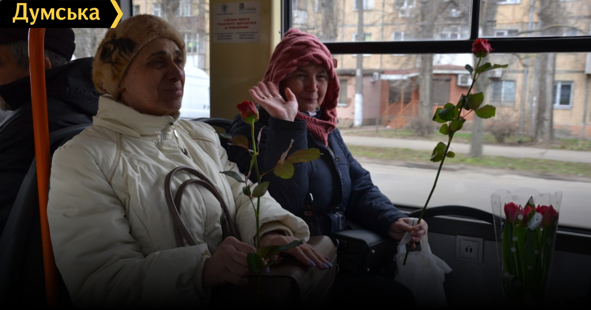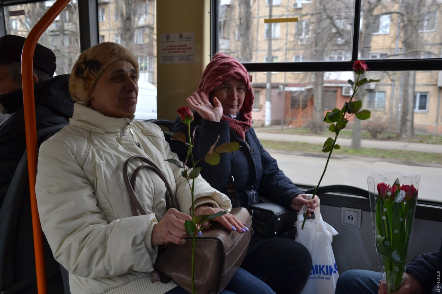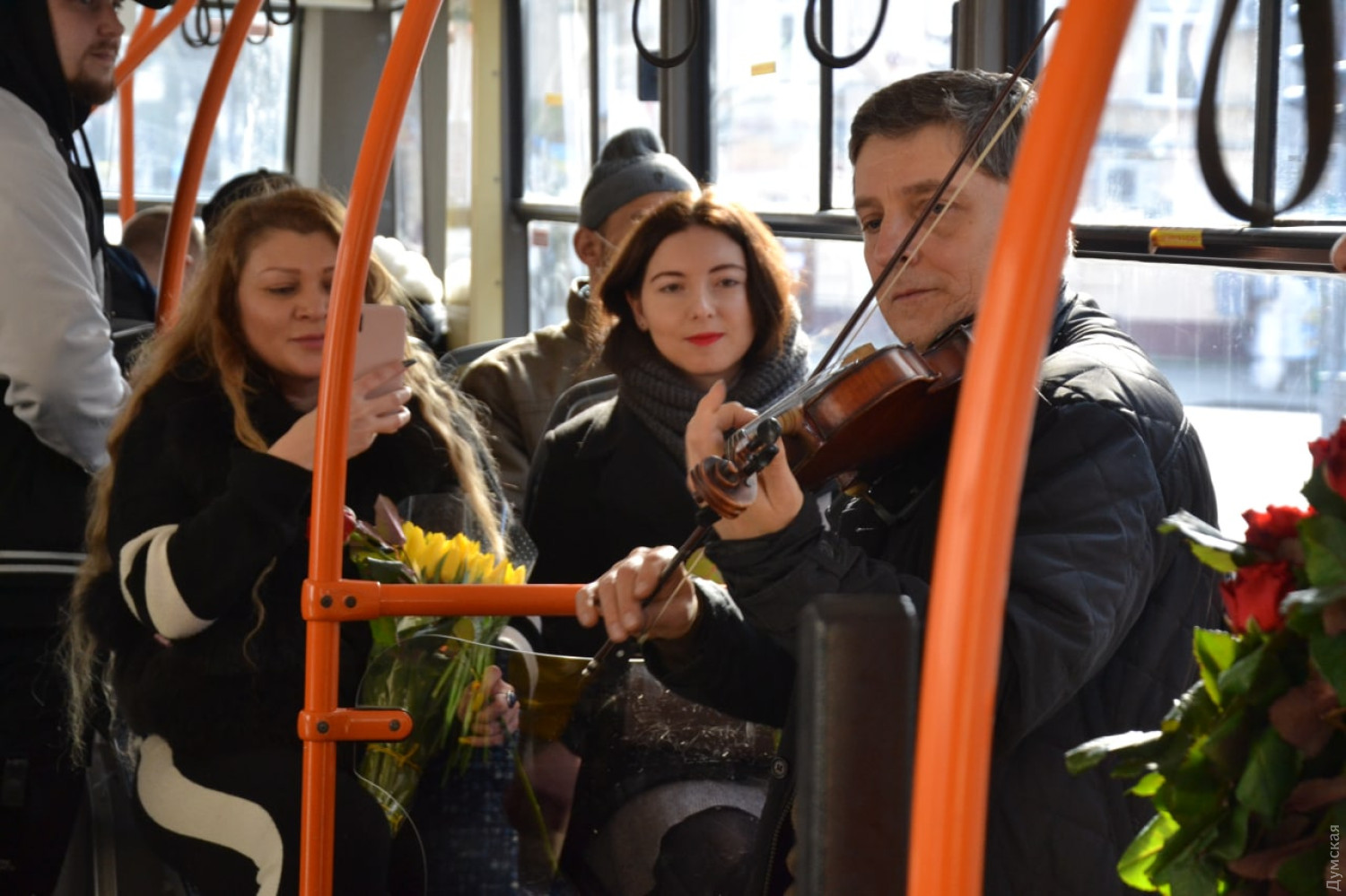 Дарили цветы и песни: пассажирок одессих троллейбусов поздравили с восьмым марта