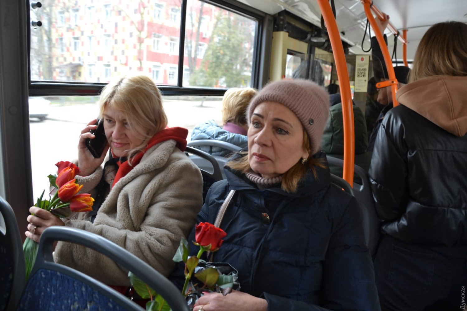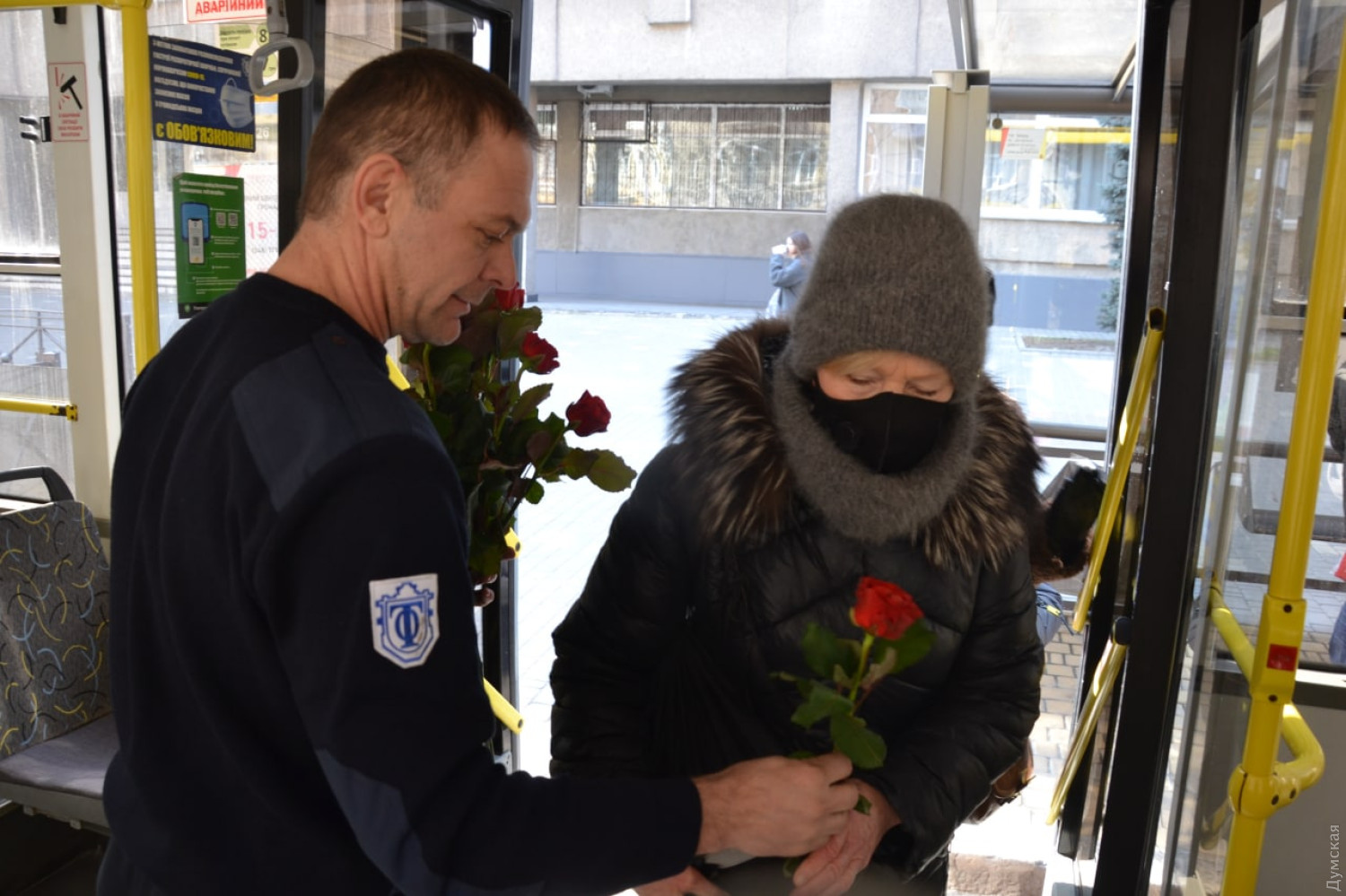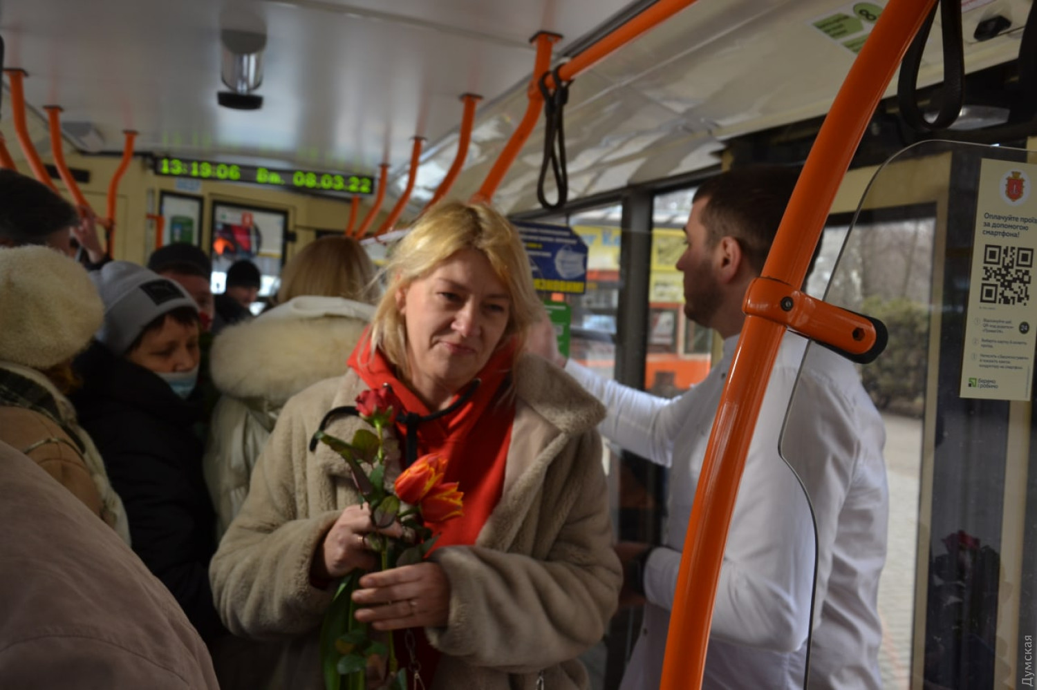 Дарили цветы и песни: пассажирок одессих троллейбусов поздравили с восьмым марта