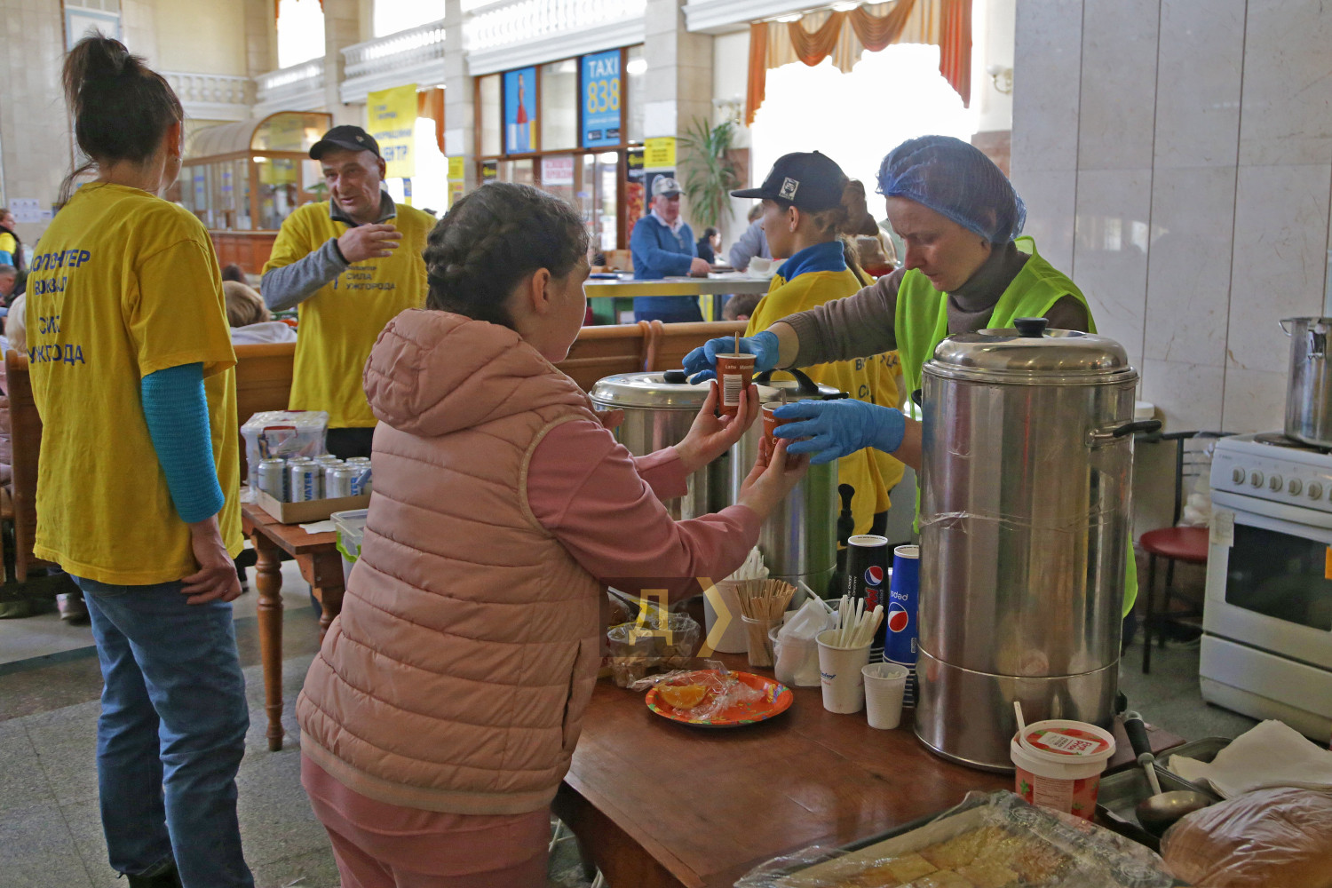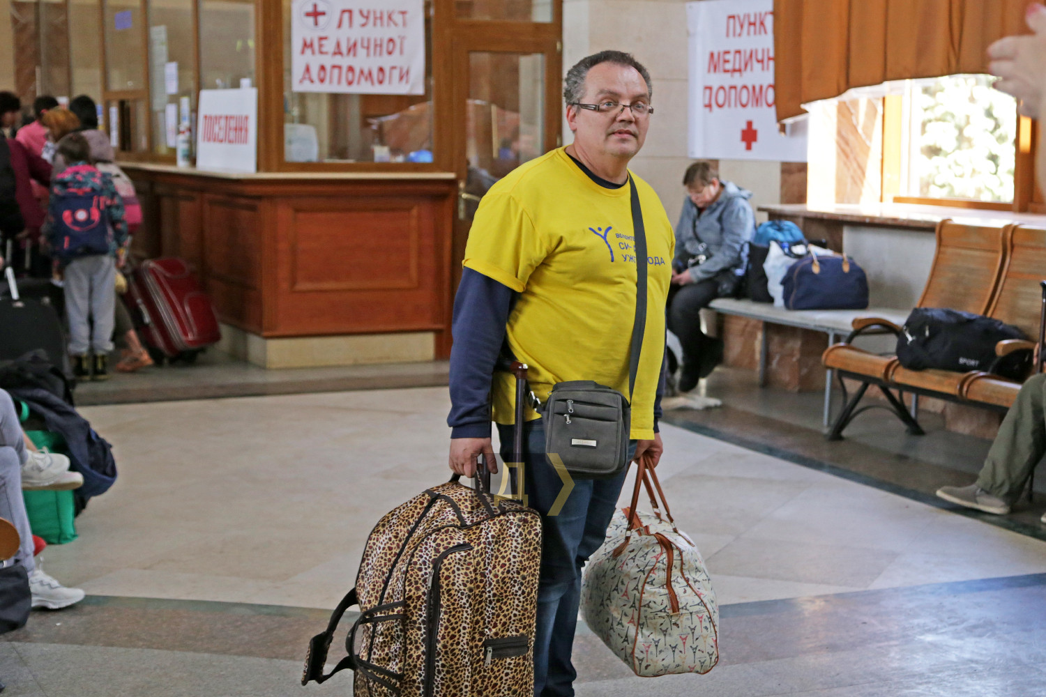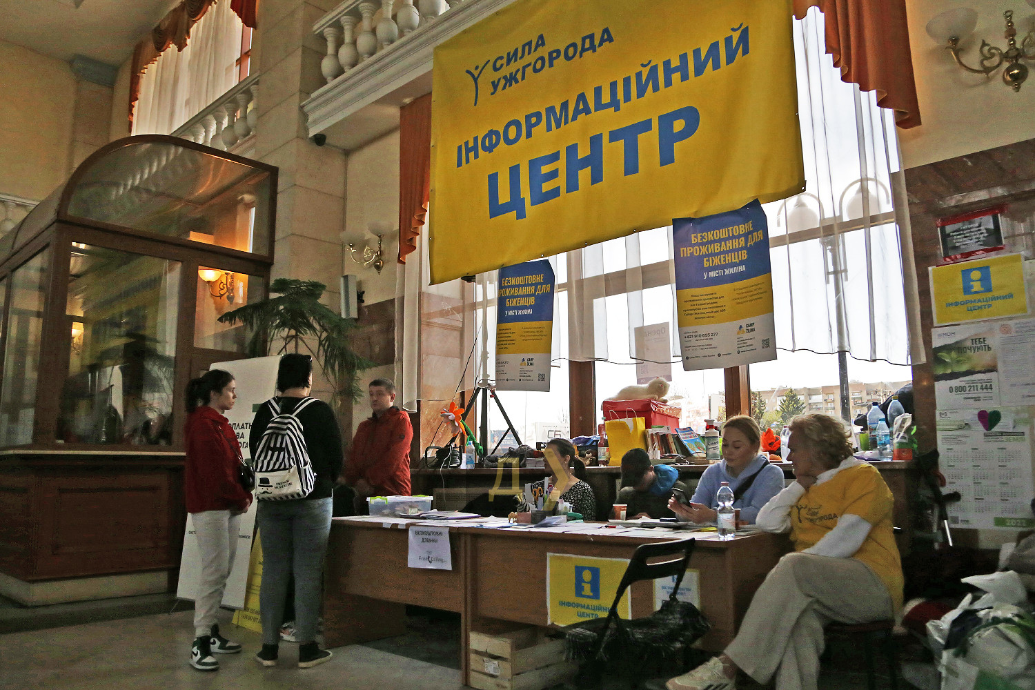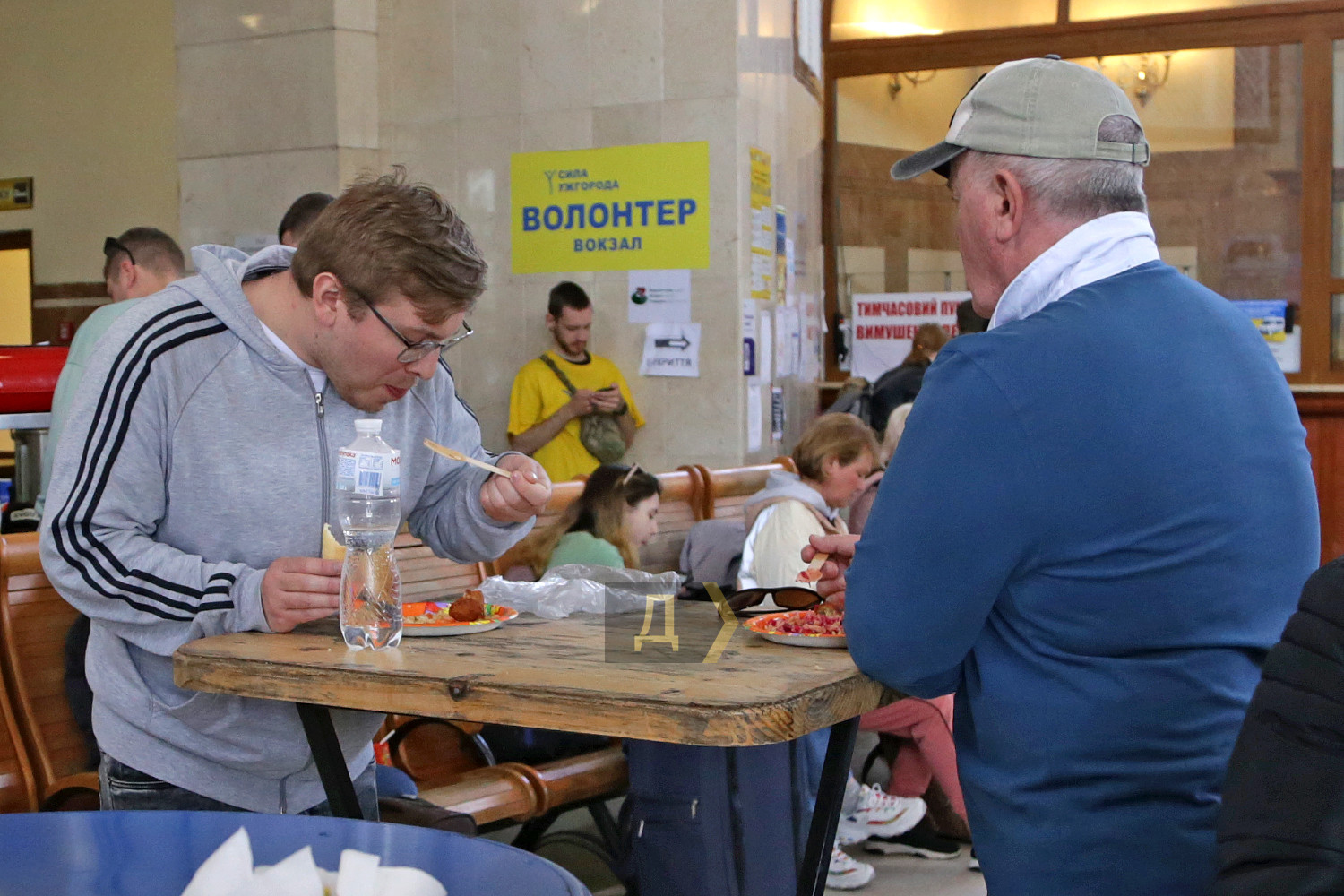 Тихое благополучное Закарпатье, несмотря на удаленность от театра боевых действий, выполняет в этой страшной войне особую задачу. И хотя до ближайшей точки соприкосновения с врагом больше тысячи километров, этот спокойный уголок Украины держит свою линию фронта. Десяток скорых и эвакуационных поездов ежедневно привозят на станцию Ужгород тысячи украинцев, бегущих от войны с российскими оккупантами. География вынужденных переселенцев собрала здесь всю Украину – на запад перебираются жители восточных, центральных и южных областей страны. На железнодорожном вокзале первыми их встречают волонтеры местной общественной организации «Сила Ужгорода». Просторный светлый зал транспортного хаба заполнен пассажирами. Полчаса назад на поезде из Киева прибыло несколько сотен вынужденных переселенцев. Многие не знают, что им делать дальше, нуждаются в помощи и совете. Мамочка с двумя озорными мальчуганами и большим чемоданом, оглядываясь, не понимает, к кому обратиться, но к ней уже спешит парень в желтой майке с надписью «волонтер». Дедушке на костылях и с рюкзаком за плечами предложили бесплатный обед, но он пока выбрал стаканчик горячего кофе, который дрожащими руками подносит ко рту, жмурясь от удовольствия. Люди, вырвавшиеся из-под бомбежек и обстрелов, проведя почти сутки в поезде, стараются хоть немного побыть в относительной тишине и отдохнуть в зале ожидания. По словам волонтера Татьяны, помощь переселенцам они начали оказывать с первых дней вторжения. «Иногда в этом зале было так много людей, что невозможно было пройти из конца в конец, люди стояли везде, и всех надо было накормить, поселить или отправить за границу, — вспоминает девушка. – Сейчас нам уже проще, людей намного меньше, мы знаем, что надо делать, у нас есть стандартные решения для действий в той или иной ситуации». Другие члены команды подтверждают, что были дни, когда к ним обращалось до 12 тысяч человек. И всех удавалось накормить, напоить или оказать другую помощь. В конце февраля, по словам волонтеров, бывали случаи, когда из вагона выходили мужчины в трусах, майках и резиновых тапочках, а однажды в зал ожидания зашла девушка в домашнем халате. Ей срочно пришлось покупать одежду и зимние сапоги, но благодаря общим усилиям волонтеров такие проблемы успешно решаются, а хозяева магазинов, понимая ситуацию, делают большие скидки на товары. Волонтер Виктория, которую называют добытчицей деликатесов, рассказала, что самой трудной задачей всегда было найти место ночлега не для людей, а для животных. «Однажды на перроне мы увидели семью, у которой было четыре огромных лабрадора, девять кошек и две черепахи. Их обманули с жильем – обещали дать полдома, но впоследствии отказались, поэтому нам пришлось решать эту проблему. Мы запросили о помощи на нашей странице в Фейсбуке, и буквально через десять минут нашелся человек, разместивший их в своем доме», — вспоминает Виктория. К слову, «добытчицей деликатесов» Викторию прозвали за умение привозить на склад для переселенцев различные вкусняшки, например, сегодня кто-то пожертвовал на благотворительность несколько ящиков консервированного тунца. «Очень помогают люди из-за границы. Волонтеры из Польши и Словакии присылают автобусы с одеждой и разными принадлежностями для самых маленьких, — поясняет Виктория. – Но особе